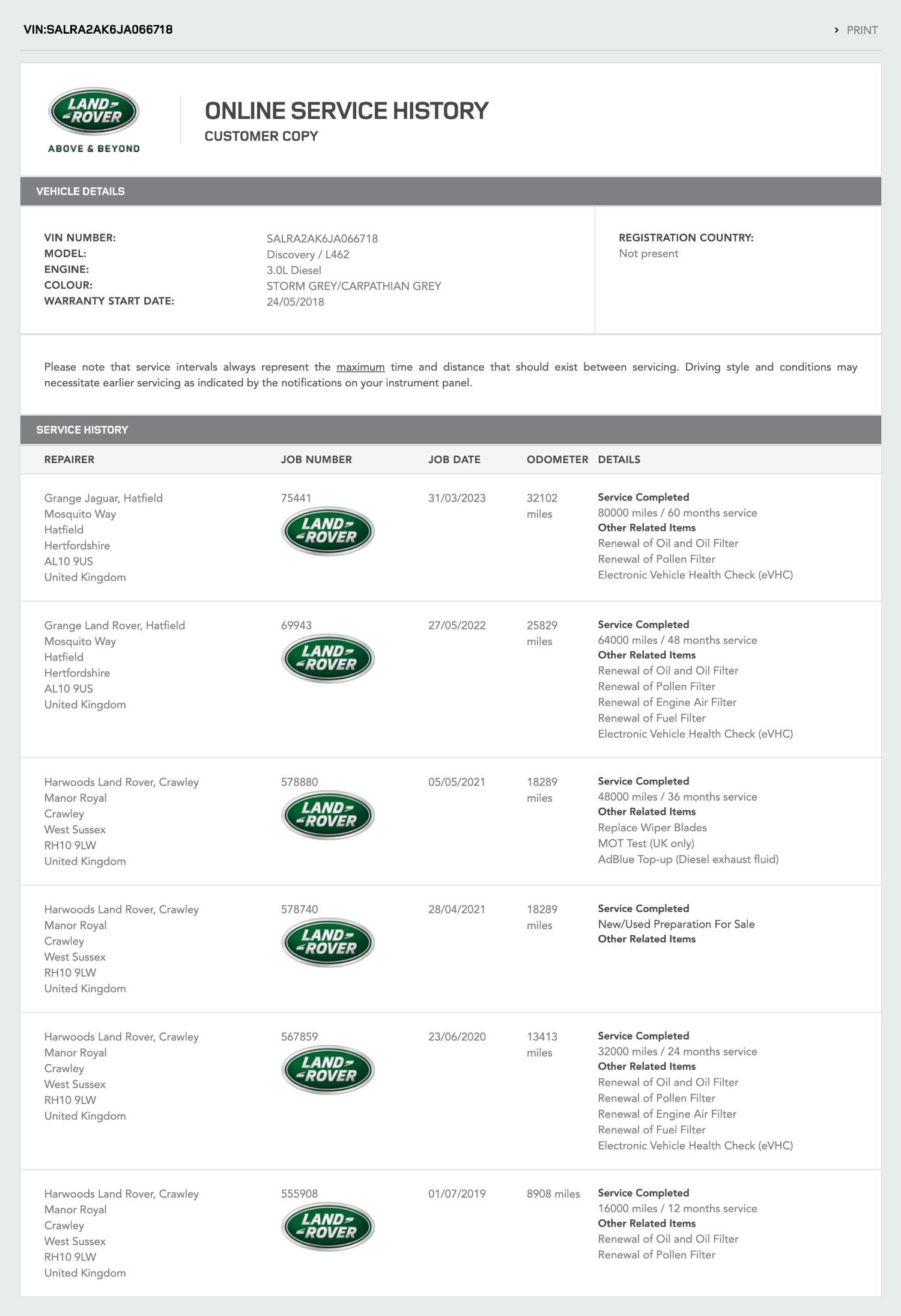 *** A SUPERB CONDITION DISCOVERY 5 WITH FULL LAND ROVER SERVICE HISTORY *** SPEC INCLUDES -MERIDIAN SOUND - BLACK PACK - TWIN PAN ROOF WITH ELECTRIC FRONT SUNROOF - PRIVACY GLASS - REVERSE CAMERA - BLIND SPOT & INTELLIGENT SEAT FOLD *** RECENTLY SERVICED 4 NEW TYRES FITTED PLUS BRAKE DISKS AND PADS ALL ROUND *** All our CARS a have a meticulous Pre Delivery Inspection prior to handover, Plus a MINIMUM 3 MONTHS DRIVER PLUS WARRANTY SUPPLIED BY LAWGISTICS *** LOW RATE FINANCE OPTIONS AVAILABLE *** THE CAR HAS 2 KEYS BOOK PACK ***, Next MOT due 27/07/2024, Last serviced on 31/03/2023 at 32,102 miles, Full dealership history, Excellent bodywork, Interior - Excellent Condition, Tyre condition New, 7 seats, Grey, 3 owners, Upgrades - Rear View Camera, Meridian Surround Sound System, Privacy Glass, Adaptive LED Headlights with Signature DRL, Black Pack, Perforated Windsor Leather - Ebony-Ebony with Light Oyster Piping, Intelligent Seat Fold, Ebony Headlining, 20in Alloy Wheels - 5 Split Spoke Style 5011 with Gloss Black Finish, Electric Sunroof with Fixed Rear Glass Pano, Standard Features - 2-Zone Automatic Climate Control, 20in Alloy Wheels - 5 Split Spoke Style 5011, 60-40 Load Through Rear Seats with Manual Slide and Power Recline, 7 Seats, AHBA - Auto High Beam Assist, Auto Dimming Rear View Mirror, Auto-Dimming Exterior Mirrors, Automatic Headlights, Autonomous Emergency Braking, Blind Spot Assist with Reverse Traffic Detection, Body Coloured Door Handles, Bright Treadplates, Door Mirrors - Electrically Adjustable - Heated and Power Folding with Memory Function, Driver Condition Monitor, ESP - Electronic Stability Program, Electronic Air Suspension, Fixed Panoramic Roof, Forward Facing Camera, Front Fog Lights, Front Parking Aid with Front Visual Display, Gesture Tailgate, HSE Badge, Heated Front and Rear Seats, InControl Apps, InControl Pro Services for Warranty Period, InControl Protect, InControl Remote Premium for Warranty Period, InControl Touch Pro Navigation, Interior Mood Lighting - Door Signature and Door Bins, Keyless Entry, LED Headlights with Signature DRL, Lane Departure Warning, Meridian Digital Sound System, Natural Shadow Oak Veneer, Power Fold Heated Door Mirrors with Approach Lamps, Powered Inner Tailgate, Powered Third Row Seats, Rear Parking Aid with Visual Display, Second Row 2x USBs Charging Points, Signature Hi-Line Tail Lights, Steering Column - Electric For Height and Reach Adjustment, TCS - Traction Control System, TPMS - Tyre Pressure Monitoring System, Traffic Sign Recognition and Intelligent Speed Limiter, Twin Speed Transfer Box - High-Low Range,