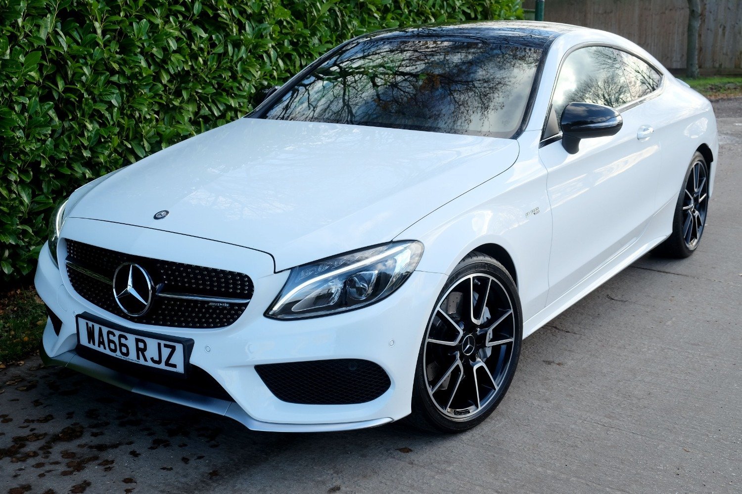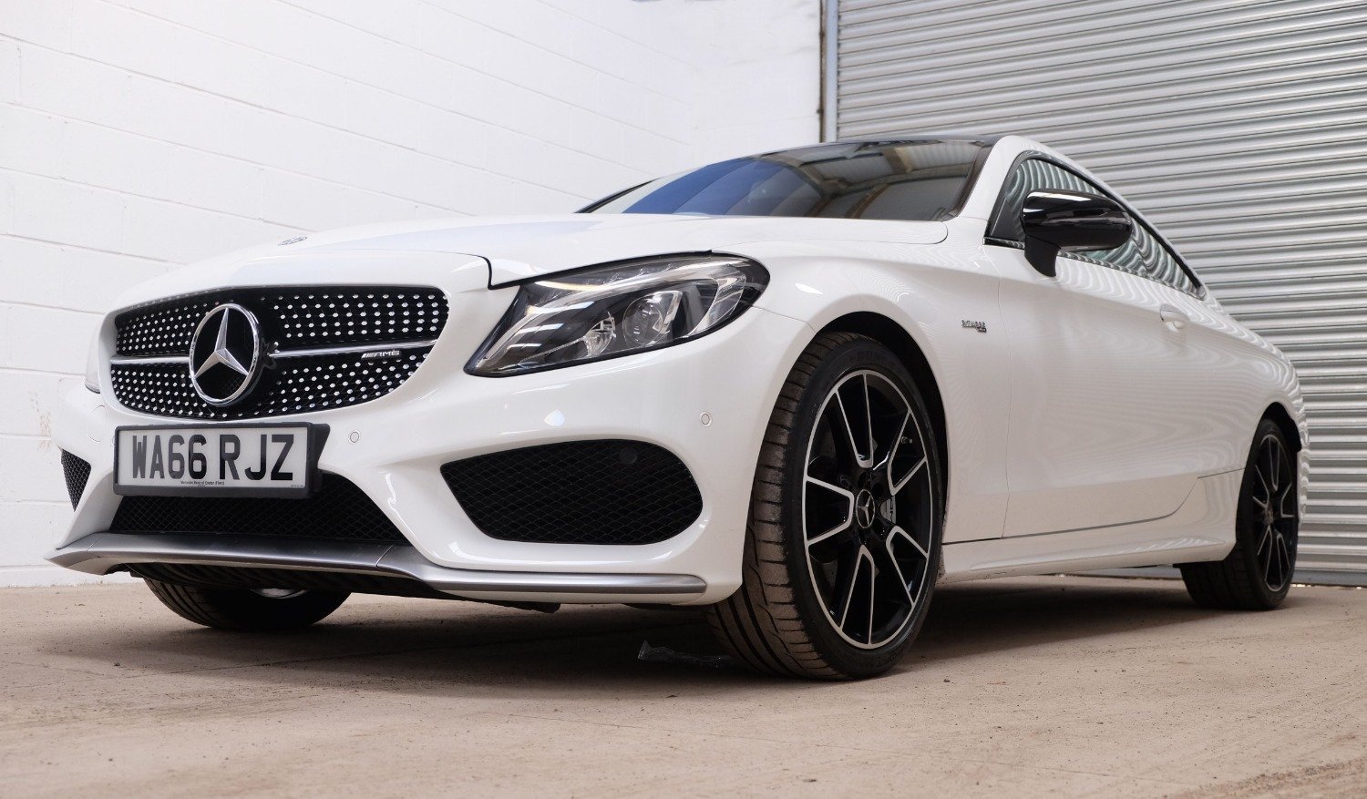 ** STUNNING LOOKING C43 COUPE IN WHITE WITH RED LEATHER INTERIOR, PANORAMIC SUNROOF AND SPORTS EXHAUST SYSTEM, 1 OWNER CAR WITH FULL MERCEDES SERVICE HISTORY AND JUST BEEN SERVICED ** MERCEDES UNLIMITED MILEAGE WARRANTY UNTIL 08/09/2019 **, Upgrades - Upholstery - Leather, Alloy Wheels-19in AMG Multispoke in Black, Standard Features - PREMIUM PACK, Active Park Assist with Parktronic, Anti-Theft Alarm System with Tow-Away Protection and Interior Monitoring, Audio 20 CD with Integrated Media Interface Port for iPod or iPhone, Bluetooth Interface with Hands-Free Function, DAB Digital Radio Tuner, Drivers and Front Passenger Seats - Electrically Adjustable with Memory, ECO Start/Stop Function, Electric Windows (2) with One - Touch Opening and Closing, Including Obstruction Sensors, Front Seats - Heated, Garmin Map Pilot Navigation System, Heated Windscreen Wash, Hill Start Assist, Rain-Sensing Windscreen Wipers, Reversing Camera, Speedtronic Cruise Control, THERMATIC - Automatic Climate Control Two Zone, Tinted Glass All Round - Green, Touchpad, Tyre Pressure Monitoring System, 3-Spoke Multi-Function Sports Steering Wheel-Controls Audio and Onboard Settings with Gearshift Paddles, 3x3 point rear seat belts, 5.5in TFT Multifunction Display and High - Resolution 7in Multi - Media Colour Display, AMG Ride Control Sports Suspension, AMG Sports Seats with Integrated Head Restraints, Active Bonnet - Pedestrian Safety Measure which Detects an Impact and Raises Bonnet, ATTENTION ASSIST, COLLISION PREVENTION ASSIST, Adaptive Brake Lamps, Air conditioning, Airbag-Dual-Stage Passenger, Airbags, Airbags-Driver Knee Bag, Airbags-Dual-Stage Driver, Alarm, Alloy wheels, Anti-Lock Braking System (ABS) with Adaptive Brake System, Automatically Dimming Rear-View Mirror, CD Player, Central Locking with Interior Switch, Automatic Locking and Crash Sensor with Emergency Opening Function, Central locking, Centre Console, Child locks & Isofix system, Cruise control, Double Cup Holder in Centre Console, Electric door mirrors, Electric windows, Electronic Key, Electronic Parking Brake, Electronic Stability Programme (ESP), Exterior Mirrors-Electrically Adjustable, Folding and Heated and Automatically Dimming Exterior Drivers Mirror, Floor Mats - Black with AMG Lettering, Folding rear seats, Front Centre Armrest with Storage, Front Seats with Electrical Height/Back Adjustment, Headlamps - LED High Performance with Integral LED Daytime Running Lights, Tail Lamps-Full LED, Heated seats, Height adjustable drivers seat, High Gloss Black with Aluminium Trim, ISOFIX Child Seat Attachment Points with Top Tether in the Rear, Immobiliser, Leather seats, Loudspeakers with Frontbass, Lumbar support, Mercedes Connect Me (Standard Services), Outside Temperature Display, Parking aid, Power steering, Radio, Rear Reading Lights (LED), Courtesy Lamps in all Doors, Lighting of Footwells, Door Handle Recesses, Rear Seats-Split Folding 40/20/40, Remote Boot Release, Remote central locking, Satellite navigation, Seat Comfort Package Electro-Pneum.4-Way Lumbar Support for Front Seats, Side Airbags in Front Seats, Pelvis Bag and Windowbags for Driver, Front Passenger and Rear Passengers, Sports seats, Steering - Sports Direct - Steer System with Speed Sensitive Steering, Steering Column - Manually Adjustable for Height and Reach, Steering Wheel in Black Leather with Flattened Bottom, Sun Visors with Illuminated Vanity Mirrors, Sunroof, TIREFIT with Tyre Inflation Compressor, Traction control, Two USB Ports in Centre Console, Variable Speed Limiter. 4 seats, White, **All our cars a have a meticulous Pre Delivery Inspection prior to handover ** LOW RATE FINANCE OPTIONS AVAILABLE *** THE CAR HAS 2 KEYS AND BOOK PACK + PAN ROOF **, 1 owner, **WE ARE A MERCEDES BENZ USED CAR SPECIALIST WITH OVER 30 YEARS RETAIL EXPERIENCE WITHIN OUR TEAM **,