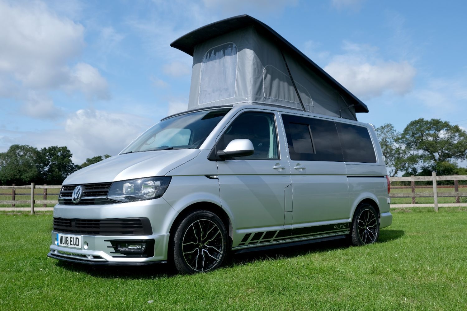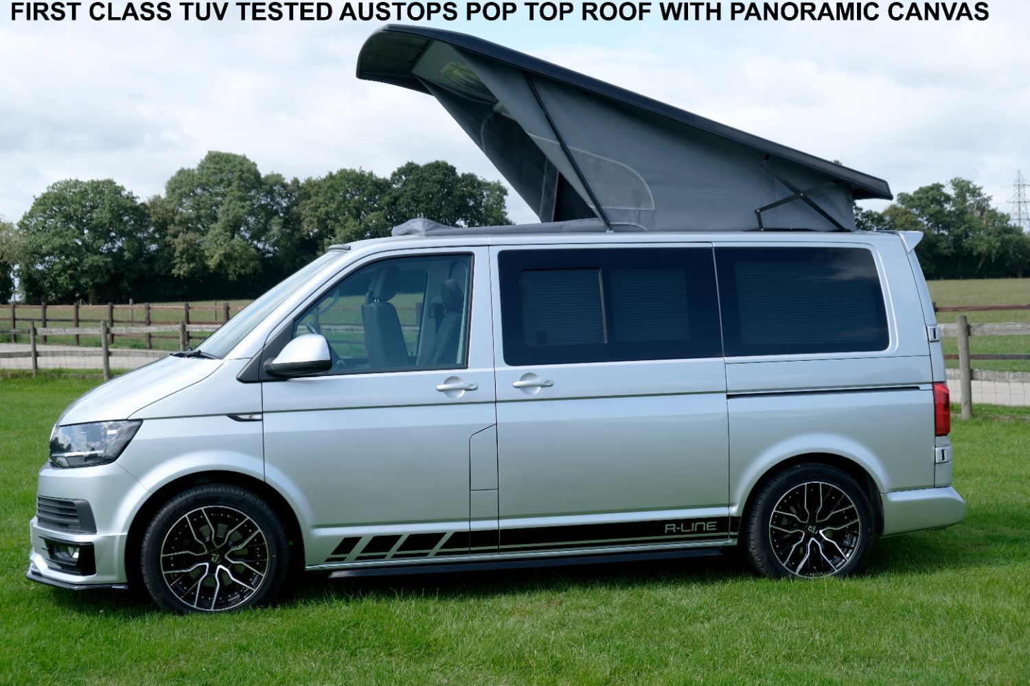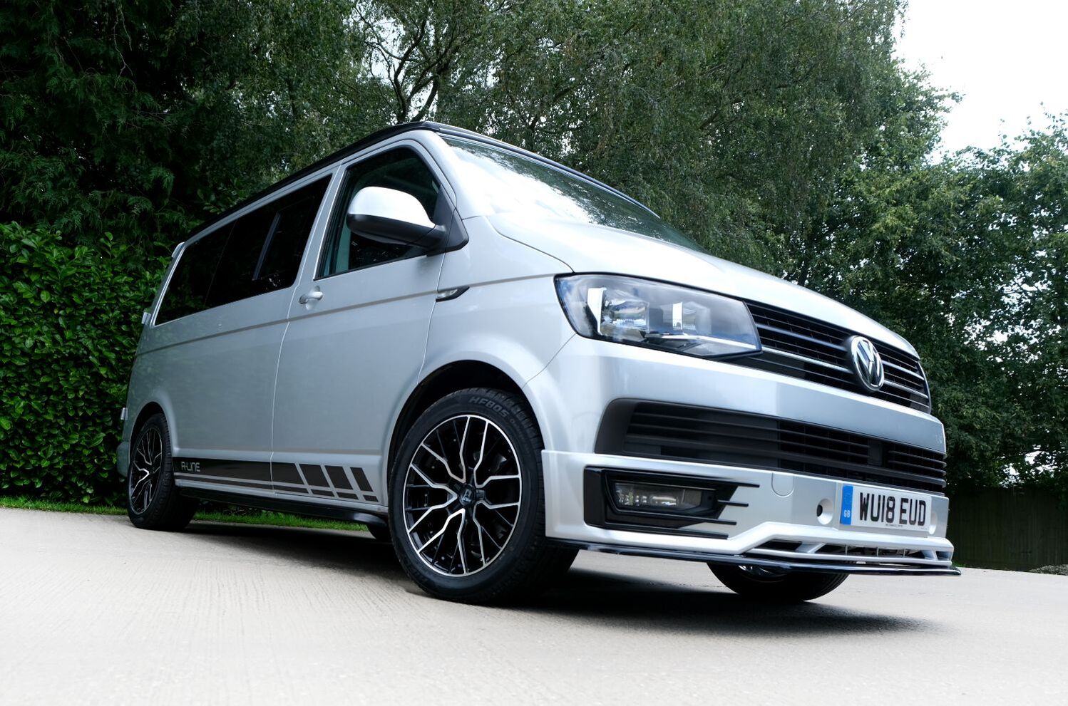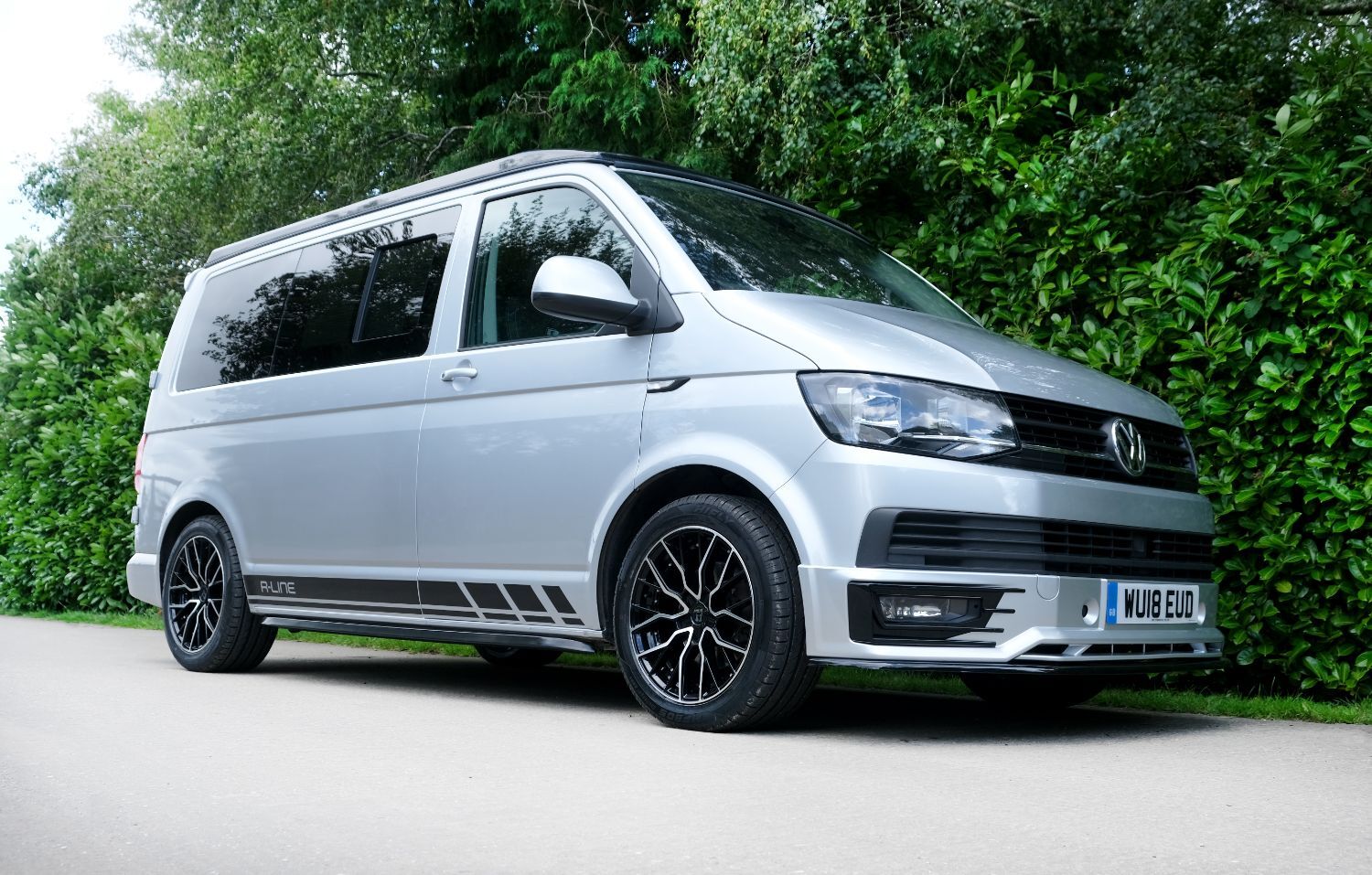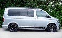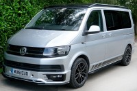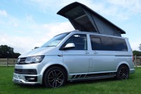 A SUPERB CONDITION VW TRANSPORTER HIGHLINE SPORTLINE CAMPER VAN CONVERSION *** THIS IS A BRAND NEW CONVERSION CARRIED OUT BUY US *** MASSIVE SPEC WHICH INCLUDES - GENUINE SPORTLINE BUMPER + FRONT LIP & REAR SPOILER - BRAND NEW WOLFRACE MUNICH GTR 18 INCH ALLOYS TYRES - H&R SPRINGS 40MM DROP FRONT & REAR - SOLAR PANEL PLUS DC TO DC CHARGER - BLUETOOTH PHONE CONNECTION - BLUETOOTH PHONE AND MUSIC STREAMING - REAR PARKING SENSORS - FACTORY AIR CON - CRUISE CONTROL - HEATED FRONT WINDSCREEN - MULTI FUNCTION DASH - LEATHER STEERING WHEEL *** TOP QUALITY INTERIOR FINISH RE TRIMMED IN R LINE BLACK LEATHER - PASSENGER SEAT M1 TESTED SWIVEL BASE TO FACE REAR - VANSHADES BLACKOUT THERMAL BLIND SYSTEM THROUGHOUT- RV 3 WAY FRIDGE / FREEZER - THETFORD Dual Gas HOB & SINK - AUSTOPS TUV TESTED POP TOP ROOF BED WITH PANORAMIC CANVAS - DRIVER AND PASSENGER SIDE REAR OPENING GLASS - SWAN NECK TOWBAR - *** THE VAN HAS ALSO BEEN FULLY INSULATED INCLUDING ALL DOORS - SIDE PANELS AND DEAD MAT ARCHES **** JUST HAD MAJOR SERVICE INCLUDING CAMBELT AND WATER PUMP CHANGE - COMES WITH 1 YEARS MOT *** All our campers a have a meticulous Pre Delivery Inspection prior to handover, Plus a MINIMUM 3 MONTHS DRIVER PLUS WARRANTY SUPPLIED BY LAWGISTICS *** LOW RATE FINANCE OPTIONS AVAILABLE *** THE CAMPER HAS 2 KEYS BOOK PACK ***