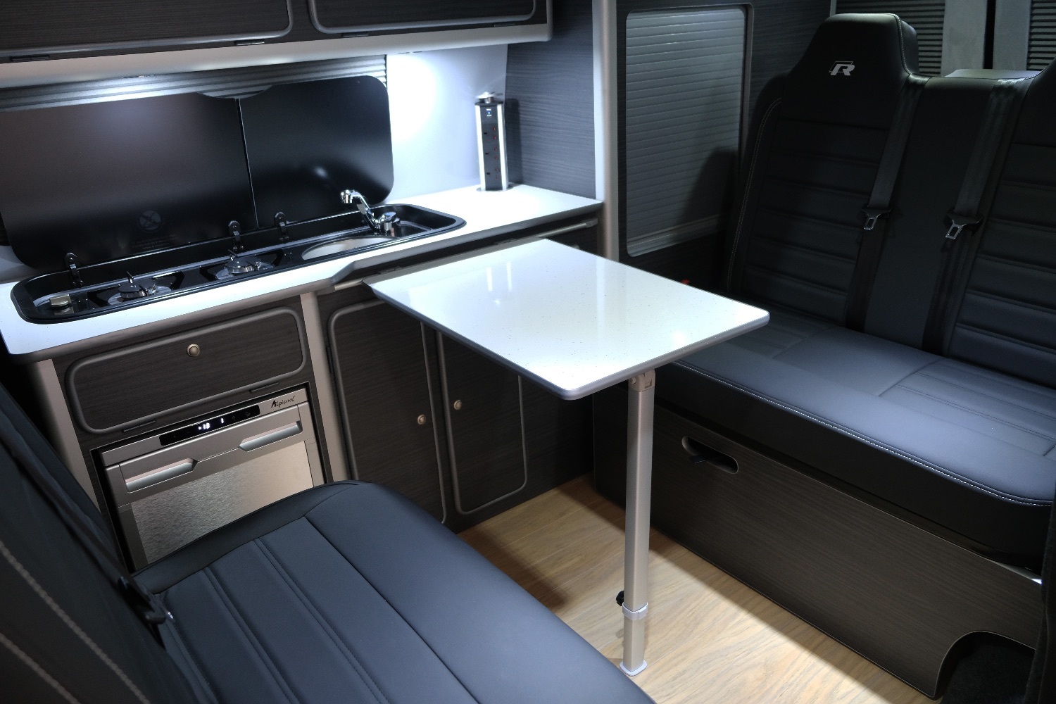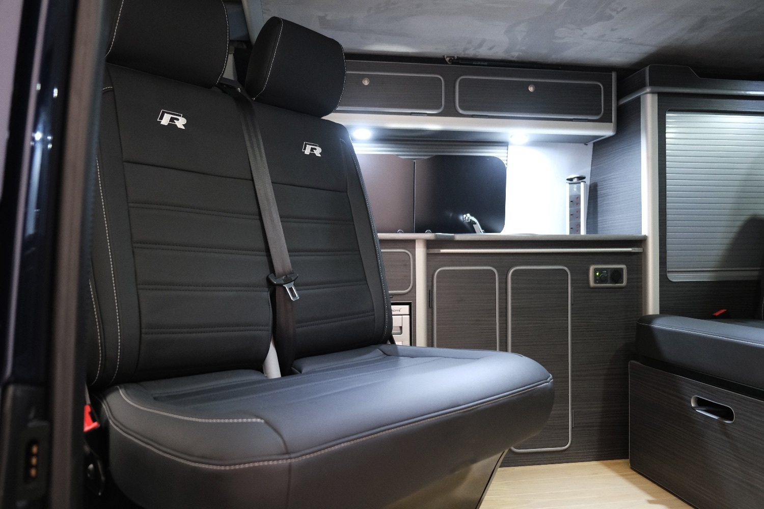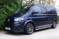 *** A SUPERB CONDITION VW TRANSPORTER LOW MILEAGE CAMPER VAN CONVERSION *** THIS IS A BRAND NEW CONVERSION CARRIED OUT BUY US ALL PARTS ARE NEW *** MASSIVE SPEC WHICH INCLUDES - GENUINE SPORTLINE BUMPER - LOWER SPLITTER &REAR SPOILER - WOLFRACE MATRIX 18 INCH ALLOYS - H&R SPRINGS 40MM DROP FRONT & REAR - RENOGY SOLAR PANEL PLUS DC TO DC CHARGER - BLUETOOTH PHONE CONNECTION - BLUETOOTH PHONE AND MUSIC STREAMING - REAR PARKING SENSORS - FACTORY AIR CON - LED DAYTIME RUNNING LIGHTS - CRUISE CONTROL - MULTI FUNCTION DASH - LEATHER STEERING WHEEL*** TOP QUALITY INTERIOR FINISH RE TRIMMED IN R LINE BLACK LEATHER - PASSENGER SEAT M1 TESTED SWIVEL BASE TO FACE REAR - VANSHADES BLACKOUT THERMAL BLIND SYSTEM THROUGHOUT- CG 50L FRIDGE / FREEZER - THETFORD Dual Gas HOB SINK - AUSTOPS TUV TESTED POP TOP ROOF BED WITH PANORAMIC CANVAS - DRIVER AND PASSENGER SIDE REAR OPENING GLASS - RUSTY LEE M1 & TUV TESTED ROCK N ROLL BED *** THE VAN HAS ALSO BEEN FULLY INSULATED INCLUDING ALL DOORS - SIDE PANELS AND DEAD MAT ARCHES *** EXCELLENT SERVICE HISTORY *** JUST HAD CAMBELT AND WATER PUMP CHANGE ***our vans a have a meticulous Pre Delivery Inspection prior to handover, Plus a MINIMUM 3 MONTHS WARRANTY SUPPLIED BY WARRANTYWISE the UK 'S BEST USED CAR WARRANTY COMPANY *** LOW RATE FINANCE OPTIONS AVAILABLE *** THE VAN HAS 2 KEYS PLUS BOOK PACK AND WILL COME WITH 1 YEARS MOT ***,, 2 owners, Upgrades - 12v Power, ABS, Air Conditioning, Alarm, Alloy Wheels, Battery Charger, Blinds, Bluetooth, Cab DVD / CD, Central Locking, Colour Coded Bumpers, Cruise Control, Electric Mirrors, End Bathroom, External 240v, Fresh/Waste Water Tank, Fridge/Freezer, Heated Mirrors, Leisure Battery, Leather Upholstery, Mains electric, Solar Panels, Spare wheel, Swivel Passenger Seat, Warranty