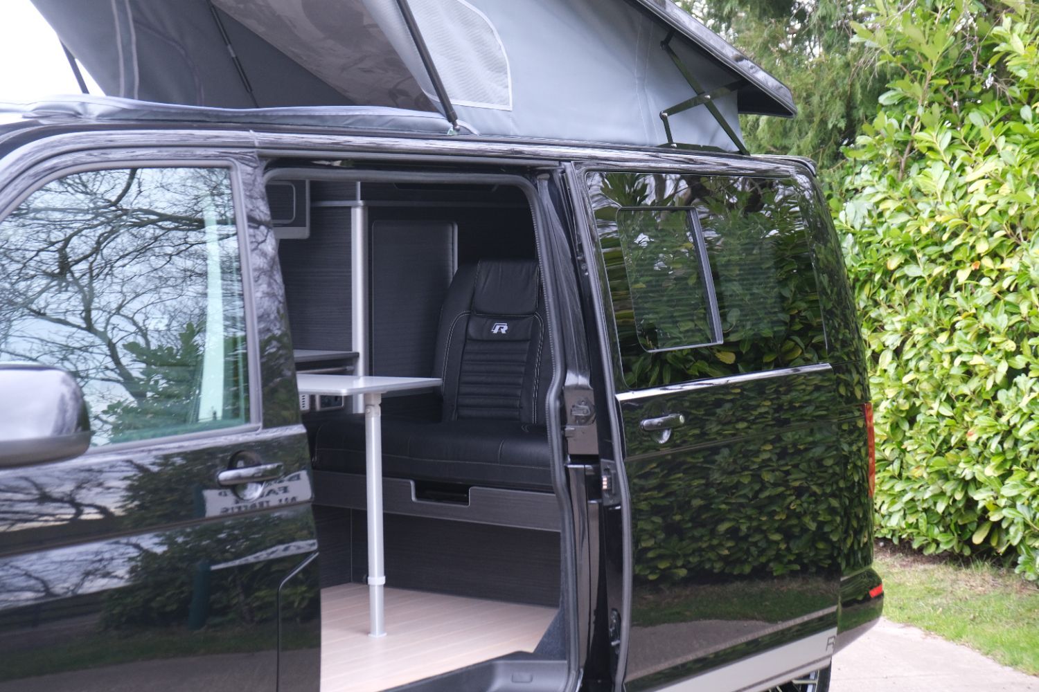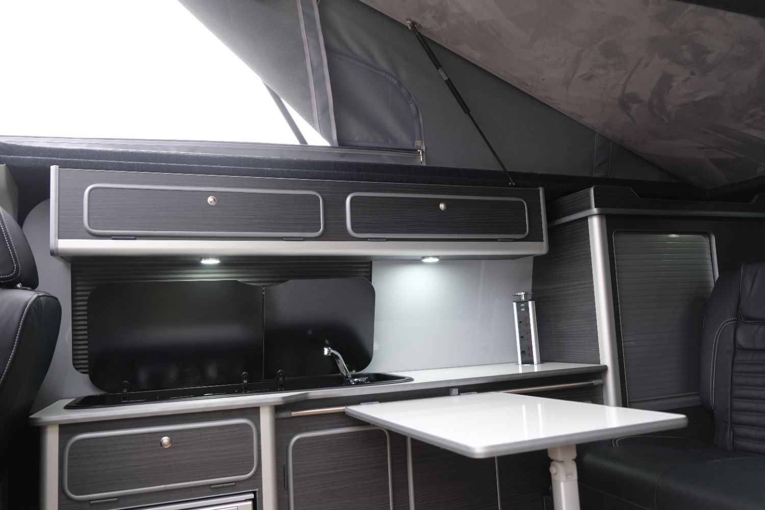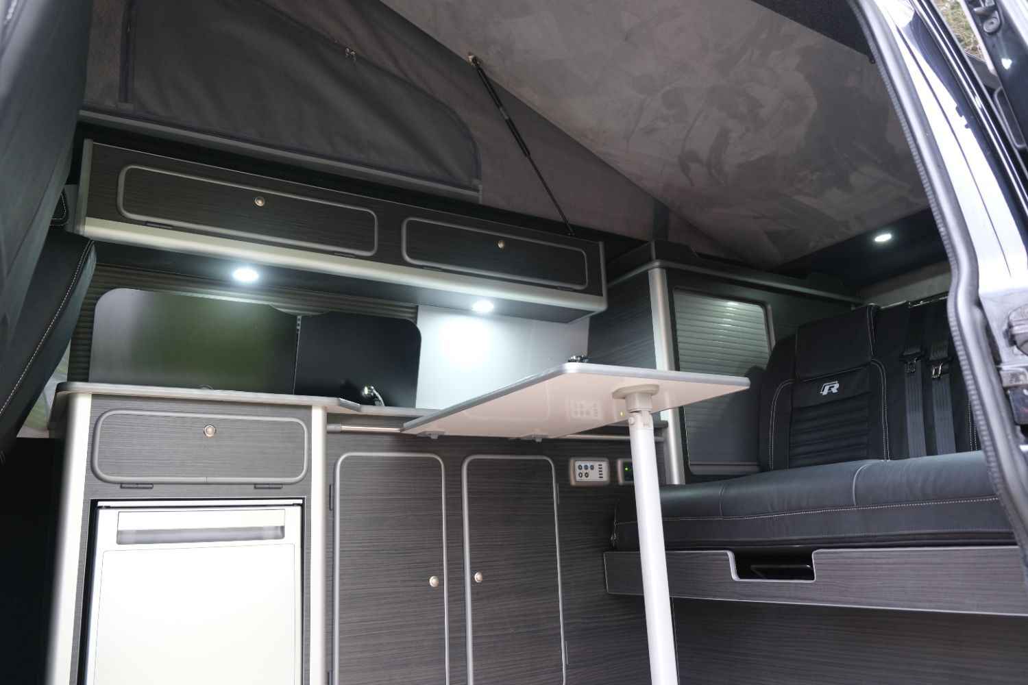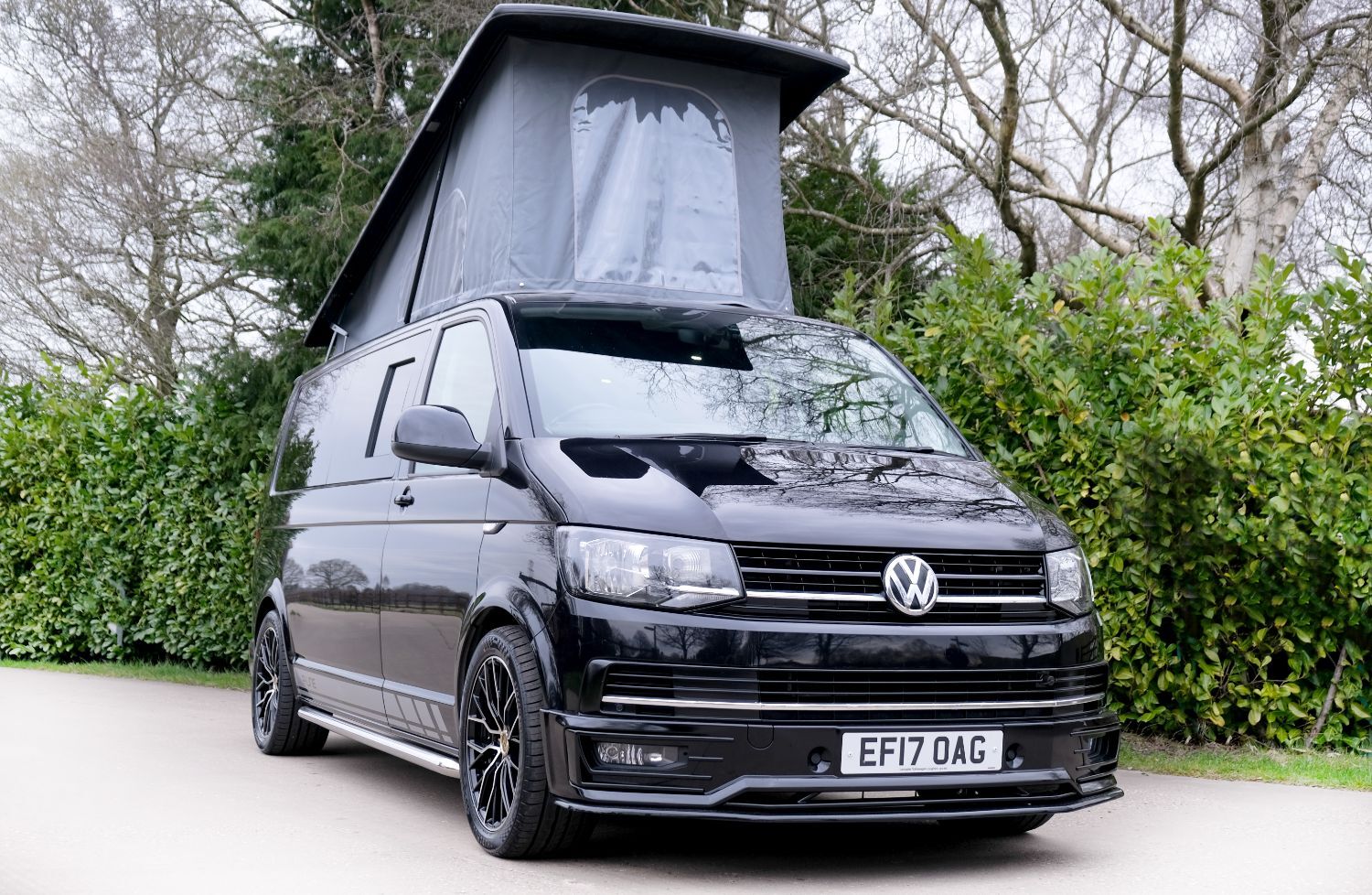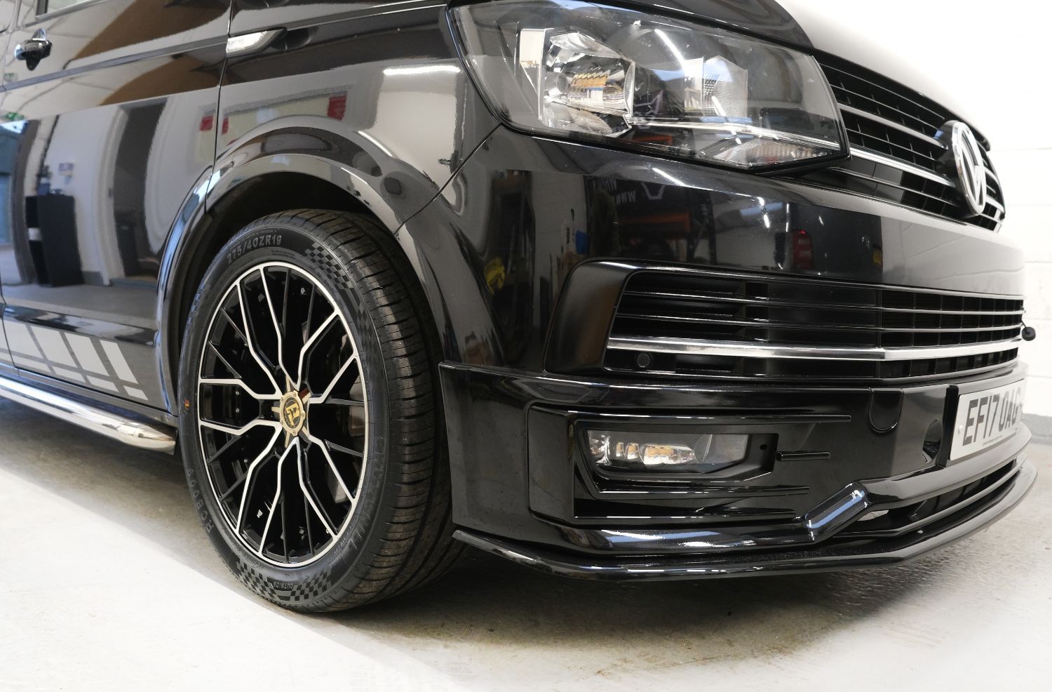 A SUPERB CONDITION VW TRANSPORTER RARE LWB TAILGATE R LINE CAMPER VAN CONVERSION *** THIS IS A BRAND NEW CONVERSION CARRIED OUT BUY US *** MASSIVE SPEC WHICH INCLUDES - GENUINE SPORTLINE BUMPER + FRONT LIP & REAR SPOILER - BRAND NEW WOLFRACE MUNICH GTR 19 INCH ALLOYS & TYRES - H&R SPRINGS 40MM DROP FRONT & REAR - VW DISCOVER MEDIA WITH SATELLITE NAVIGATION SYSTEM & BLUETOOTH PHONE CONNECTION - BLUETOOTH PHONE AND MUSIC STREAMING - FRONT & REAR PARKING SENSORS - FACTORY AIR CON - CRUISE CONTROL - HEATED FRONT WINDSCREEN - MULTI FUNCTION DASH - ELECTRIC FOLDING MIRRORS - LEATHER STEERING WHEEL *** TOP QUALITY INTERIOR FINISH WITH LEATHER TRIMMED SLIDING ISOFIX RIB BED - PASSENGER SEAT M1 TESTED SWIVEL BASE TO FACE REAR - VANSHADES BLACKOUT THERMAL BLIND SYSTEM THROUGHOUT- R LINE LEATHER RE-TRIMMED SEATS - DOMESTIC Waeco CRX550 FRIDGE / FREEZER - Thetford Dual Gas HOB &SINK - AUSTOPS TUV TESTED POP TOP ROOF BED WITH PANORAMIC CANVAS - DRIVER AND PASSENGER SIDE REAR OPENING GLASS *** THE VAN HAS ALSO BEEN FULLY INSULATED INCLUDING ALL DOORS - SIDE PANELS AND DEAD MAT ARCHES *** EXCELLENT VW SERVICE HISTORY INCLUDING CAMBELT AND WATER PUMP CHANGE ****