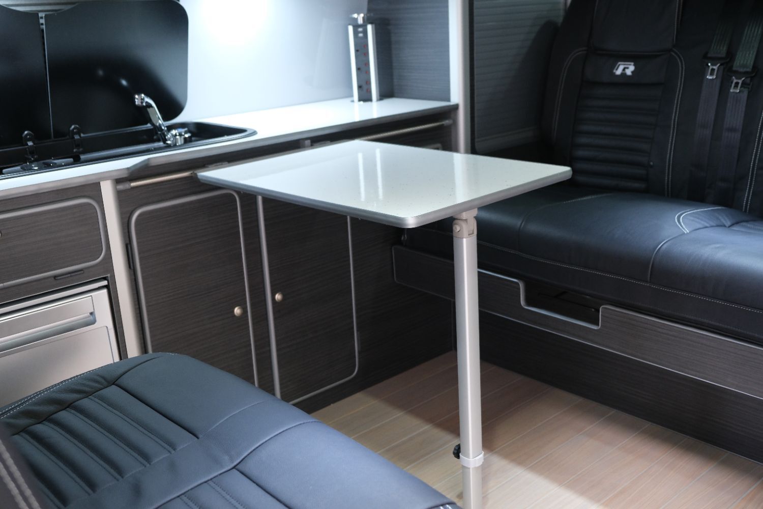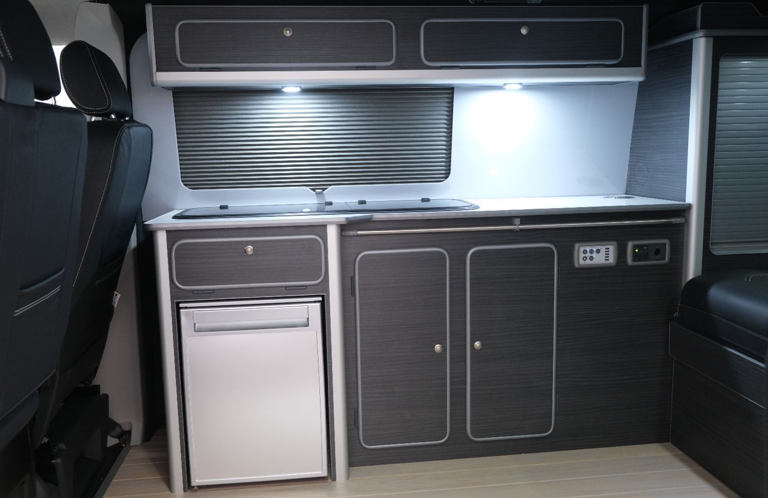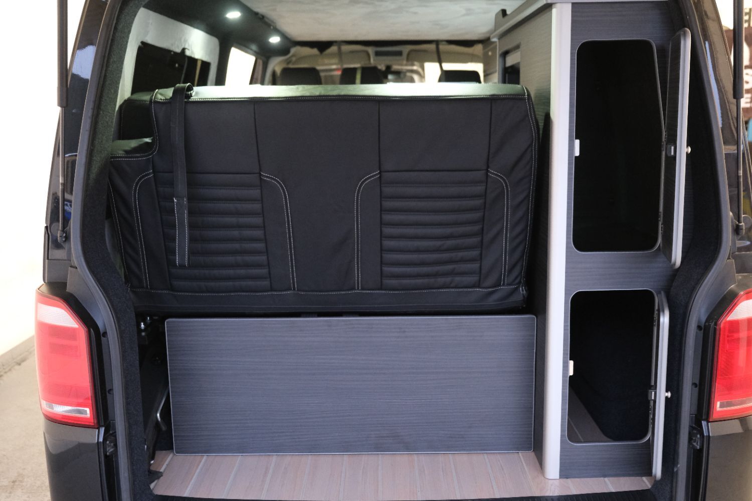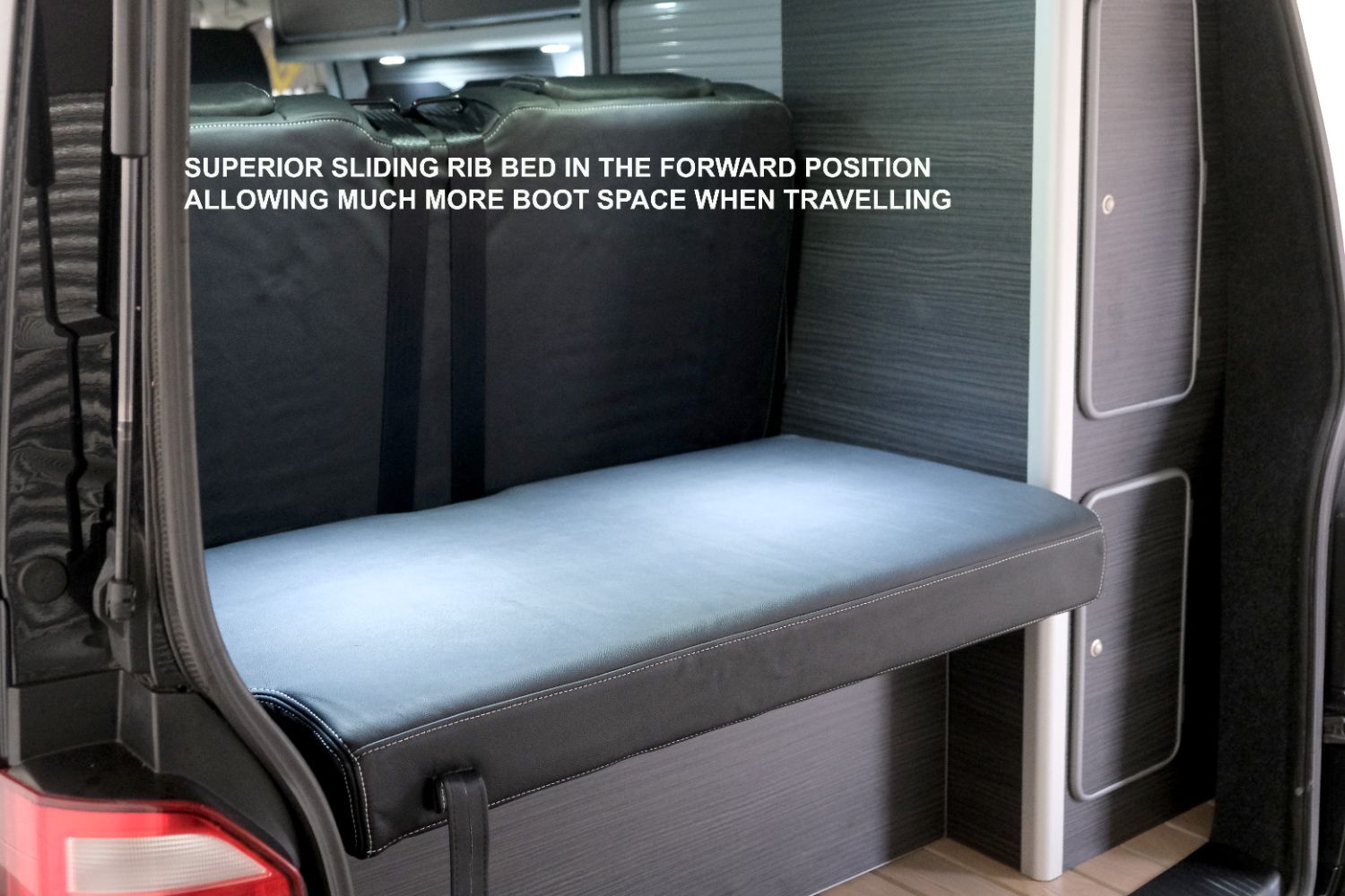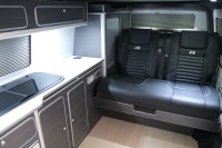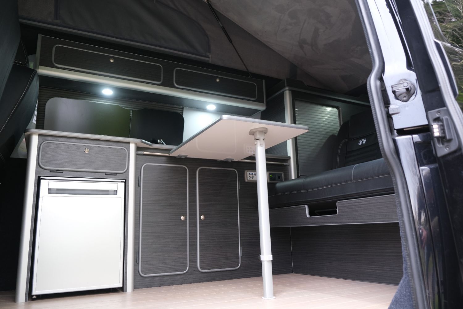 A SUPERB CONDITION VW TRANSPORTER RARE LWB TAILGATE R LINE CAMPER VAN CONVERSION *** THIS IS A BRAND NEW CONVERSION CARRIED OUT BUY US *** MASSIVE SPEC WHICH INCLUDES - GENUINE SPORTLINE BUMPER + FRONT LIP & REAR SPOILER - BRAND NEW WOLFRACE MUNICH GTR 19 INCH ALLOYS & TYRES - H&R SPRINGS 40MM DROP FRONT & REAR - VW DISCOVER MEDIA WITH SATELLITE NAVIGATION SYSTEM & BLUETOOTH PHONE CONNECTION - BLUETOOTH PHONE AND MUSIC STREAMING - FRONT & REAR PARKING SENSORS - FACTORY AIR CON - CRUISE CONTROL - HEATED FRONT WINDSCREEN - MULTI FUNCTION DASH - ELECTRIC FOLDING MIRRORS - LEATHER STEERING WHEEL *** TOP QUALITY INTERIOR FINISH WITH LEATHER TRIMMED SLIDING ISOFIX RIB BED - PASSENGER SEAT M1 TESTED SWIVEL BASE TO FACE REAR - VANSHADES BLACKOUT THERMAL BLIND SYSTEM THROUGHOUT- R LINE LEATHER RE-TRIMMED SEATS - DOMESTIC Waeco CRX550 FRIDGE / FREEZER - Thetford Dual Gas HOB &SINK - AUSTOPS TUV TESTED POP TOP ROOF BED WITH PANORAMIC CANVAS - DRIVER AND PASSENGER SIDE REAR OPENING GLASS *** THE VAN HAS ALSO BEEN FULLY INSULATED INCLUDING ALL DOORS - SIDE PANELS AND DEAD MAT ARCHES *** EXCELLENT VW SERVICE HISTORY INCLUDING CAMBELT AND WATER PUMP CHANGE ****