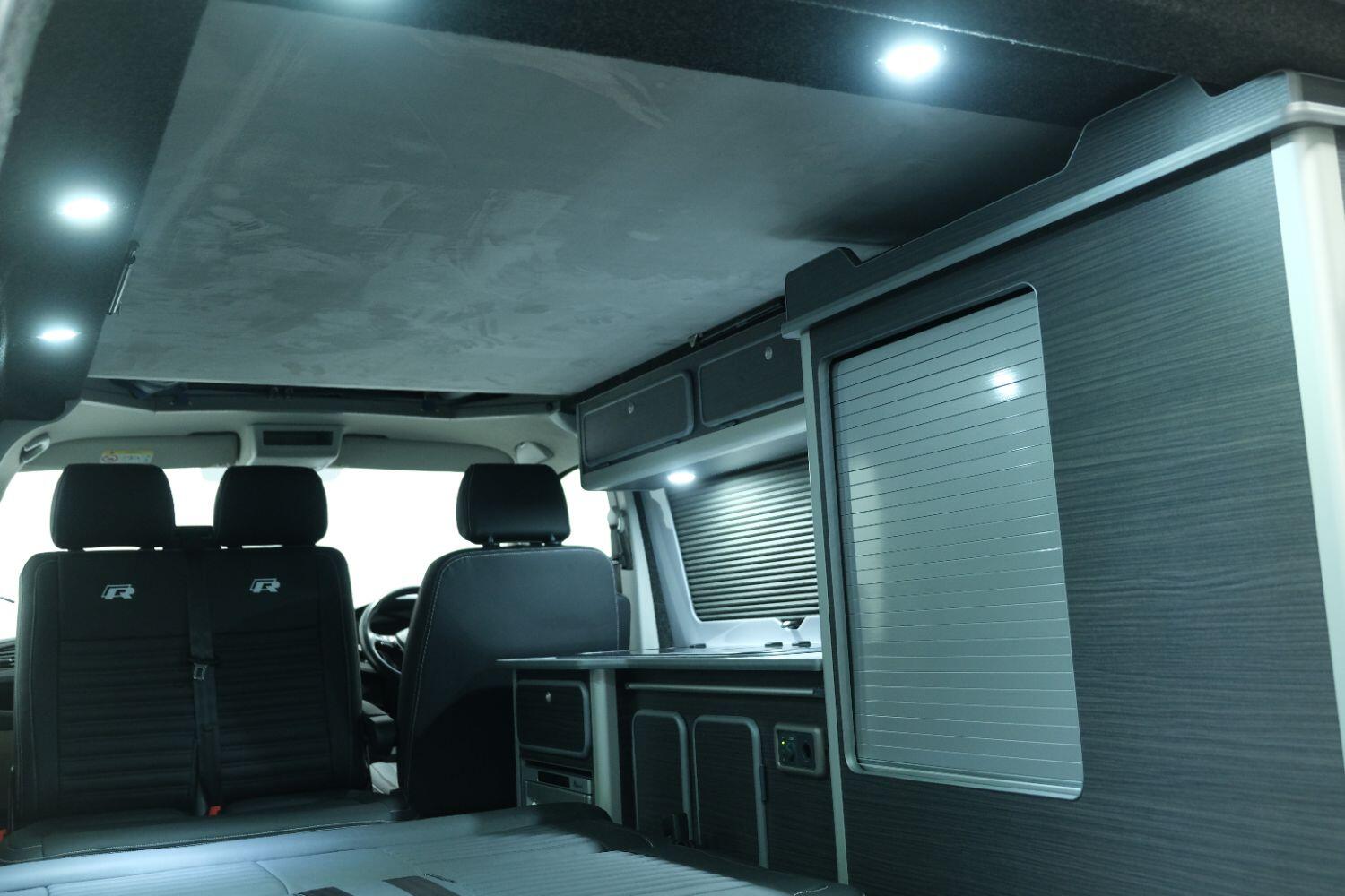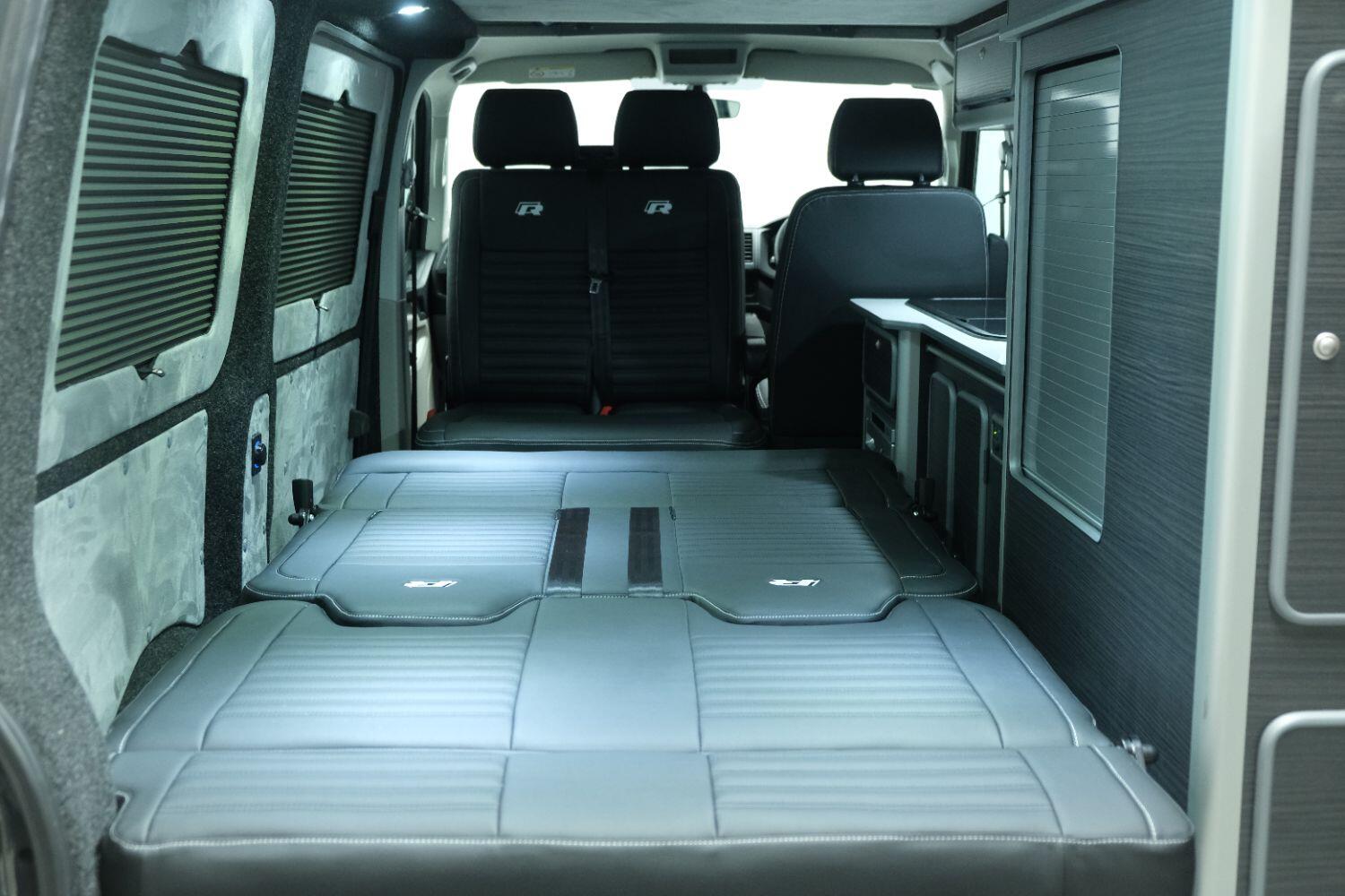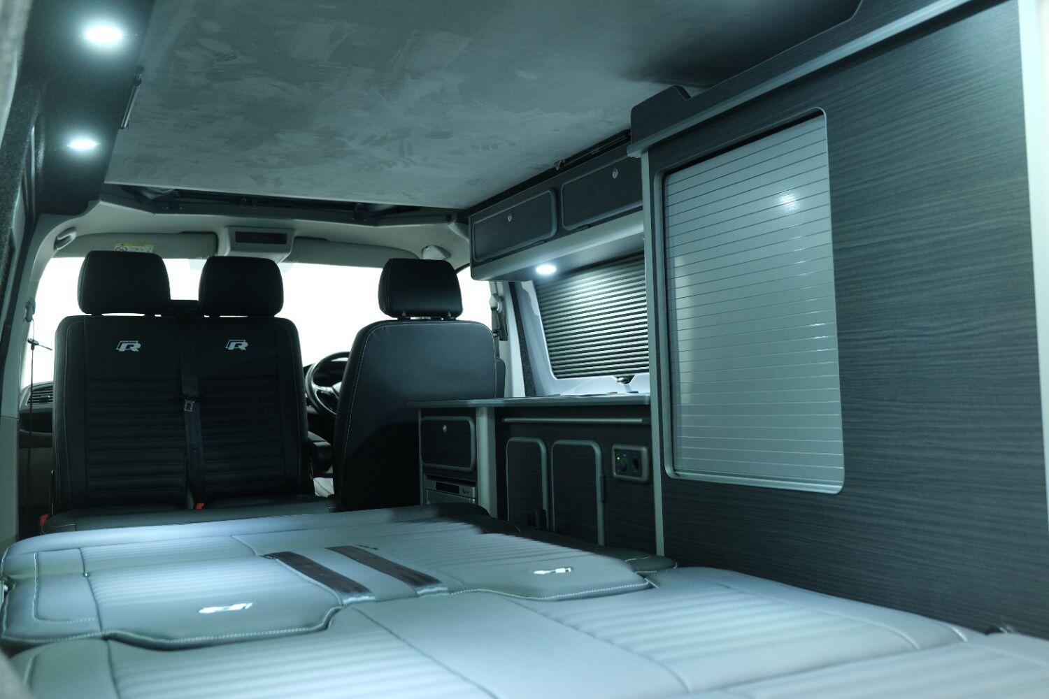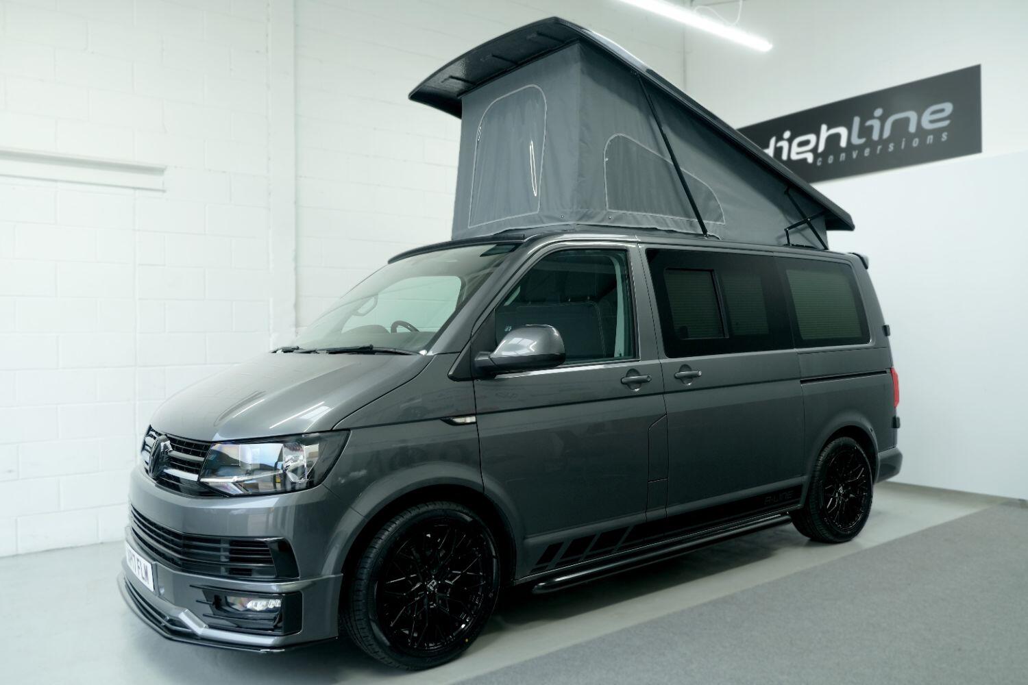 *** A SUPERB CONDITION LOW MILEAGE VW TRANSPORTER T6 R LINE DESIGN CAMPERVAN *** THIS IS A BRAND NEW CONVERSION CARRIED OUT BUY US ALL PARTS ARE NEW *** MASSIVE SPEC WHICH INCLUDES - ORIGINAL SPORTLINE BODY KIT - WOLFRACE 18INCH GLOSS BLACK MATRIX ALLOYS - H & R LOWERING SPRINGS 40 MM DROP FRONT & REAR - RENOGY SOLAR PANEL PLUS DC TO DC CHARGER - *** TOP QUALITY INTERIOR FINISH RE TRIMMED IN R LINE BLACK LEATHER - PASSENGER SEAT M1 TESTED SWIVEL BASE TO FACE REAR - VANSHADES BLACKOUT THERMAL BLIND SYSTEM THROUGHOUT- ALPICOOL 50L FRIDGE / FREEZER - THETFORD Dual Gas HOB SINK - AUSTOPS TUV TESTED POP TOP ROOF BED WITH PANORAMIC CANVAS - DRIVER AND PASSENGER SIDE REAR OPENING GLASS - RUSTY LEE M1 TUV TESTED ROCK N ROLL BED - 240V MAINS HOOK UP *** THE VAN HAS ALSO BEEN FULLY INSULATED INCLUDING ALL DOORS - SIDE PANELS AND DEAD MAT ARCHES *** BLUETOOTH PHONE CONNECTION - BLUETOOTH PHONE AND MUSIC STREAMING - REAR PARKING SENSORS - FACTORY AIR CON - LED DAYTIME RUNNING LIGHTS - CRUISE CONTROL - MULTI FUNCTION DASH - LEATHER STEERING WHEEL *** FULL SERVICE HISTORY ***JUST BEEN SERVICED WITH CAMBELT AND WATER PUMP CHANGE - COMES WITH NEW 1 YEARS MOT *** PART EXCHANGE WELCOME ***, 2 owners, Upgrades - 12v Power, ABS, Air Con, Air Conditioning, Alarm, Alloy Wheels, Battery Charger, Blinds, Blown Air Heating, Bluetooth, Central Locking, Cruise Control, Colour Coded Bumpers, Eberspacher Heating, Electric Mirrors, End Bedroom, External 240v, Fresh Water Tank, Fresh/Waste Water Tank, Fridge/Freezer, Gas Hob, Heated Mirrors, Immobiliser, Leather Upholstery, Mains electric, Power Steering, Reversing Sensors, Solar Panels, Swivel Passenger Seat, Wardrobe