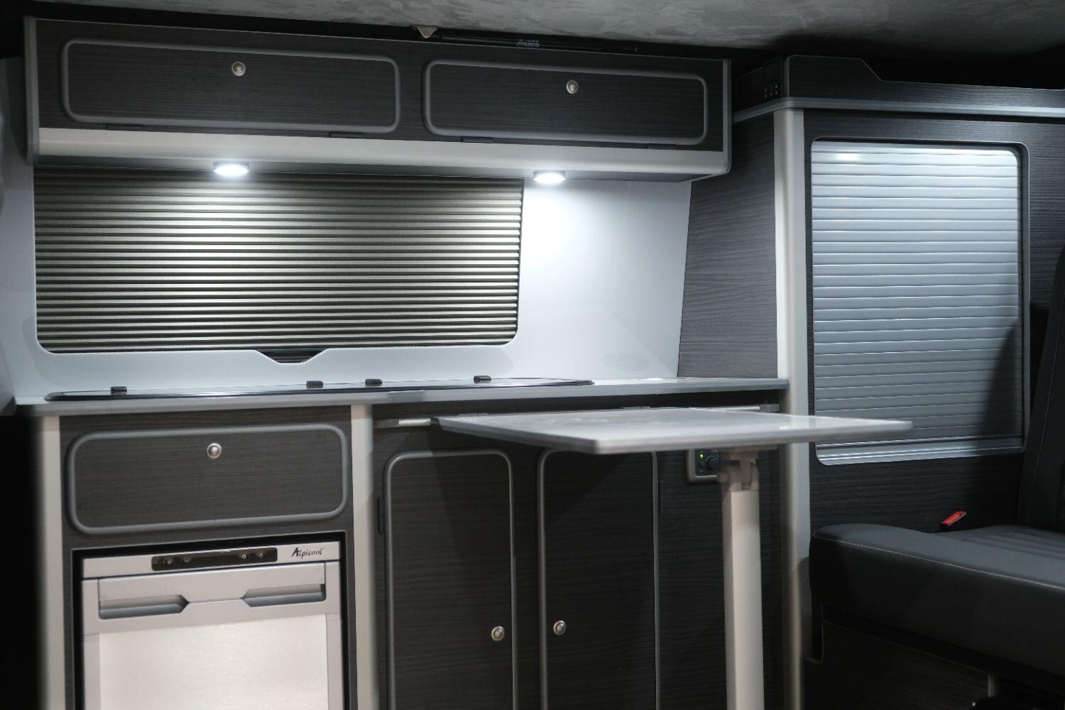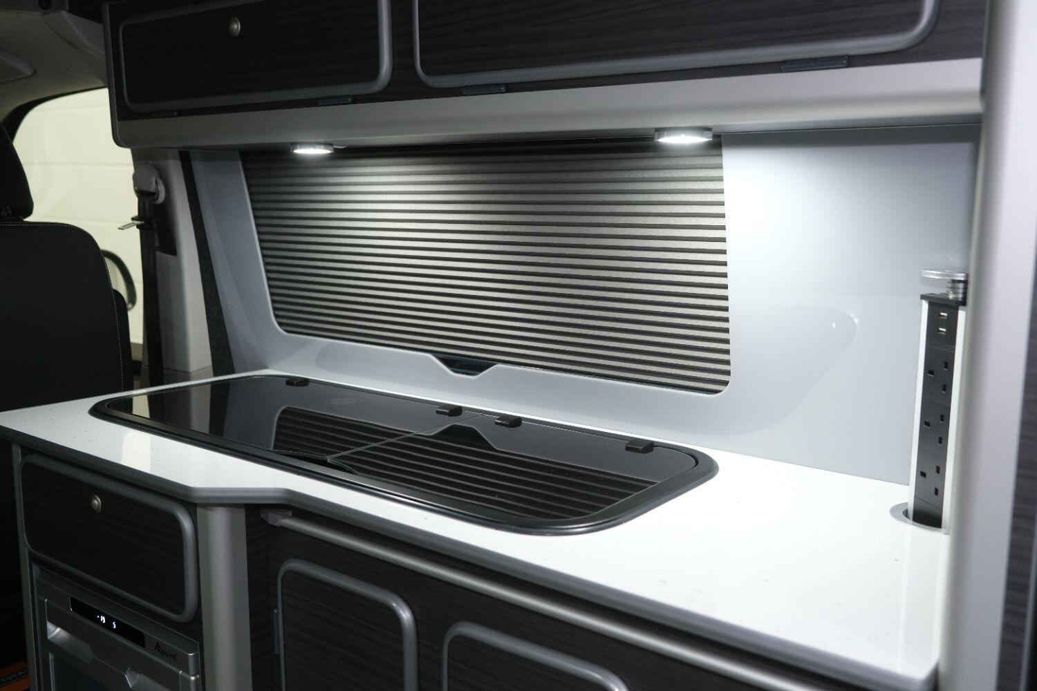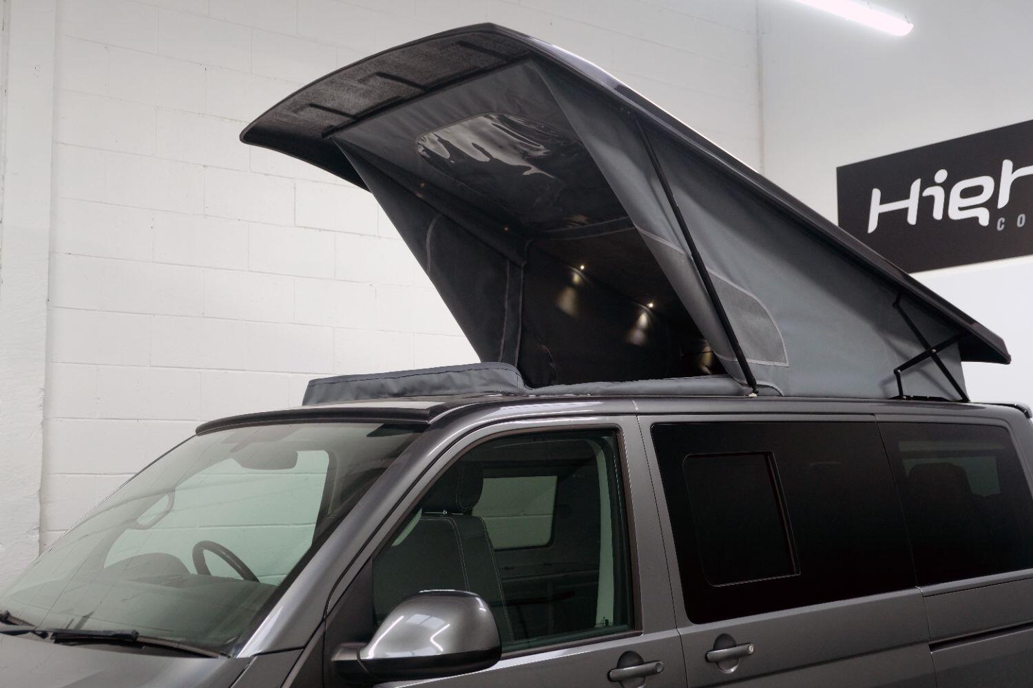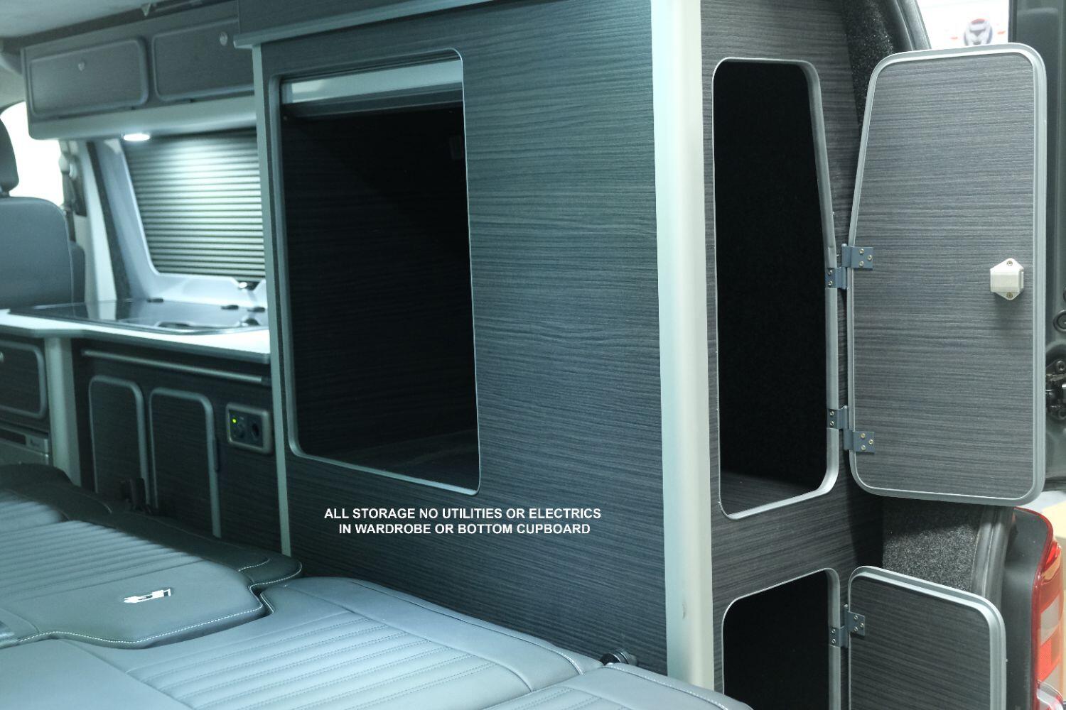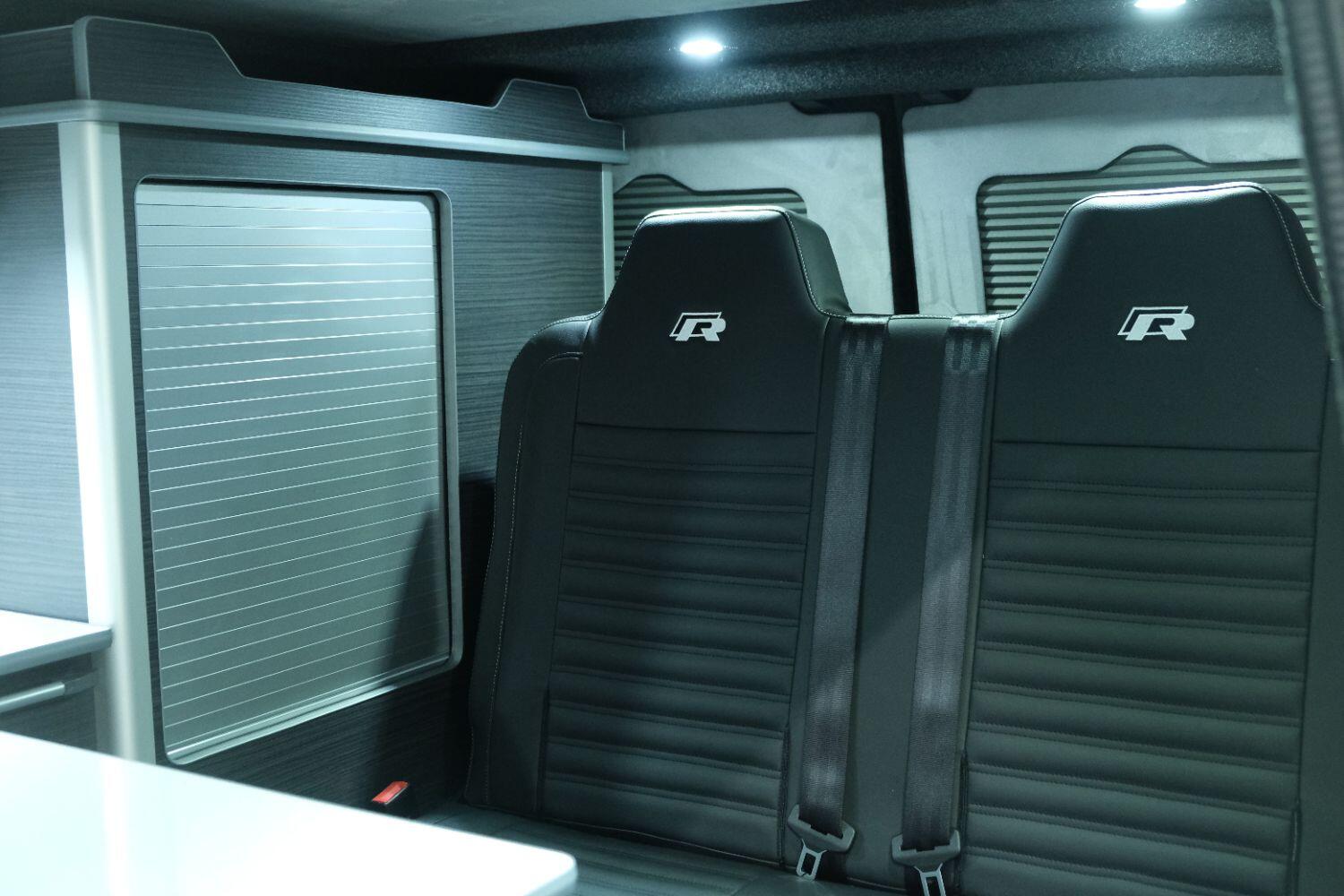 *** A SUPERB CONDITION LOW MILEAGE VW TRANSPORTER T6 R LINE DESIGN CAMPERVAN *** THIS IS A BRAND NEW CONVERSION CARRIED OUT BUY US ALL PARTS ARE NEW *** MASSIVE SPEC WHICH INCLUDES - ORIGINAL SPORTLINE BODY KIT - WOLFRACE 18INCH GLOSS BLACK MATRIX ALLOYS - H & R LOWERING SPRINGS 40 MM DROP FRONT & REAR - RENOGY SOLAR PANEL PLUS DC TO DC CHARGER - *** TOP QUALITY INTERIOR FINISH RE TRIMMED IN R LINE BLACK LEATHER - PASSENGER SEAT M1 TESTED SWIVEL BASE TO FACE REAR - VANSHADES BLACKOUT THERMAL BLIND SYSTEM THROUGHOUT- ALPICOOL 50L FRIDGE / FREEZER - THETFORD Dual Gas HOB SINK - AUSTOPS TUV TESTED POP TOP ROOF BED WITH PANORAMIC CANVAS - DRIVER AND PASSENGER SIDE REAR OPENING GLASS - RUSTY LEE M1 TUV TESTED ROCK N ROLL BED - 240V MAINS HOOK UP *** THE VAN HAS ALSO BEEN FULLY INSULATED INCLUDING ALL DOORS - SIDE PANELS AND DEAD MAT ARCHES *** BLUETOOTH PHONE CONNECTION - BLUETOOTH PHONE AND MUSIC STREAMING - REAR PARKING SENSORS - FACTORY AIR CON - LED DAYTIME RUNNING LIGHTS - CRUISE CONTROL - MULTI FUNCTION DASH - LEATHER STEERING WHEEL *** FULL SERVICE HISTORY ***JUST BEEN SERVICED WITH CAMBELT AND WATER PUMP CHANGE - COMES WITH NEW 1 YEARS MOT *** PART EXCHANGE WELCOME ***, 2 owners, Upgrades - 12v Power, ABS, Air Con, Air Conditioning, Alarm, Alloy Wheels, Battery Charger, Blinds, Blown Air Heating, Bluetooth, Central Locking, Cruise Control, Colour Coded Bumpers, Eberspacher Heating, Electric Mirrors, End Bedroom, External 240v, Fresh Water Tank, Fresh/Waste Water Tank, Fridge/Freezer, Gas Hob, Heated Mirrors, Immobiliser, Leather Upholstery, Mains electric, Power Steering, Reversing Sensors, Solar Panels, Swivel Passenger Seat, Wardrobe