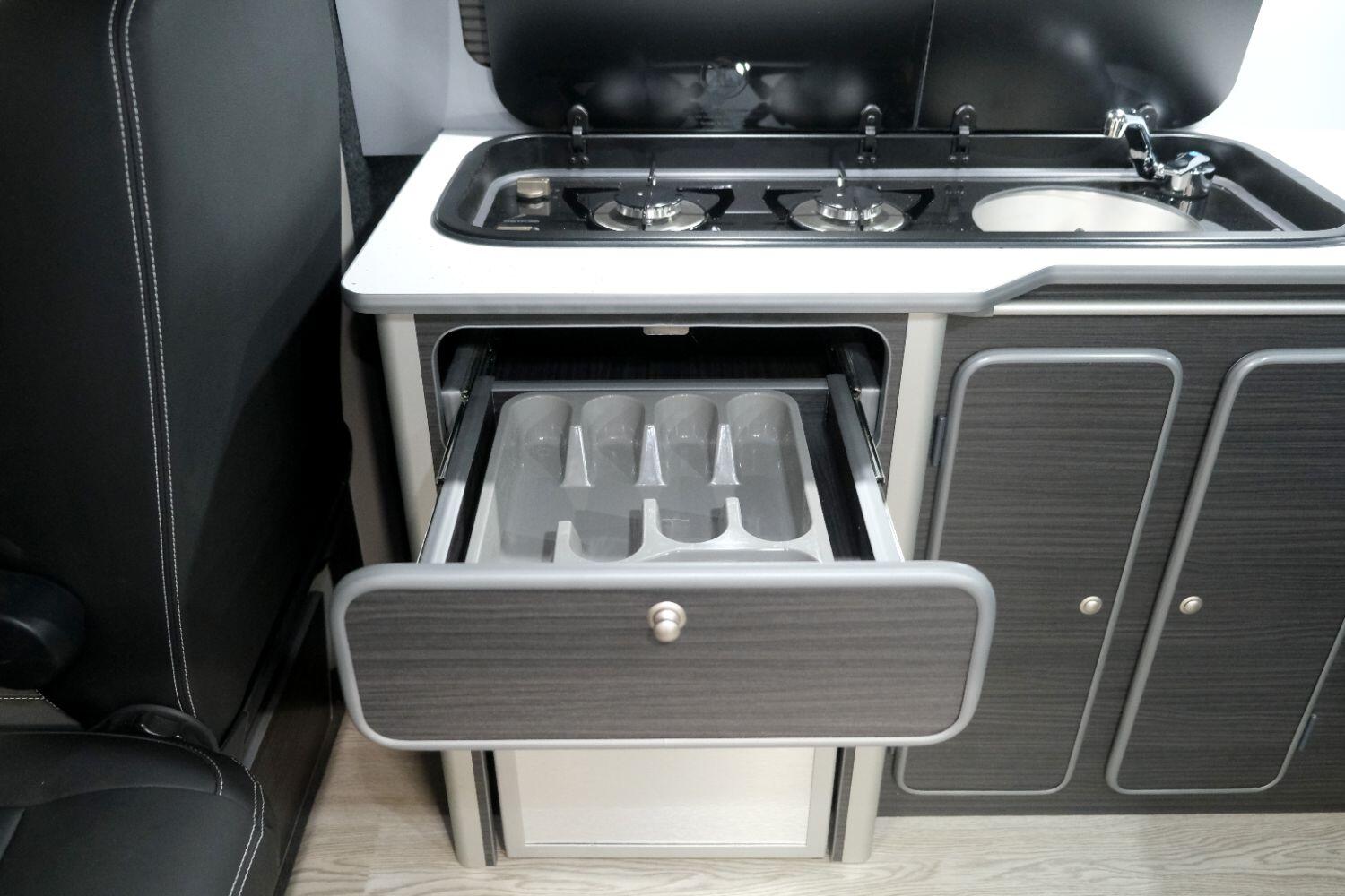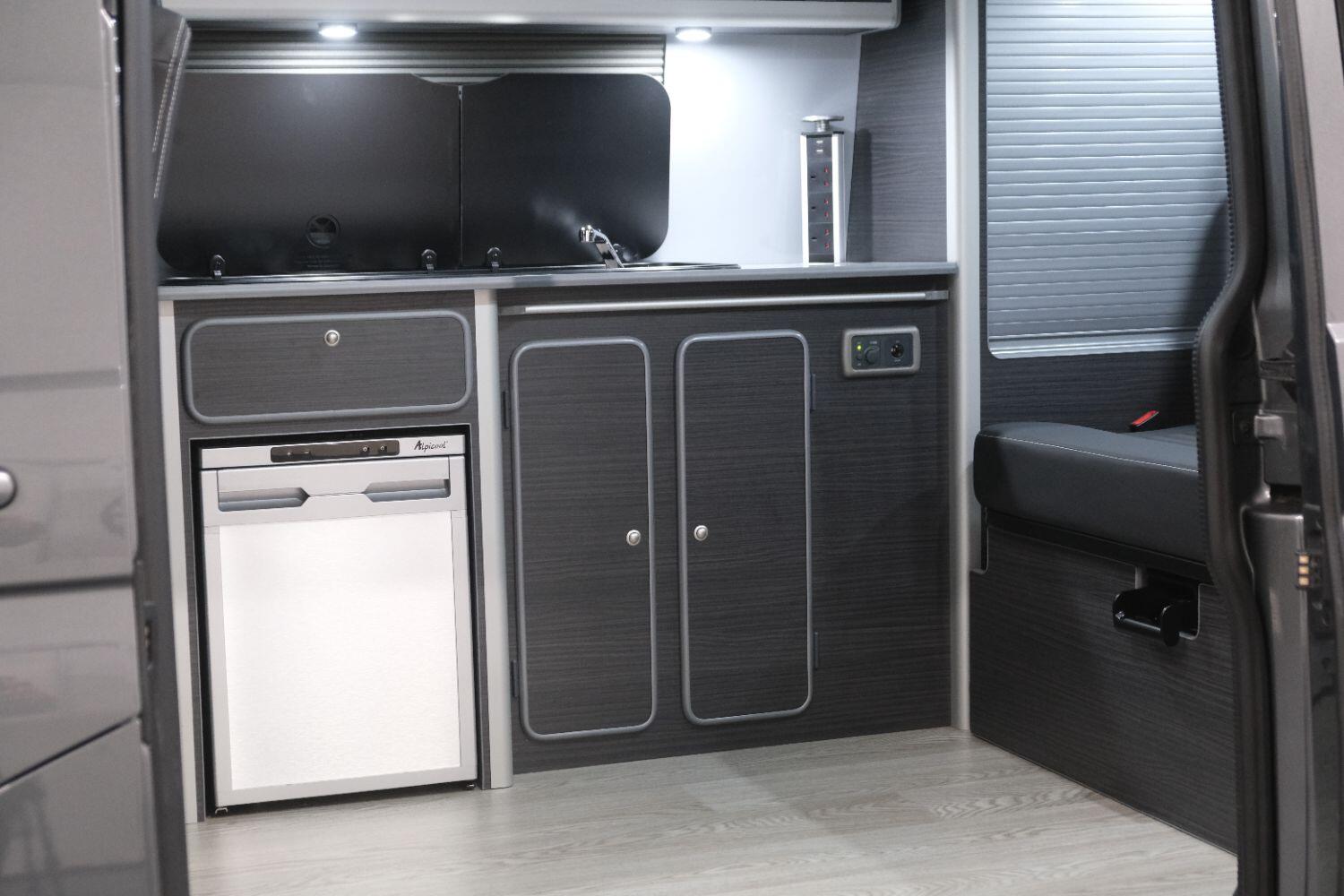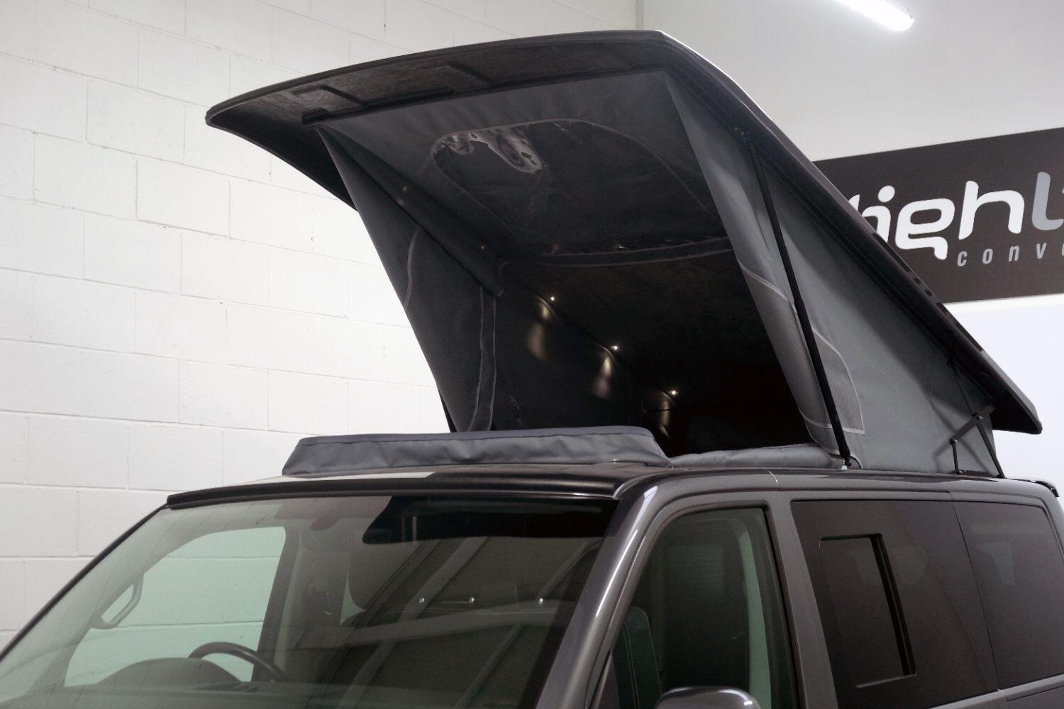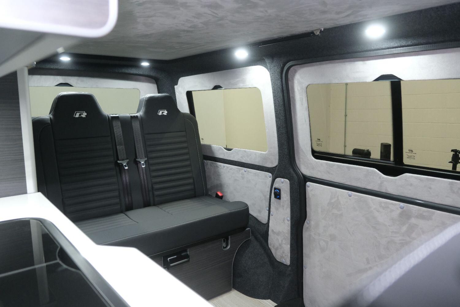 *** A SUPERB CONDITION LOW MILEAGE VW TRANSPORTER T6 R LINE DESIGN CAMPERVAN *** THIS IS A BRAND NEW CONVERSION CARRIED OUT BUY US ALL PARTS ARE NEW *** MASSIVE SPEC WHICH INCLUDES - ORIGINAL SPORTLINE BODY KIT - WOLFRACE 18INCH GLOSS BLACK MATRIX ALLOYS - H & R LOWERING SPRINGS 40 MM DROP FRONT & REAR - RENOGY SOLAR PANEL PLUS DC TO DC CHARGER - *** TOP QUALITY INTERIOR FINISH RE TRIMMED IN R LINE BLACK LEATHER - PASSENGER SEAT M1 TESTED SWIVEL BASE TO FACE REAR - VANSHADES BLACKOUT THERMAL BLIND SYSTEM THROUGHOUT- ALPICOOL 50L FRIDGE / FREEZER - THETFORD Dual Gas HOB SINK - AUSTOPS TUV TESTED POP TOP ROOF BED WITH PANORAMIC CANVAS - DRIVER AND PASSENGER SIDE REAR OPENING GLASS - RUSTY LEE M1 TUV TESTED ROCK N ROLL BED - 240V MAINS HOOK UP *** THE VAN HAS ALSO BEEN FULLY INSULATED INCLUDING ALL DOORS - SIDE PANELS AND DEAD MAT ARCHES *** BLUETOOTH PHONE CONNECTION - BLUETOOTH PHONE AND MUSIC STREAMING - REAR PARKING SENSORS - FACTORY AIR CON - LED DAYTIME RUNNING LIGHTS - CRUISE CONTROL - MULTI FUNCTION DASH - LEATHER STEERING WHEEL *** FULL SERVICE HISTORY ***JUST BEEN SERVICED WITH CAMBELT AND WATER PUMP CHANGE - COMES WITH NEW 1 YEARS MOT *** PART EXCHANGE WELCOME ***, 2 owners, Upgrades - 12v Power, ABS, Air Con, Air Conditioning, Alarm, Alloy Wheels, Battery Charger, Blinds, Blown Air Heating, Bluetooth, Central Locking, Cruise Control, Colour Coded Bumpers, Eberspacher Heating, Electric Mirrors, End Bedroom, External 240v, Fresh Water Tank, Fresh/Waste Water Tank, Fridge/Freezer, Gas Hob, Heated Mirrors, Immobiliser, Leather Upholstery, Mains electric, Power Steering, Reversing Sensors, Solar Panels, Swivel Passenger Seat, Wardrobe