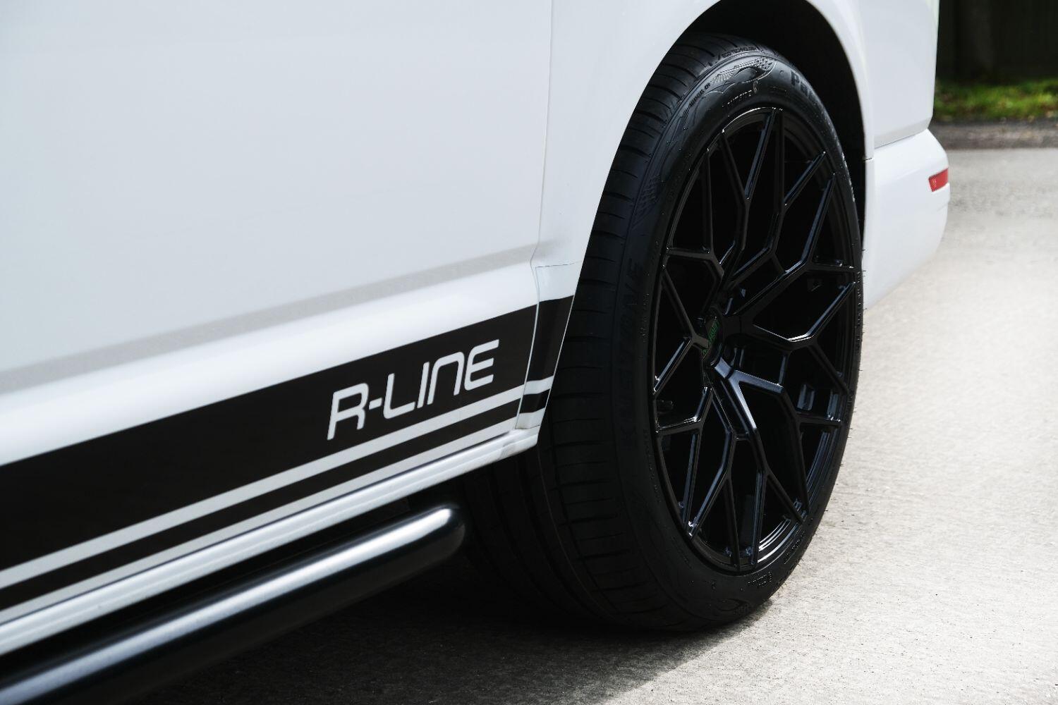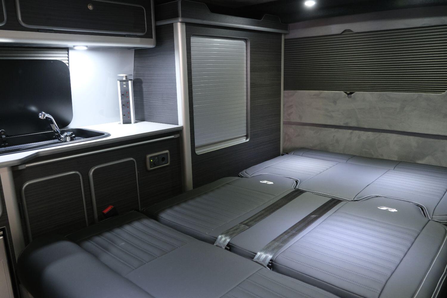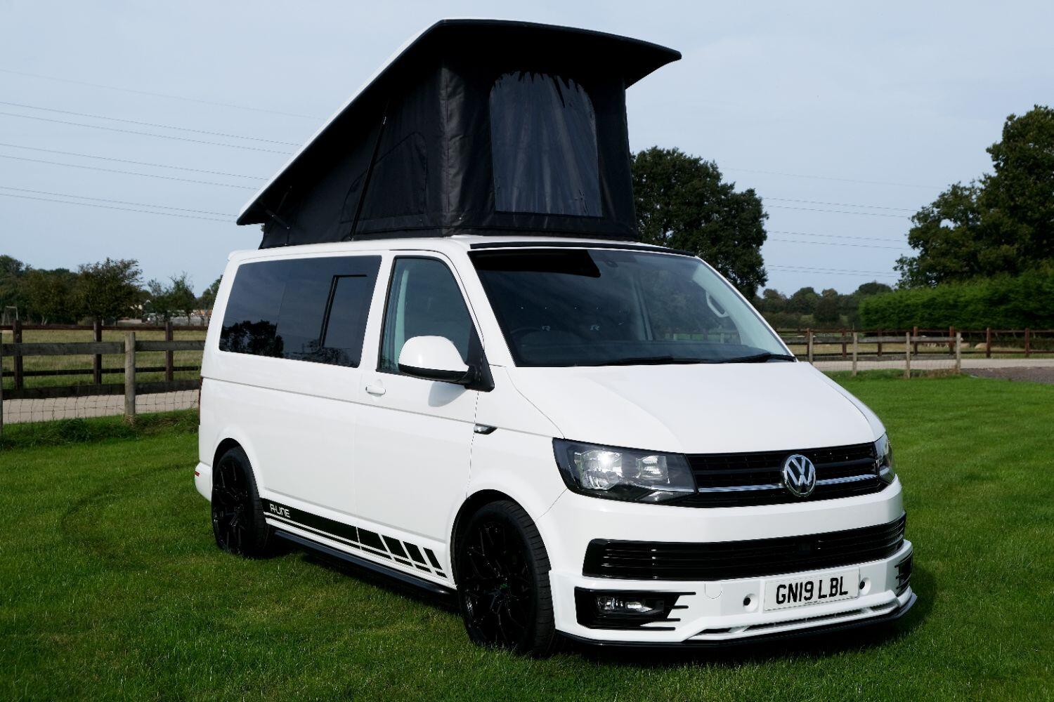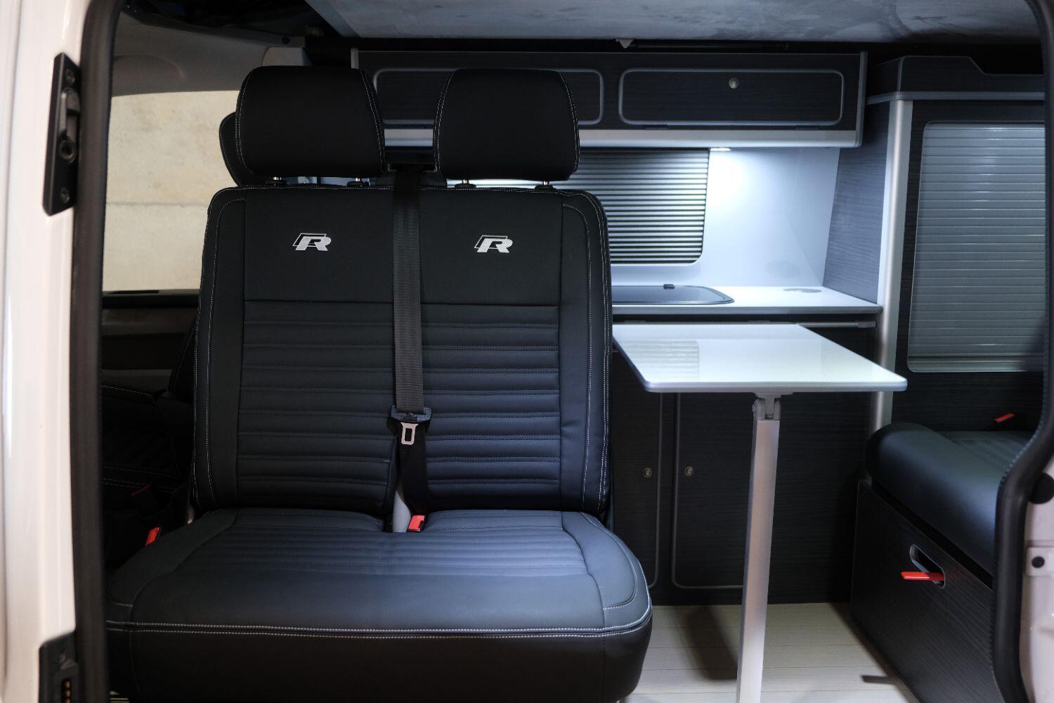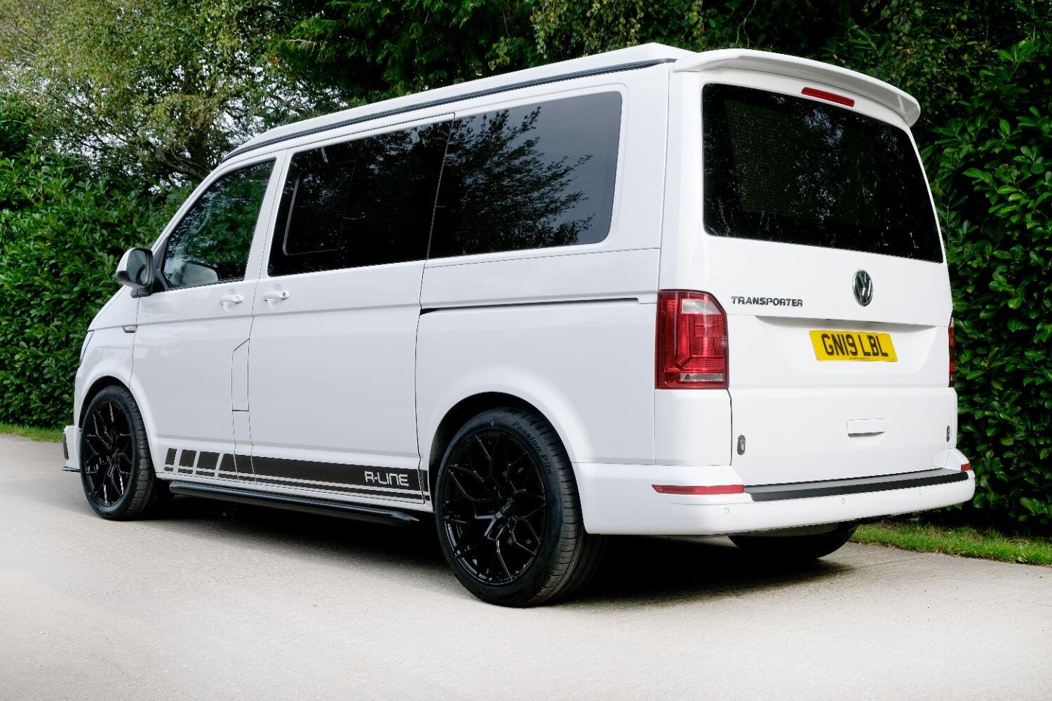 ** A SUPERB CONDITION VW TRANSPORTER R -LINE DSG CAMPER VAN CONVERSION *** THIS IS A BRAND NEW CONVERSION CARRIED OUT BUY US ALL PARTS ARE NEW *** MASSIVE SPEC WHICH INCLUDES - GENUINE SPORTLINE BUMPER - LOWER SPLITTER & REAR SPOILER - LEIGHTON LV-2 20 INCH ALLOYS - H&R SPRINGS 40MM DROP FRONT & REAR - RENOGY SOLAR PANEL PLUS DC TO DC CHARGER - VW DISCOVERY MEDIA SYSTEM - SATELITTE NAVIGATION -BLUETOOTH PHONE CONNECTION - BLUETOOTH PHONE AND MUSIC STREAMING - REAR PARKING SENSORS - FACTORY AIR CON - LED DAYTIME RUNNING LIGHTS - CRUISE CONTROL - MULTI FUNCTION DASH - LEATHER STEERING WHEEL*** TOP QUALITY INTERIOR FINISH RE TRIMMED IN R LINE BLACK LEATHER - PASSENGER SEAT M1 TESTED SWIVEL BASE TO FACE REAR - VANSHADES BLACKOUT THERMAL BLIND SYSTEM THROUGHOUT- CG 50L FRIDGE / FREEZER - THETFORD Dual Gas HOB SINK - AUSTOPS TUV TESTED POP TOP ROOF BED WITH PANORAMIC CANVAS - DRIVER AND PASSENGER SIDE REAR OPENING GLASS - RUSTY LEE M1 & TUV TESTED ROCK N ROLL BED - 240V MAINS HOOK UP *** THE VAN HAS ALSO BEEN FULLY INSULATED INCLUDING ALL DOORS - SIDE PANELS AND DEAD MAT ARCHES *** EXCELLENT SERVICE HISTORY JUST BEEN SERVICED WITH CAMBELT AND WATER PUMP CHANGE - COMES WITH 1 YEARS MOT*** SWB ***, Upgrades - 12v Power, ABS, Air Con, Air Conditioning, Alloy Wheels, Battery Charger, Blinds, Bluetooth, CD / Radio, Central Locking, Colour Coded Bumpers, Cruise Control, Electric Mirrors, Electric Windows, External 240v, Free Standing Table, Fridge/Freezer, Gas Hob, Heated Mirrors, Internal Window Blinds, Leather Upholstery, Leisure Battery, Mains electric, Power Steering, Rear Seat belts, Satellite Navigation, Second Battery, Solar Panels, Spare wheel, Swivel Chairs, Swivel Passenger Seat