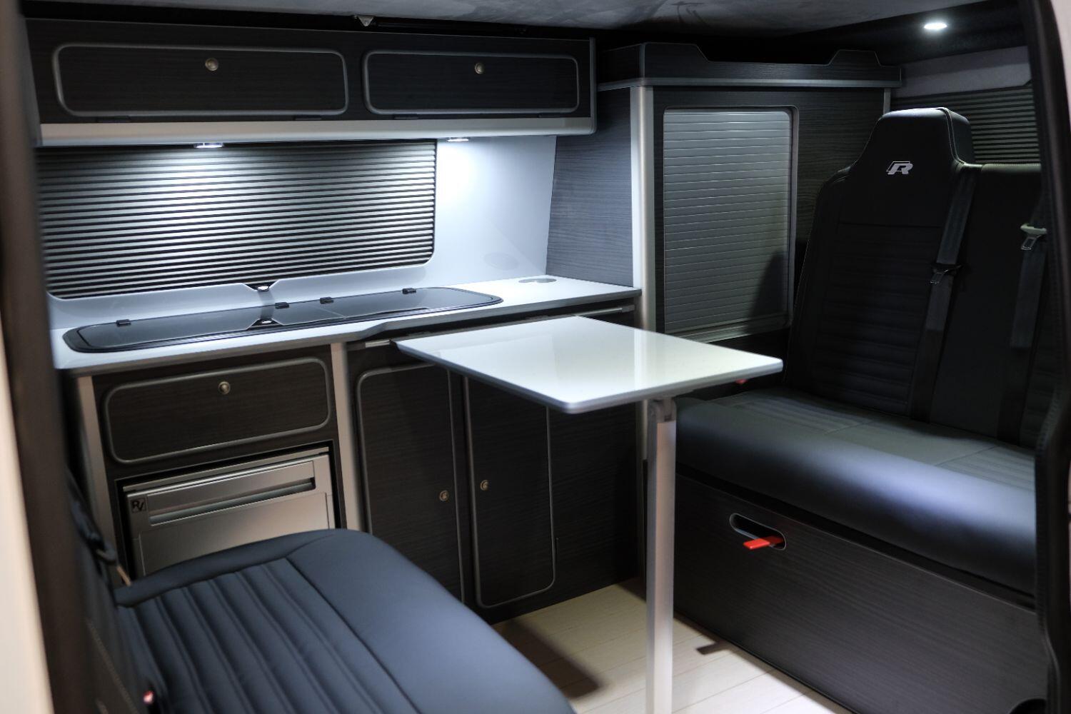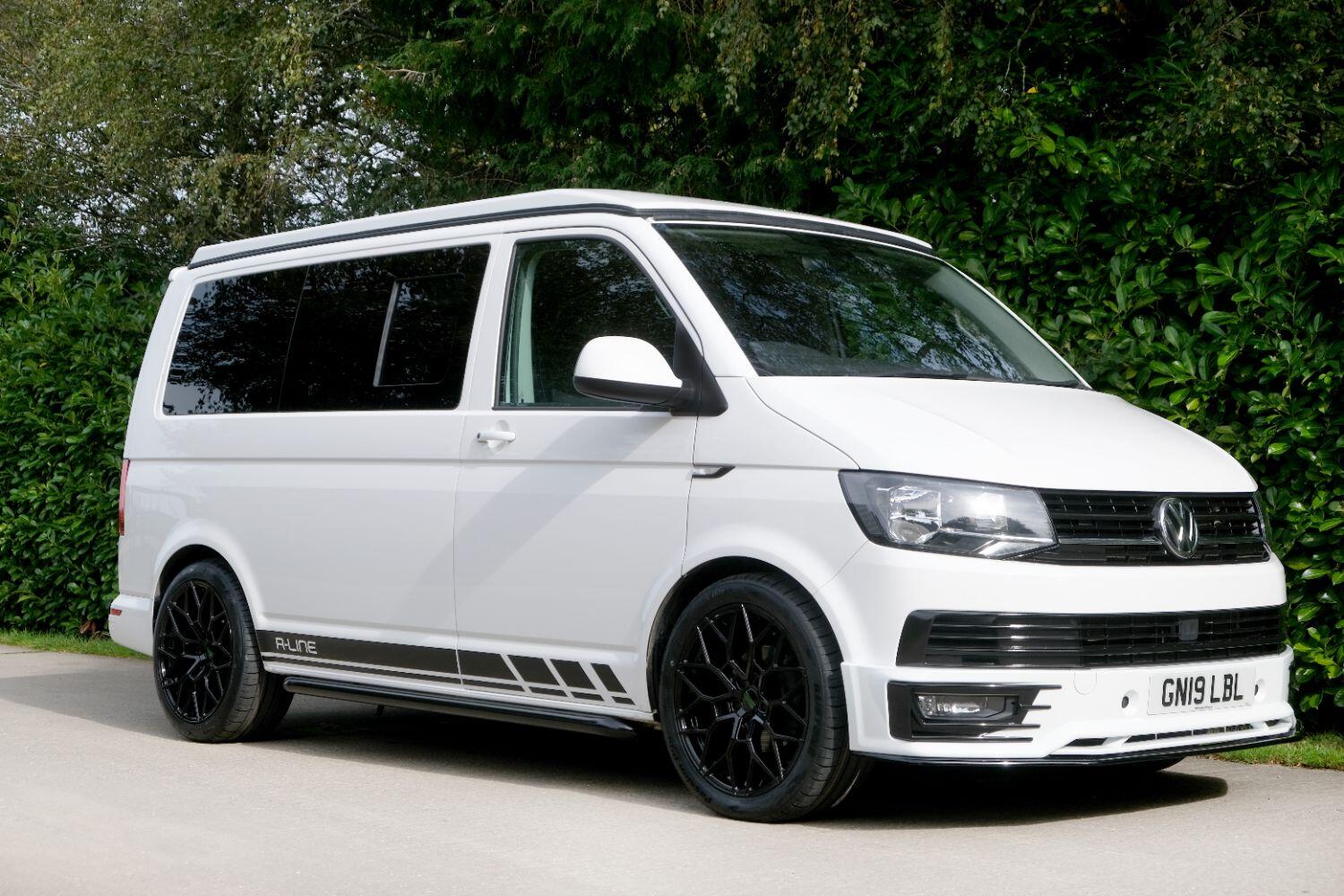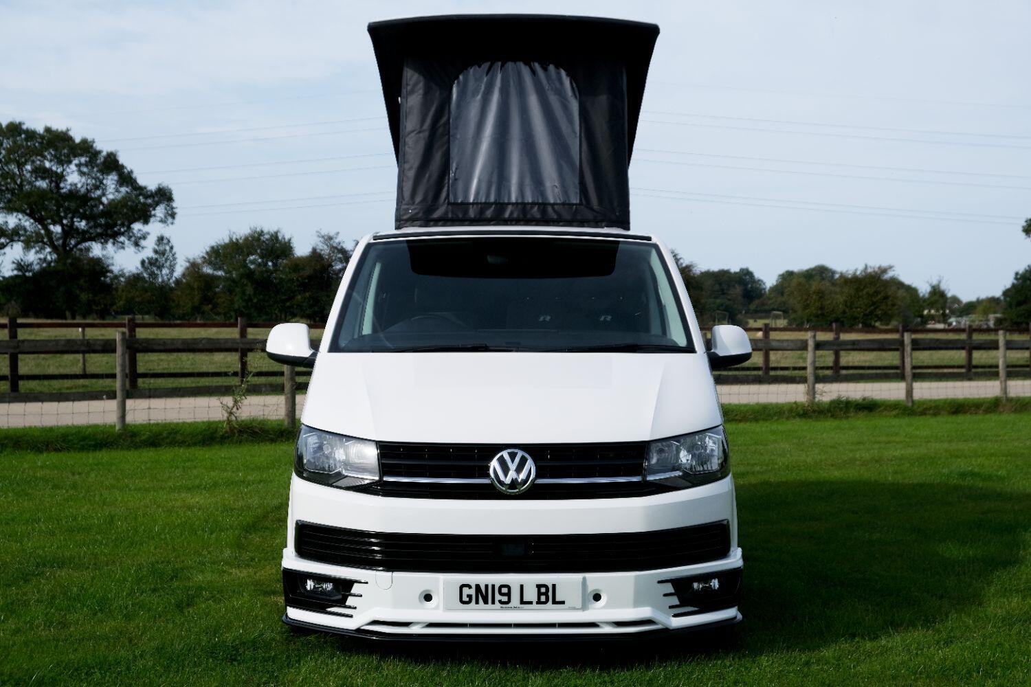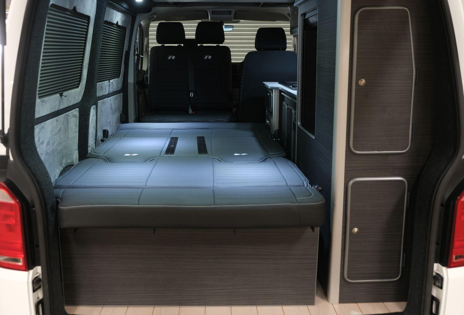** A SUPERB CONDITION VW TRANSPORTER R -LINE DSG CAMPER VAN CONVERSION *** THIS IS A BRAND NEW CONVERSION CARRIED OUT BUY US ALL PARTS ARE NEW *** MASSIVE SPEC WHICH INCLUDES - GENUINE SPORTLINE BUMPER - LOWER SPLITTER & REAR SPOILER - LEIGHTON LV-2 20 INCH ALLOYS - H&R SPRINGS 40MM DROP FRONT & REAR - RENOGY SOLAR PANEL PLUS DC TO DC CHARGER - VW DISCOVERY MEDIA SYSTEM - SATELITTE NAVIGATION -BLUETOOTH PHONE CONNECTION - BLUETOOTH PHONE AND MUSIC STREAMING - REAR PARKING SENSORS - FACTORY AIR CON - LED DAYTIME RUNNING LIGHTS - CRUISE CONTROL - MULTI FUNCTION DASH - LEATHER STEERING WHEEL*** TOP QUALITY INTERIOR FINISH RE TRIMMED IN R LINE BLACK LEATHER - PASSENGER SEAT M1 TESTED SWIVEL BASE TO FACE REAR - VANSHADES BLACKOUT THERMAL BLIND SYSTEM THROUGHOUT- CG 50L FRIDGE / FREEZER - THETFORD Dual Gas HOB SINK - AUSTOPS TUV TESTED POP TOP ROOF BED WITH PANORAMIC CANVAS - DRIVER AND PASSENGER SIDE REAR OPENING GLASS - RUSTY LEE M1 & TUV TESTED ROCK N ROLL BED - 240V MAINS HOOK UP *** THE VAN HAS ALSO BEEN FULLY INSULATED INCLUDING ALL DOORS - SIDE PANELS AND DEAD MAT ARCHES *** EXCELLENT SERVICE HISTORY JUST BEEN SERVICED WITH CAMBELT AND WATER PUMP CHANGE - COMES WITH 1 YEARS MOT*** SWB ***, Upgrades - 12v Power, ABS, Air Con, Air Conditioning, Alloy Wheels, Battery Charger, Blinds, Bluetooth, CD / Radio, Central Locking, Colour Coded Bumpers, Cruise Control, Electric Mirrors, Electric Windows, External 240v, Free Standing Table, Fridge/Freezer, Gas Hob, Heated Mirrors, Internal Window Blinds, Leather Upholstery, Leisure Battery, Mains electric, Power Steering, Rear Seat belts, Satellite Navigation, Second Battery, Solar Panels, Spare wheel, Swivel Chairs, Swivel Passenger Seat