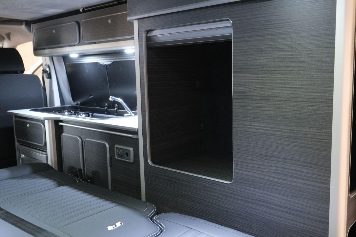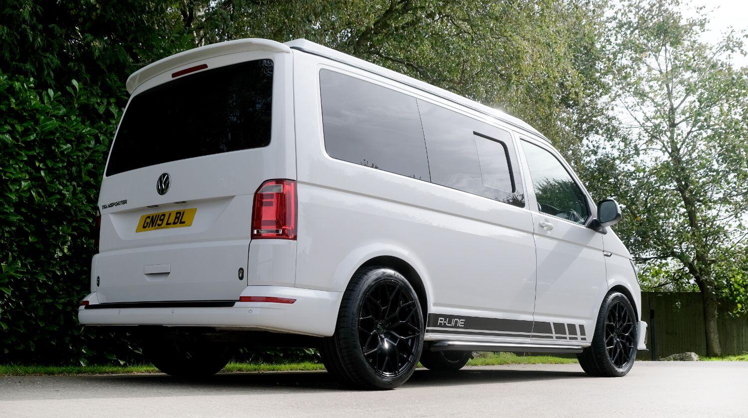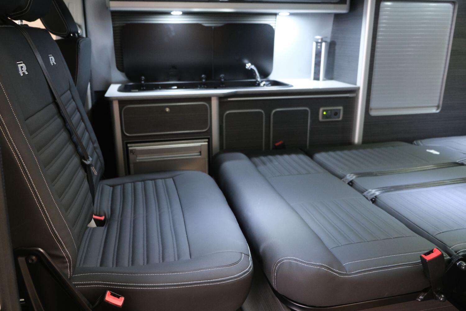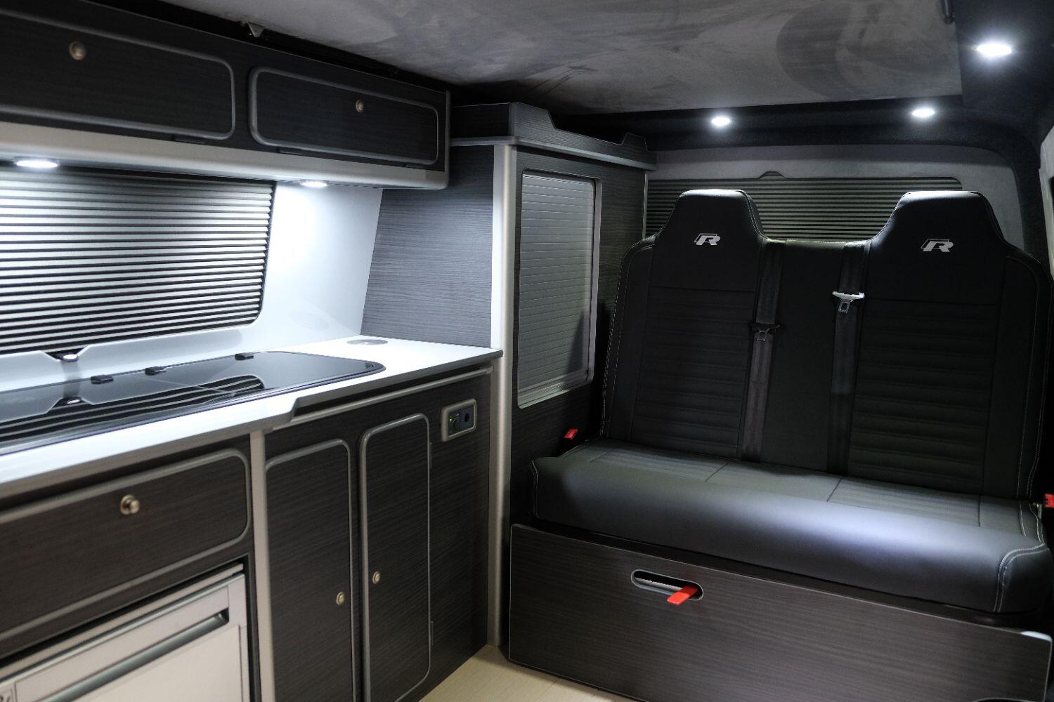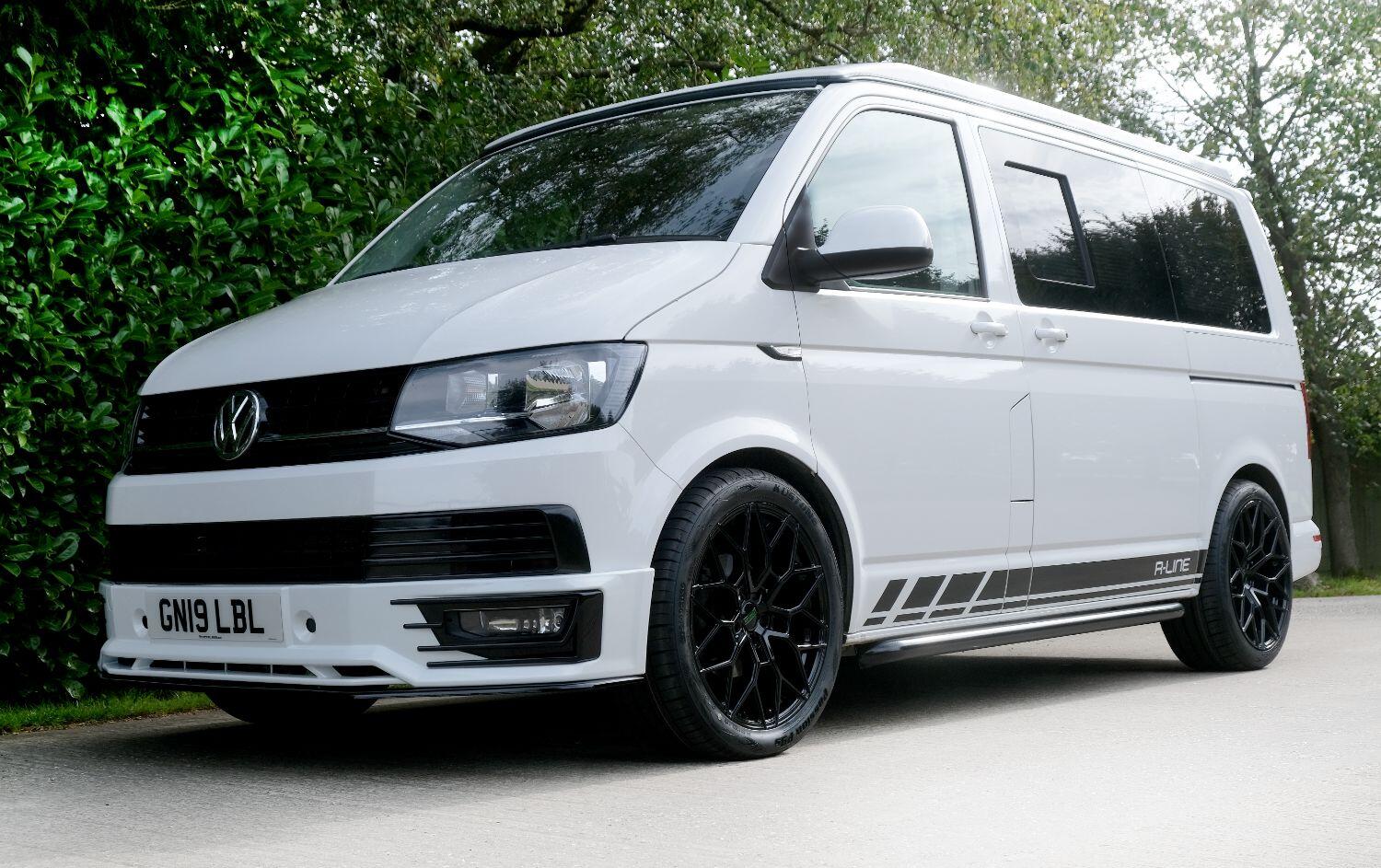 ** A SUPERB CONDITION VW TRANSPORTER R -LINE DSG CAMPER VAN CONVERSION *** THIS IS A BRAND NEW CONVERSION CARRIED OUT BUY US ALL PARTS ARE NEW *** MASSIVE SPEC WHICH INCLUDES - GENUINE SPORTLINE BUMPER - LOWER SPLITTER & REAR SPOILER - LEIGHTON LV-2 20 INCH ALLOYS - H&R SPRINGS 40MM DROP FRONT & REAR - RENOGY SOLAR PANEL PLUS DC TO DC CHARGER - VW DISCOVERY MEDIA SYSTEM - SATELITTE NAVIGATION -BLUETOOTH PHONE CONNECTION - BLUETOOTH PHONE AND MUSIC STREAMING - REAR PARKING SENSORS - FACTORY AIR CON - LED DAYTIME RUNNING LIGHTS - CRUISE CONTROL - MULTI FUNCTION DASH - LEATHER STEERING WHEEL*** TOP QUALITY INTERIOR FINISH RE TRIMMED IN R LINE BLACK LEATHER - PASSENGER SEAT M1 TESTED SWIVEL BASE TO FACE REAR - VANSHADES BLACKOUT THERMAL BLIND SYSTEM THROUGHOUT- CG 50L FRIDGE / FREEZER - THETFORD Dual Gas HOB SINK - AUSTOPS TUV TESTED POP TOP ROOF BED WITH PANORAMIC CANVAS - DRIVER AND PASSENGER SIDE REAR OPENING GLASS - RUSTY LEE M1 & TUV TESTED ROCK N ROLL BED - 240V MAINS HOOK UP *** THE VAN HAS ALSO BEEN FULLY INSULATED INCLUDING ALL DOORS - SIDE PANELS AND DEAD MAT ARCHES *** EXCELLENT SERVICE HISTORY JUST BEEN SERVICED WITH CAMBELT AND WATER PUMP CHANGE - COMES WITH 1 YEARS MOT*** SWB ***, Upgrades - 12v Power, ABS, Air Con, Air Conditioning, Alloy Wheels, Battery Charger, Blinds, Bluetooth, CD / Radio, Central Locking, Colour Coded Bumpers, Cruise Control, Electric Mirrors, Electric Windows, External 240v, Free Standing Table, Fridge/Freezer, Gas Hob, Heated Mirrors, Internal Window Blinds, Leather Upholstery, Leisure Battery, Mains electric, Power Steering, Rear Seat belts, Satellite Navigation, Second Battery, Solar Panels, Spare wheel, Swivel Chairs, Swivel Passenger Seat