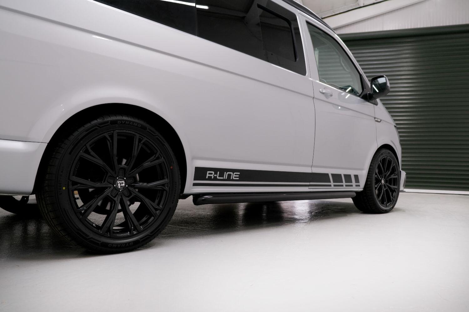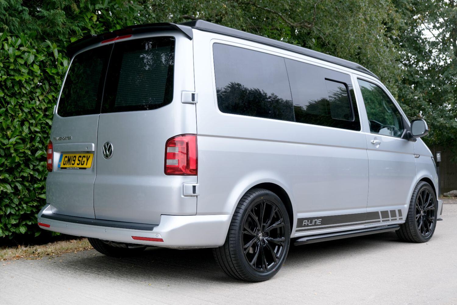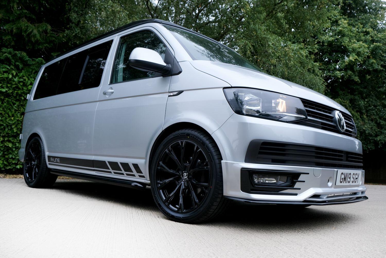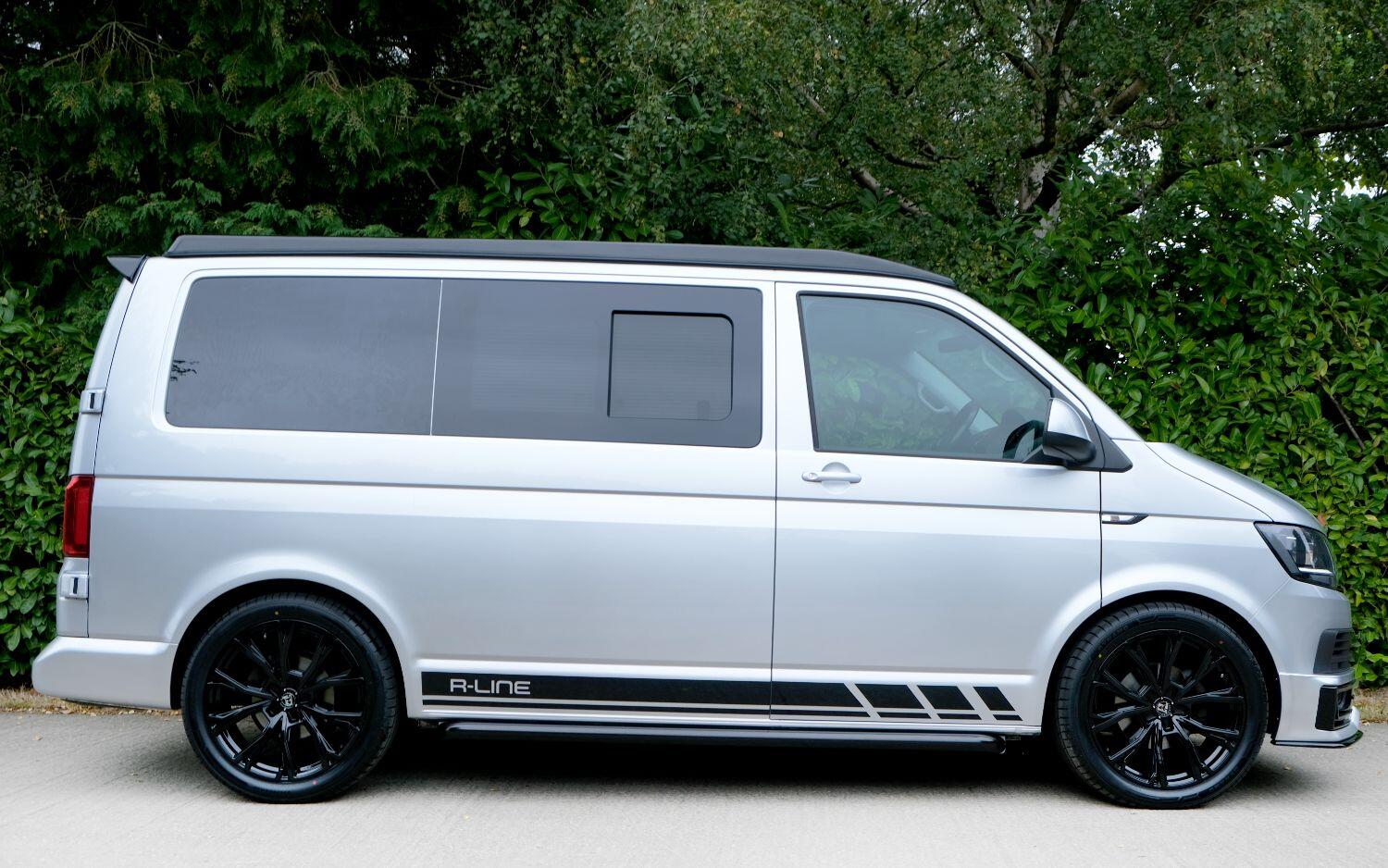 *** A SUPERB CONDITION VW TRANSPORTER R LINE DESIGN CAMPERVAN *** THIS IS A BRAND NEW CONVERSION CARRIED OUT BUY US ALL PARTS ARE NEW *** MASSIVE SPEC WHICH INCLUDES - WOLFRACE 20 INCH GLOSS BLACK MATRIX ALLOYS - EIBACH LOWERING SPRINGS 45MM DROP FRONT & REAR - ECO WORTHY 130 WATT SOLAR PANEL PLUS DC TO DC CHARGER - PLANAR AUTOTERM NIGHT DIESEL HEATER *** TOP QUALITY INTERIOR FINISH RE TRIMMED IN R LINE BLACKLEATHER - PASSENGER SEAT M1 TESTED SWIVEL BASE TO FACE REAR - VANSHADES BLACKOUT THERMAL BLIND SYSTEM THROUGHOUT- ALPICOOL 50L FRIDGE / FREEZER - THETFORD Dual Gas HOB SINK - AUSTOPS TUV TESTED POP TOP ROOF BED WITH PANORAMIC CANVAS - DRIVER AND PASSENGER SIDE REAR OPENING GLASS - RUSTY LEE M1 TUV TESTED ROCK N ROLL BED - 240V MAINS HOOK UP *** THE VAN HAS ALSO BEEN FULLY INSULATED INCLUDING ALL DOORS - SIDE PANELS AND DEAD MAT ARCHES *** BLUETOOTH PHONE CONNECTION - BLUETOOTH PHONE AND MUSIC STREAMING - REAR PARKING SENSORS - FACTORY AIR CON - LED DAYTIME RUNNING LIGHTS - CRUISE CONTROL - MULTI FUNCTION DASH - LEATHER STEERING WHEEL- HEATED FRONT WINDSCREEN *** FULL SERVICE HISTORY - WILL COME WITH 1 YEARS MOT ***LOW FINANCE OPTIONS AVAILABLE - PART EXCHANGE WELCOME