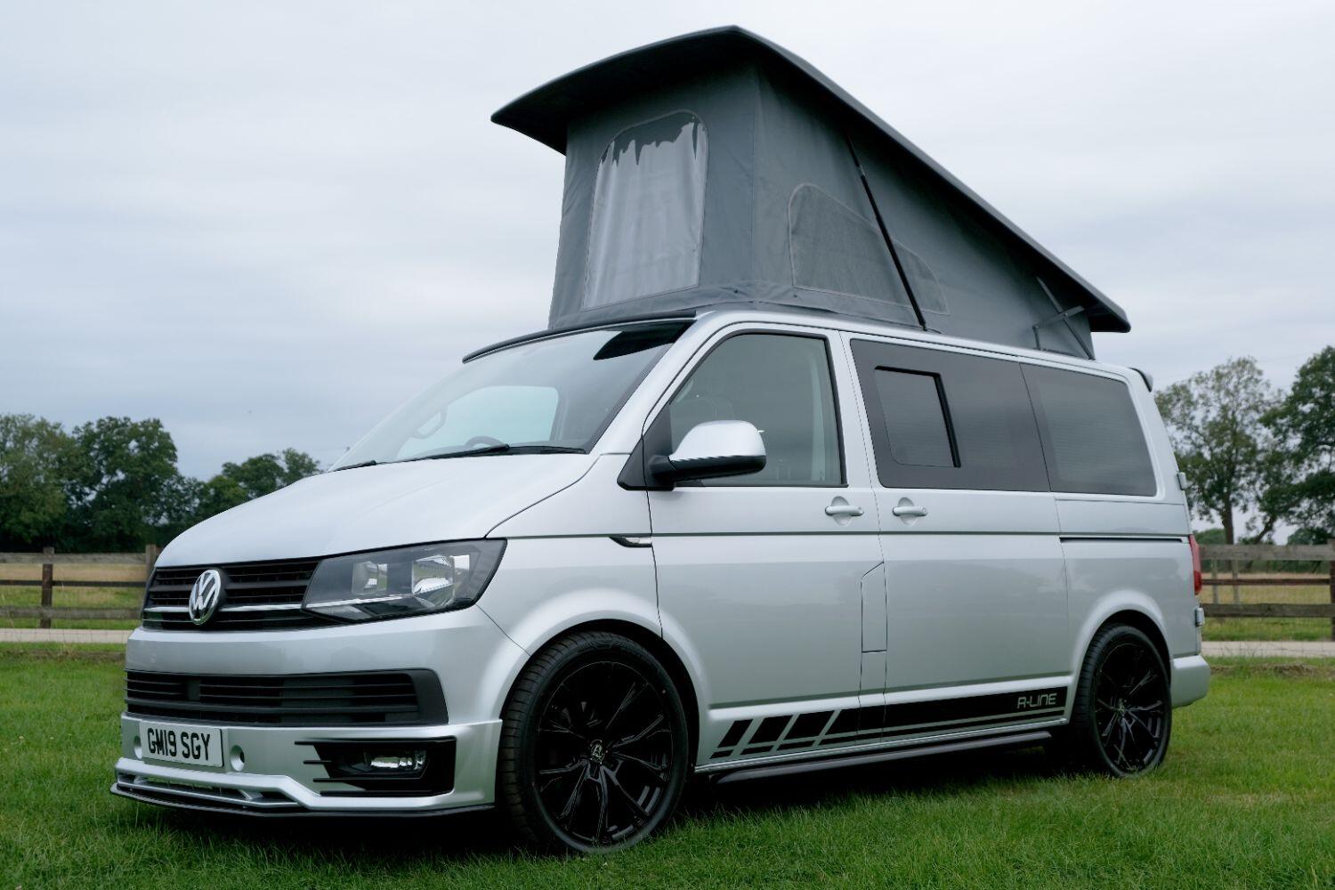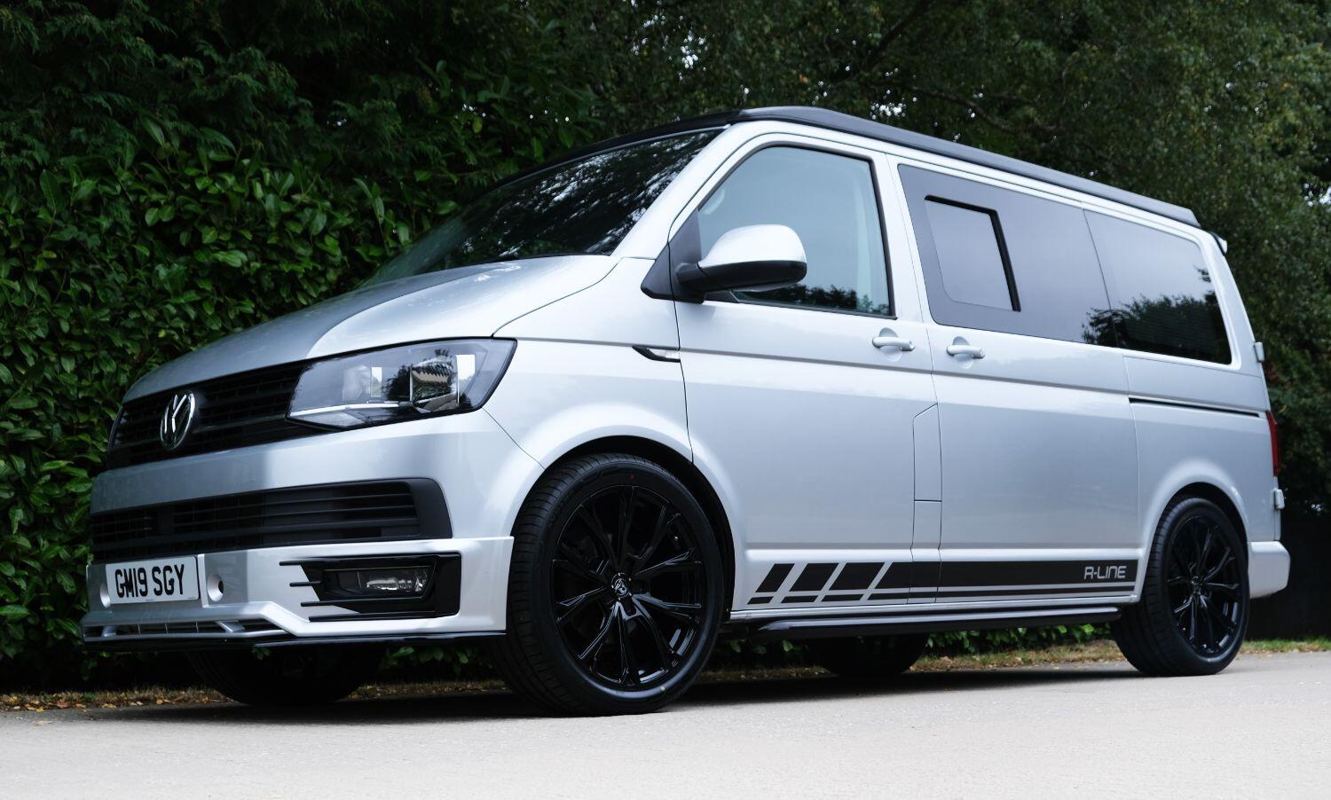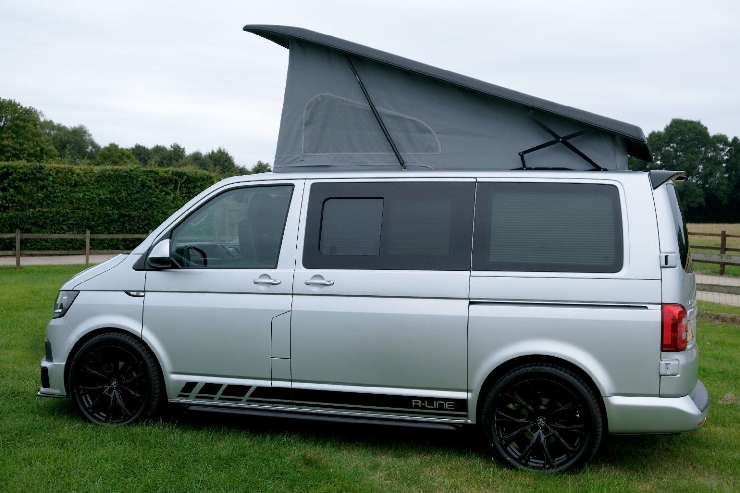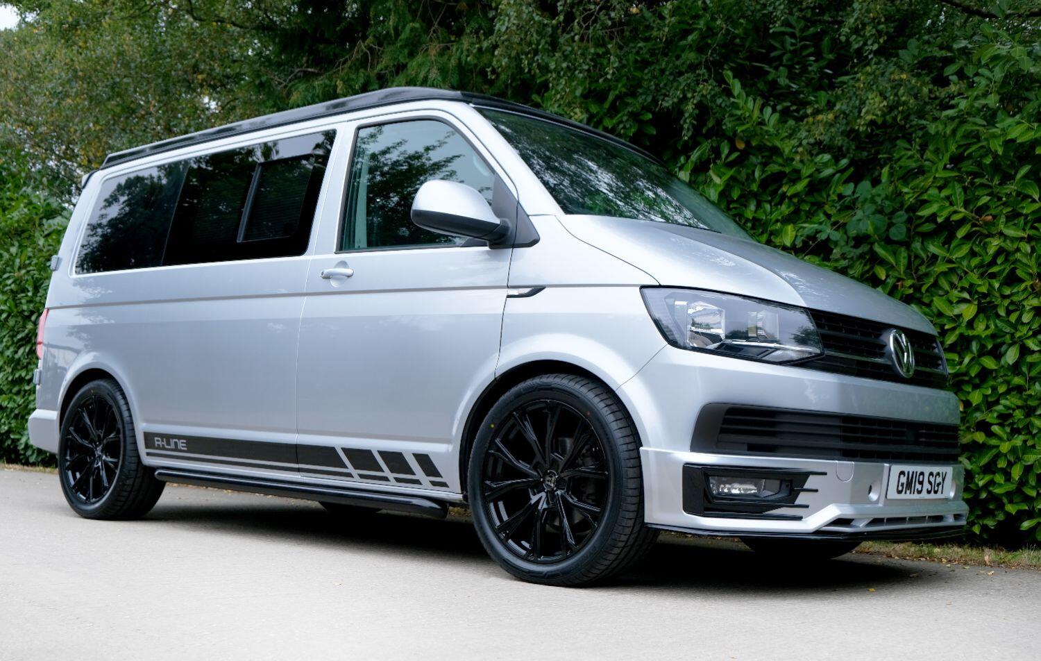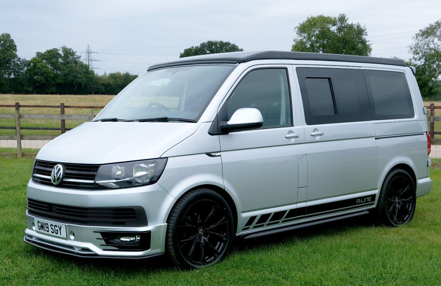*** A SUPERB CONDITION VW TRANSPORTER R LINE DESIGN CAMPERVAN *** THIS IS A BRAND NEW CONVERSION CARRIED OUT BUY US ALL PARTS ARE NEW *** MASSIVE SPEC WHICH INCLUDES - WOLFRACE 20 INCH GLOSS BLACK MATRIX ALLOYS - EIBACH LOWERING SPRINGS 45MM DROP FRONT & REAR - ECO WORTHY 130 WATT SOLAR PANEL PLUS DC TO DC CHARGER - PLANAR AUTOTERM NIGHT DIESEL HEATER *** TOP QUALITY INTERIOR FINISH RE TRIMMED IN R LINE BLACKLEATHER - PASSENGER SEAT M1 TESTED SWIVEL BASE TO FACE REAR - VANSHADES BLACKOUT THERMAL BLIND SYSTEM THROUGHOUT- ALPICOOL 50L FRIDGE / FREEZER - THETFORD Dual Gas HOB SINK - AUSTOPS TUV TESTED POP TOP ROOF BED WITH PANORAMIC CANVAS - DRIVER AND PASSENGER SIDE REAR OPENING GLASS - RUSTY LEE M1 TUV TESTED ROCK N ROLL BED - 240V MAINS HOOK UP *** THE VAN HAS ALSO BEEN FULLY INSULATED INCLUDING ALL DOORS - SIDE PANELS AND DEAD MAT ARCHES *** BLUETOOTH PHONE CONNECTION - BLUETOOTH PHONE AND MUSIC STREAMING - REAR PARKING SENSORS - FACTORY AIR CON - LED DAYTIME RUNNING LIGHTS - CRUISE CONTROL - MULTI FUNCTION DASH - LEATHER STEERING WHEEL- HEATED FRONT WINDSCREEN *** FULL SERVICE HISTORY - WILL COME WITH 1 YEARS MOT ***LOW FINANCE OPTIONS AVAILABLE - PART EXCHANGE WELCOME