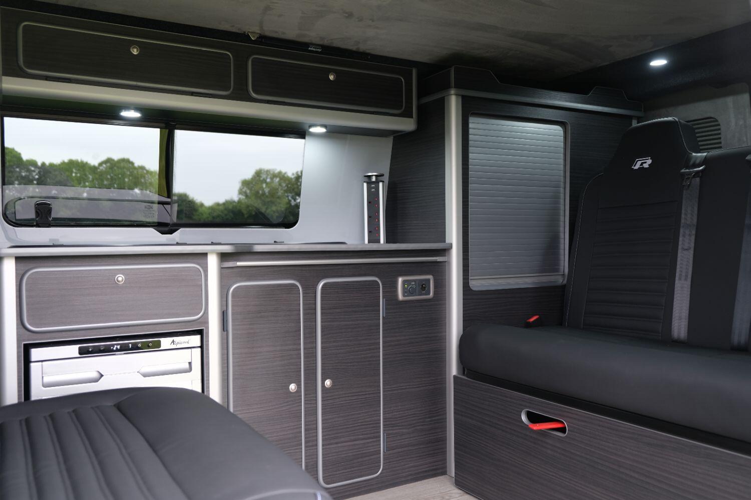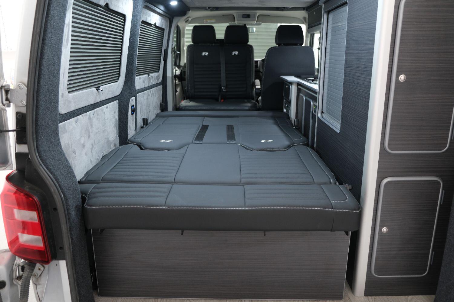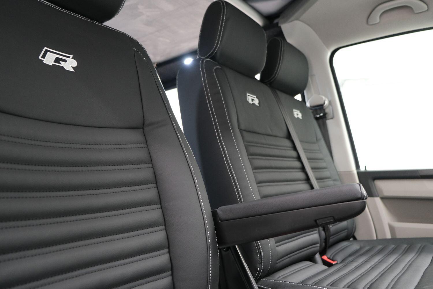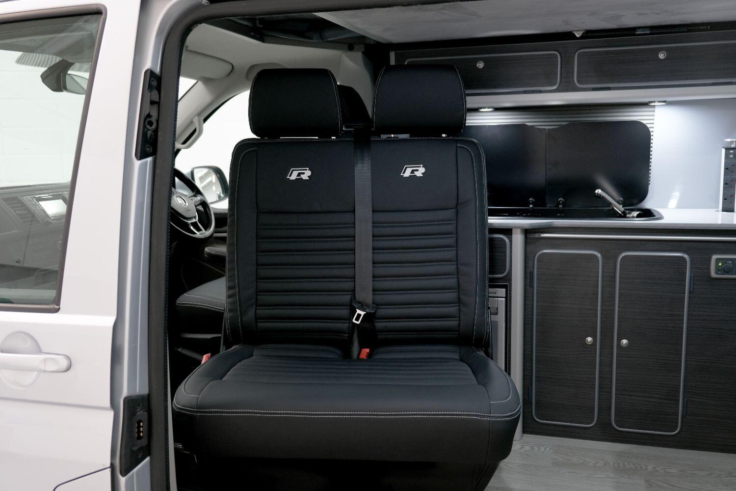 *** A SUPERB CONDITION VW TRANSPORTER R LINE DESIGN CAMPERVAN *** THIS IS A BRAND NEW CONVERSION CARRIED OUT BUY US ALL PARTS ARE NEW *** MASSIVE SPEC WHICH INCLUDES - WOLFRACE 20 INCH GLOSS BLACK MATRIX ALLOYS - EIBACH LOWERING SPRINGS 45MM DROP FRONT & REAR - ECO WORTHY 130 WATT SOLAR PANEL PLUS DC TO DC CHARGER - PLANAR AUTOTERM NIGHT DIESEL HEATER *** TOP QUALITY INTERIOR FINISH RE TRIMMED IN R LINE BLACKLEATHER - PASSENGER SEAT M1 TESTED SWIVEL BASE TO FACE REAR - VANSHADES BLACKOUT THERMAL BLIND SYSTEM THROUGHOUT- ALPICOOL 50L FRIDGE / FREEZER - THETFORD Dual Gas HOB SINK - AUSTOPS TUV TESTED POP TOP ROOF BED WITH PANORAMIC CANVAS - DRIVER AND PASSENGER SIDE REAR OPENING GLASS - RUSTY LEE M1 TUV TESTED ROCK N ROLL BED - 240V MAINS HOOK UP *** THE VAN HAS ALSO BEEN FULLY INSULATED INCLUDING ALL DOORS - SIDE PANELS AND DEAD MAT ARCHES *** BLUETOOTH PHONE CONNECTION - BLUETOOTH PHONE AND MUSIC STREAMING - REAR PARKING SENSORS - FACTORY AIR CON - LED DAYTIME RUNNING LIGHTS - CRUISE CONTROL - MULTI FUNCTION DASH - LEATHER STEERING WHEEL- HEATED FRONT WINDSCREEN *** FULL SERVICE HISTORY - WILL COME WITH 1 YEARS MOT ***LOW FINANCE OPTIONS AVAILABLE - PART EXCHANGE WELCOME