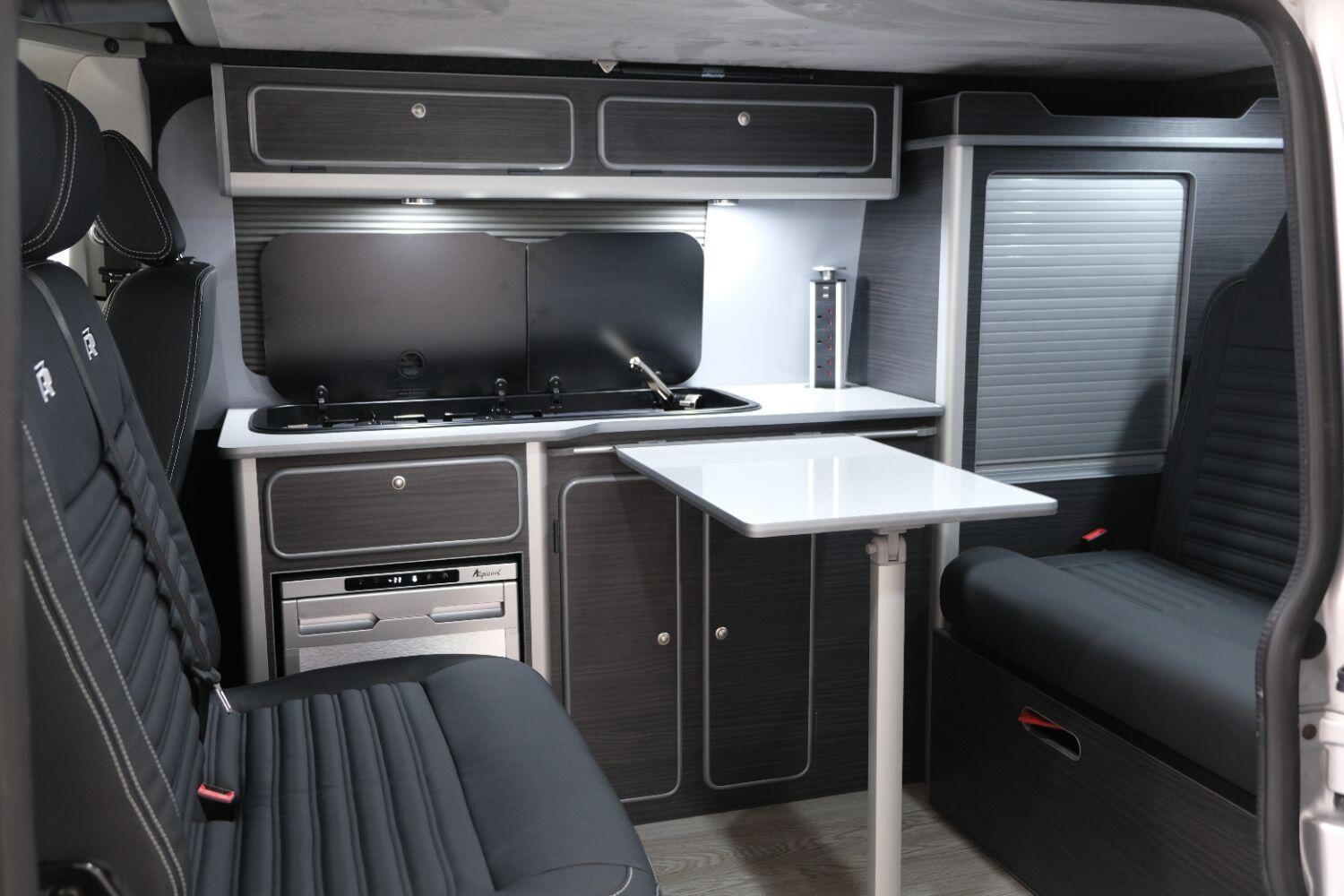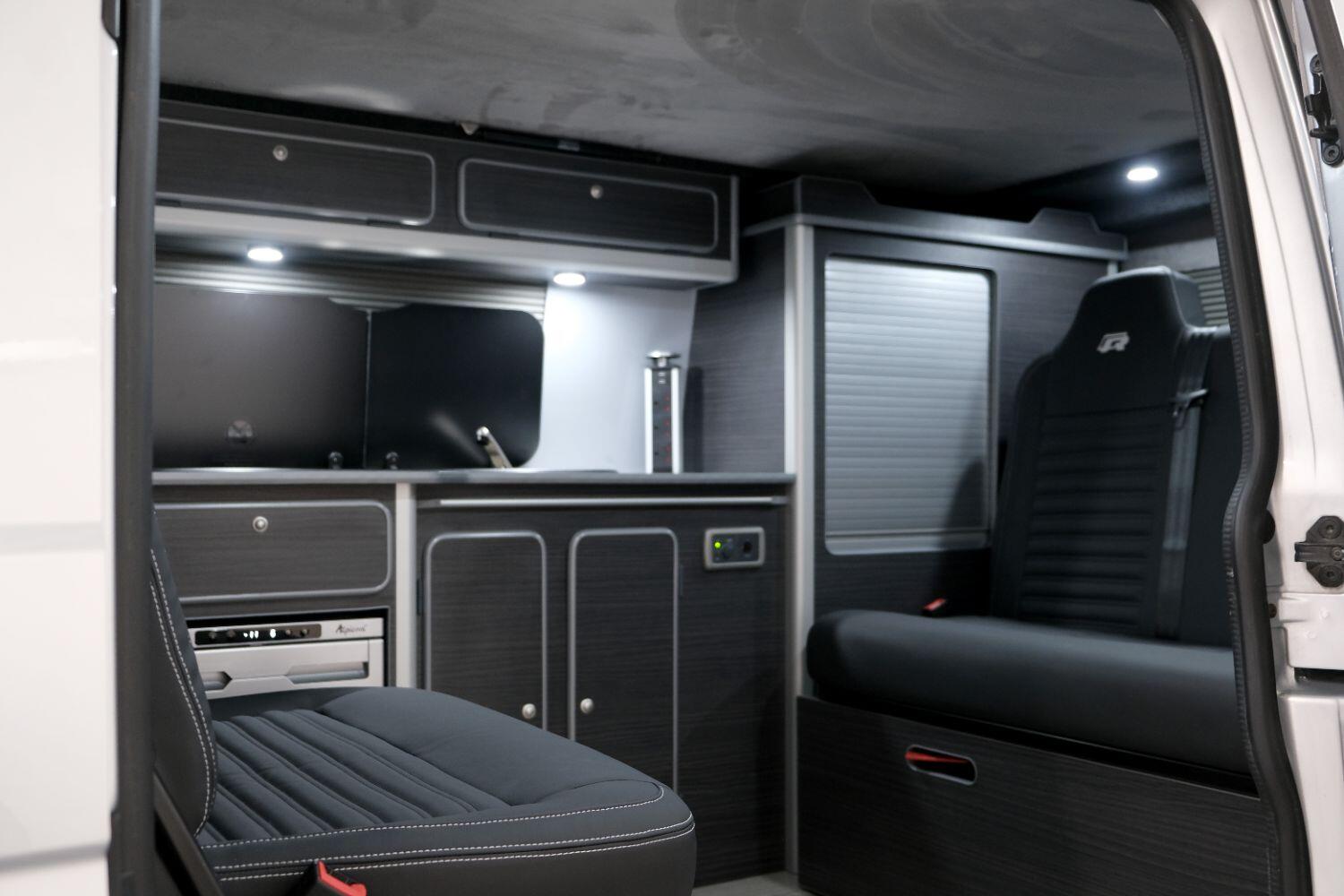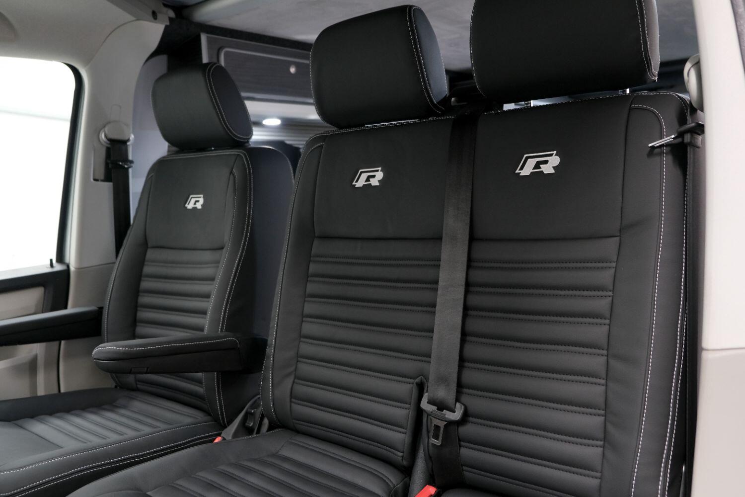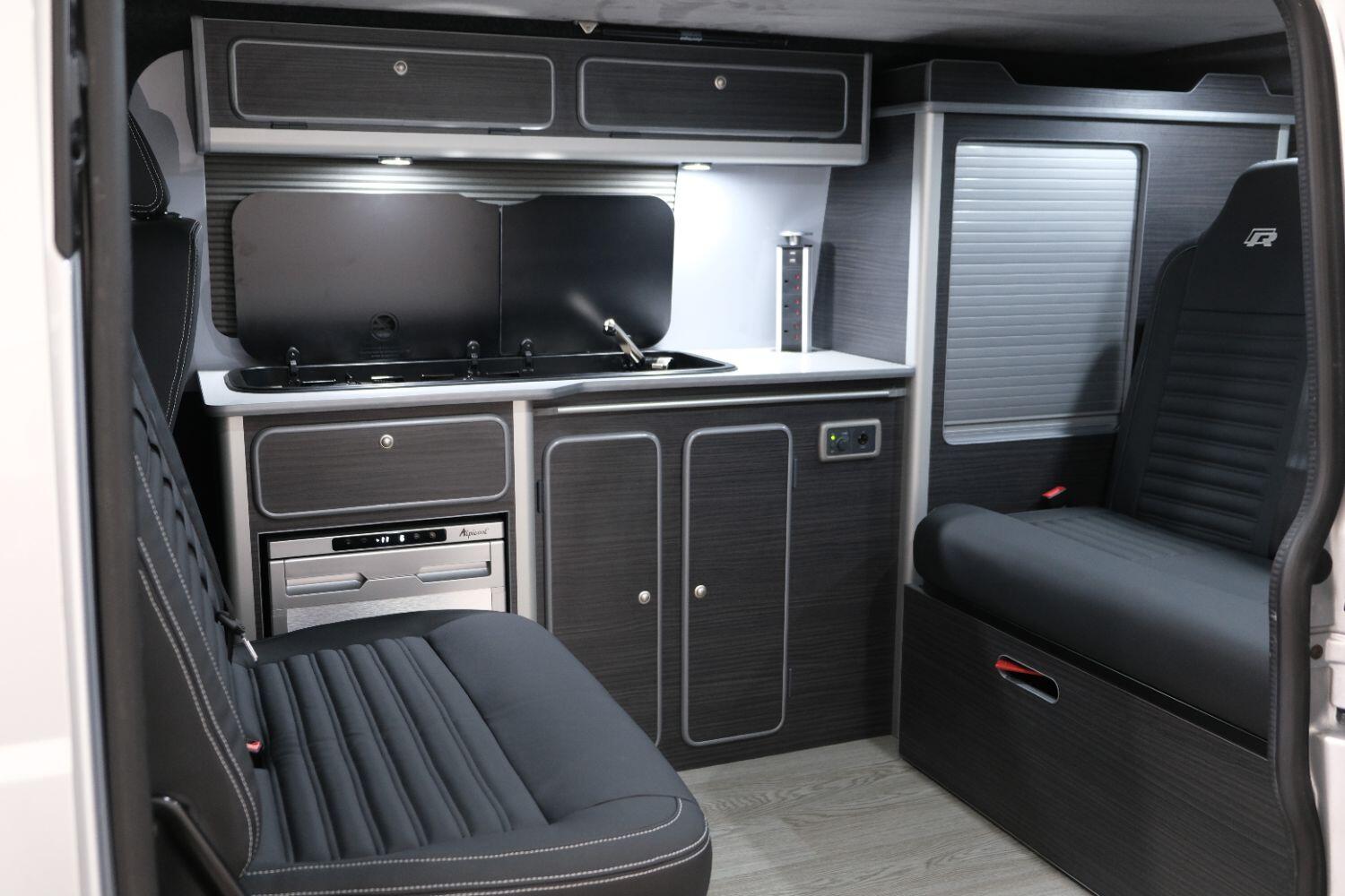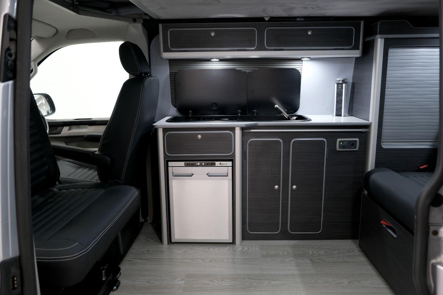 *** A SUPERB CONDITION VW TRANSPORTER R LINE DESIGN CAMPERVAN *** THIS IS A BRAND NEW CONVERSION CARRIED OUT BUY US ALL PARTS ARE NEW *** MASSIVE SPEC WHICH INCLUDES - WOLFRACE 20 INCH GLOSS BLACK MATRIX ALLOYS - EIBACH LOWERING SPRINGS 45MM DROP FRONT & REAR - ECO WORTHY 130 WATT SOLAR PANEL PLUS DC TO DC CHARGER - PLANAR AUTOTERM NIGHT DIESEL HEATER *** TOP QUALITY INTERIOR FINISH RE TRIMMED IN R LINE BLACKLEATHER - PASSENGER SEAT M1 TESTED SWIVEL BASE TO FACE REAR - VANSHADES BLACKOUT THERMAL BLIND SYSTEM THROUGHOUT- ALPICOOL 50L FRIDGE / FREEZER - THETFORD Dual Gas HOB SINK - AUSTOPS TUV TESTED POP TOP ROOF BED WITH PANORAMIC CANVAS - DRIVER AND PASSENGER SIDE REAR OPENING GLASS - RUSTY LEE M1 TUV TESTED ROCK N ROLL BED - 240V MAINS HOOK UP *** THE VAN HAS ALSO BEEN FULLY INSULATED INCLUDING ALL DOORS - SIDE PANELS AND DEAD MAT ARCHES *** BLUETOOTH PHONE CONNECTION - BLUETOOTH PHONE AND MUSIC STREAMING - REAR PARKING SENSORS - FACTORY AIR CON - LED DAYTIME RUNNING LIGHTS - CRUISE CONTROL - MULTI FUNCTION DASH - LEATHER STEERING WHEEL- HEATED FRONT WINDSCREEN *** FULL SERVICE HISTORY - WILL COME WITH 1 YEARS MOT ***LOW FINANCE OPTIONS AVAILABLE - PART EXCHANGE WELCOME