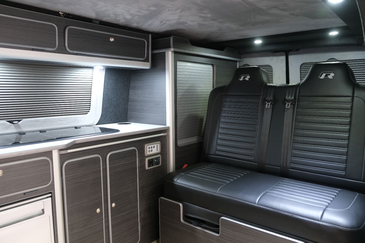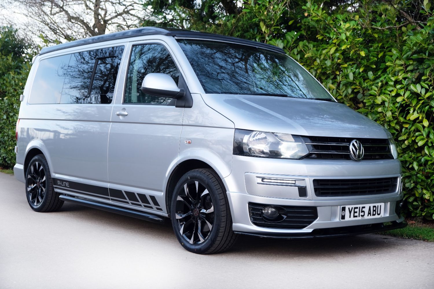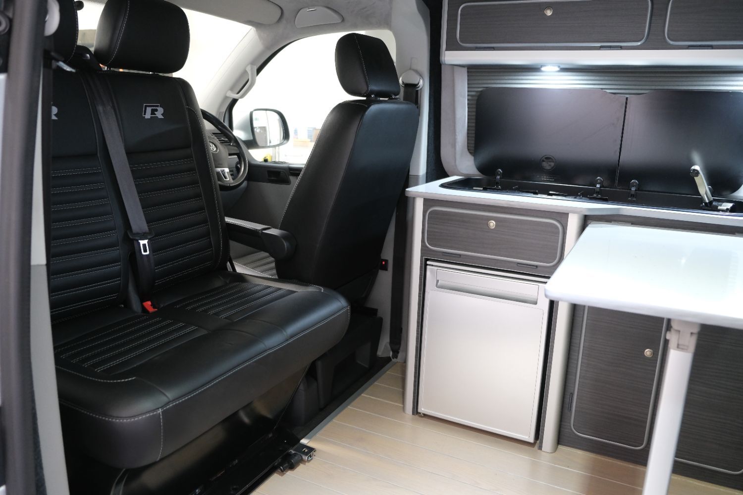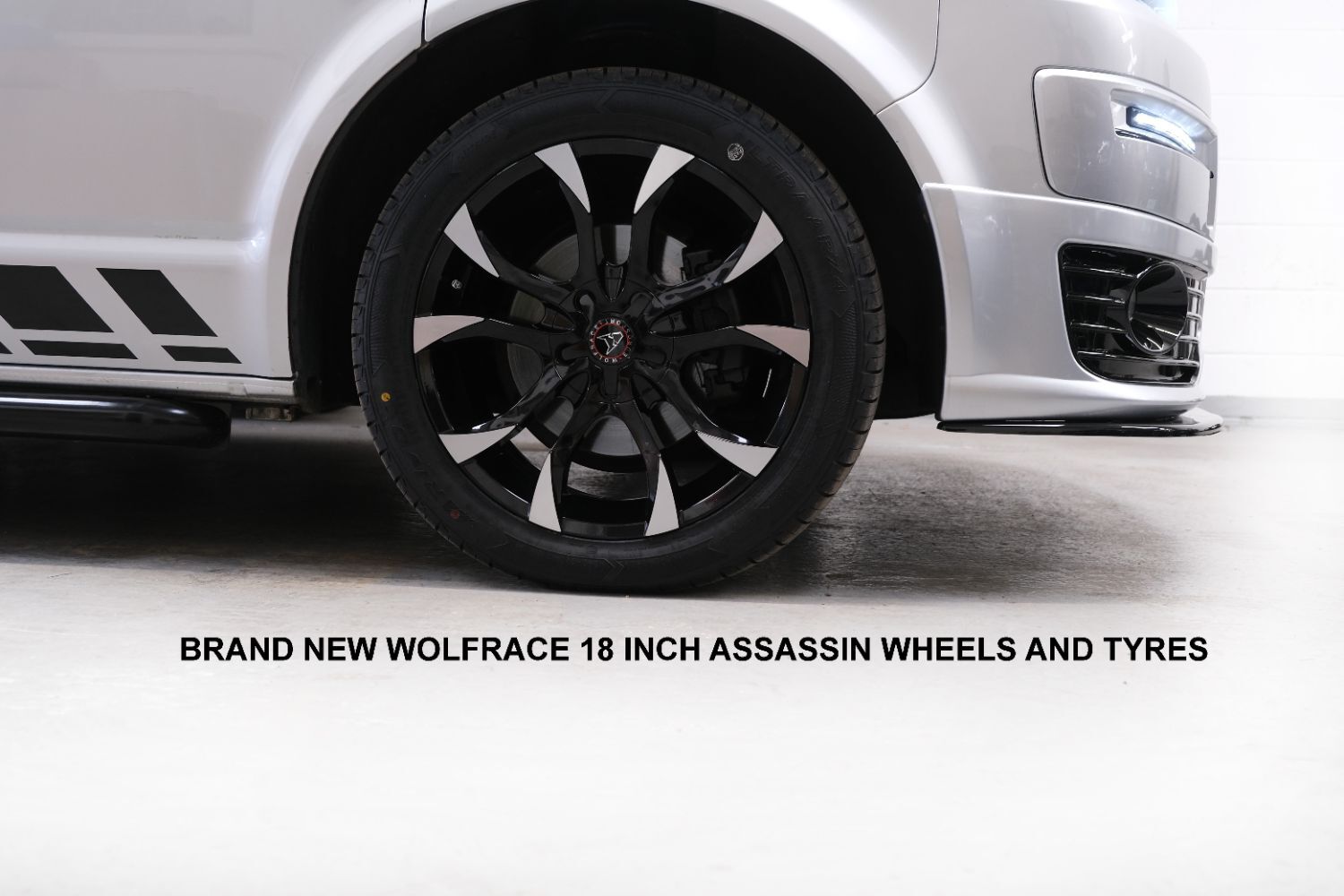 A SUPERB CONDITION VOLKSWAGEN HIGHLINE TRANSPORTER CAMPER VAN CONVERSION *** 2 OWNERS FROM NEW *** THIS IS A BRAND NEW CONVERSION CARRIED OUT BUY US WITH A MASSIVE SPEC WHICH INCLUDES - GENUINE SPORTLINE BUMPER + FRONT LIP & REAR SPOILER - BRAND NEW WOLFRACE ASSASSIN 18 INCH ALLOYS & TYRES - H&R SPRINGS 40MM DROP FRONT & REAR - MULTIMEDIA SYSTEM WITH APPLE CAR PLAY - ANDROID AUTO - GOOGLE MAPS & BLUETOOTH PHONE CONNECTION WITH MUSIC STREAMING - REAR PARKING SENSORS - REVERSE CAMERA - FACTORY AIR CON - CRUISE CONTROL - MULTI FUNCTION DASH - LEATHER STEERING WHEEL *** TOP QUALITY INTERIOR FINISH WITH LEATHER ROCK AND ROLL BED M1 TESTED - PASSENGER SEAT M1 TESTED SWIVEL BASE TO FACE REAR - VANSHADES BLACKOUT THERMAL BLIND SYSTEM THROUGHOUT- R LINE LEATHER RE-TRIMMED SEATS - 3 WAY FRIDGE / FREEZER - TOP QUALITY THETFORD TWIN HOB AND SINK - AUSTOPS TUV TESTED POP TOP ROOF BED WITH PANORAMIC CANVAS - DRIVER AND PASSENGER SIDE REAR OPENING GLASS *** THE VAN HAS ALSO BEEN FULLY INSULATED INCLUDING ALL DOORS - SIDE PANELS AND DEAD MAT ARCHES