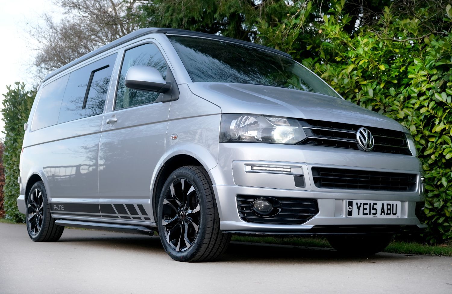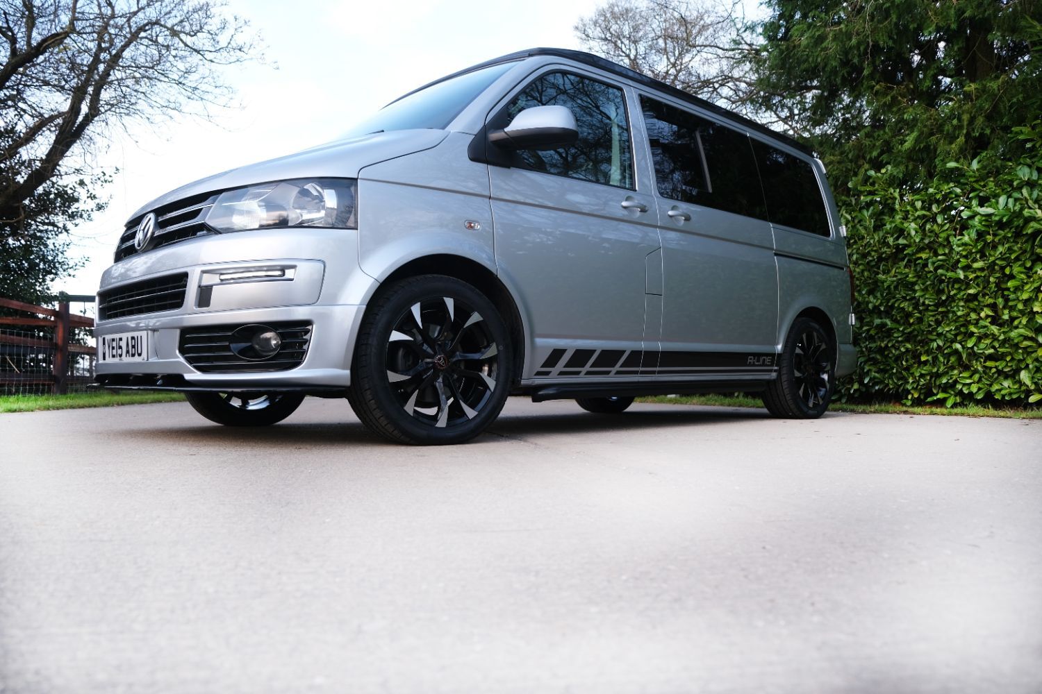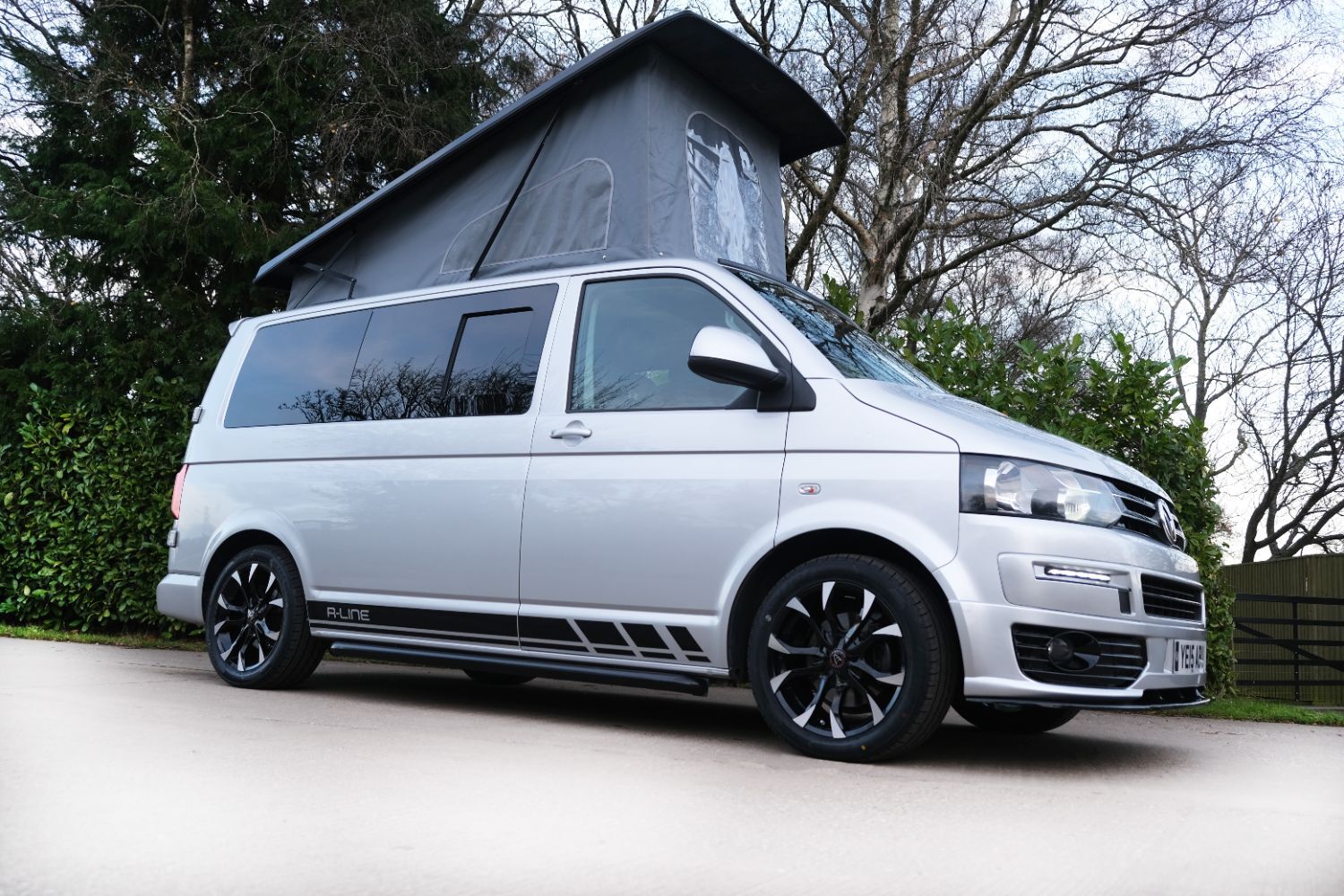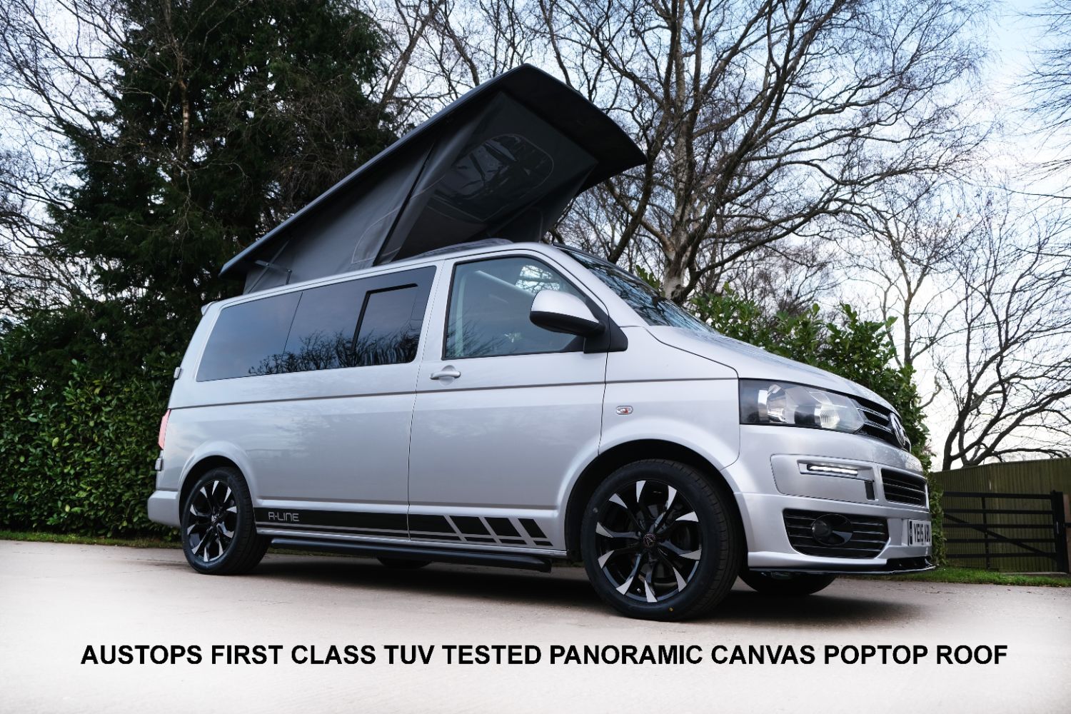 A SUPERB CONDITION VOLKSWAGEN HIGHLINE TRANSPORTER CAMPER VAN CONVERSION *** 2 OWNERS FROM NEW *** THIS IS A BRAND NEW CONVERSION CARRIED OUT BUY US WITH A MASSIVE SPEC WHICH INCLUDES - GENUINE SPORTLINE BUMPER + FRONT LIP & REAR SPOILER - BRAND NEW WOLFRACE ASSASSIN 18 INCH ALLOYS & TYRES - H&R SPRINGS 40MM DROP FRONT & REAR - MULTIMEDIA SYSTEM WITH APPLE CAR PLAY - ANDROID AUTO - GOOGLE MAPS & BLUETOOTH PHONE CONNECTION WITH MUSIC STREAMING - REAR PARKING SENSORS - REVERSE CAMERA - FACTORY AIR CON - CRUISE CONTROL - MULTI FUNCTION DASH - LEATHER STEERING WHEEL *** TOP QUALITY INTERIOR FINISH WITH LEATHER ROCK AND ROLL BED M1 TESTED - PASSENGER SEAT M1 TESTED SWIVEL BASE TO FACE REAR - VANSHADES BLACKOUT THERMAL BLIND SYSTEM THROUGHOUT- R LINE LEATHER RE-TRIMMED SEATS - 3 WAY FRIDGE / FREEZER - TOP QUALITY THETFORD TWIN HOB AND SINK - AUSTOPS TUV TESTED POP TOP ROOF BED WITH PANORAMIC CANVAS - DRIVER AND PASSENGER SIDE REAR OPENING GLASS *** THE VAN HAS ALSO BEEN FULLY INSULATED INCLUDING ALL DOORS - SIDE PANELS AND DEAD MAT ARCHES