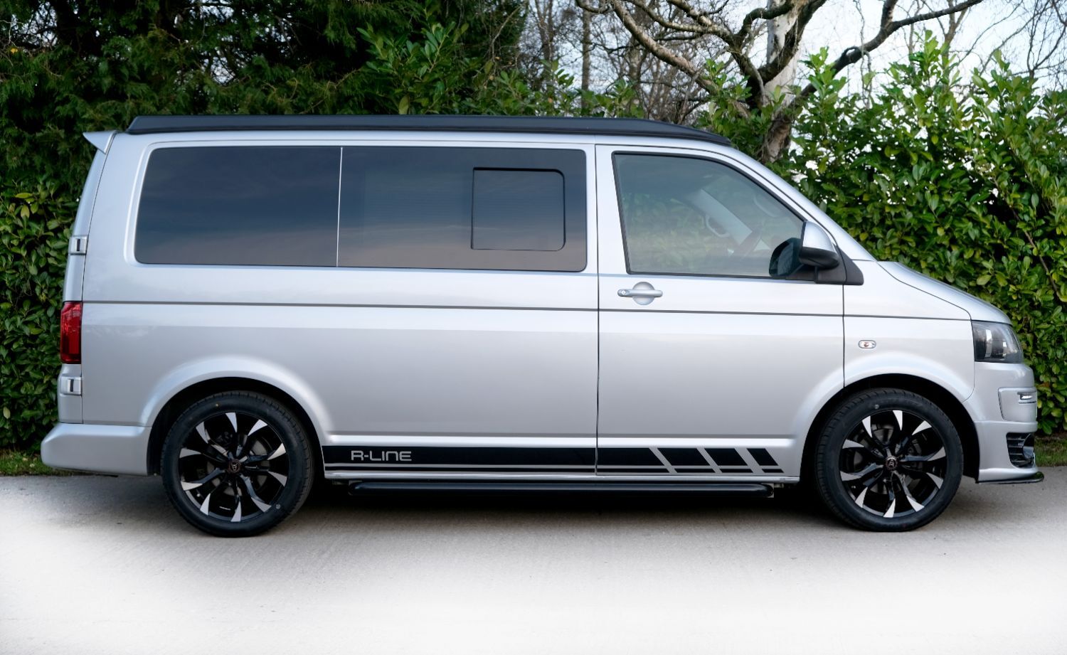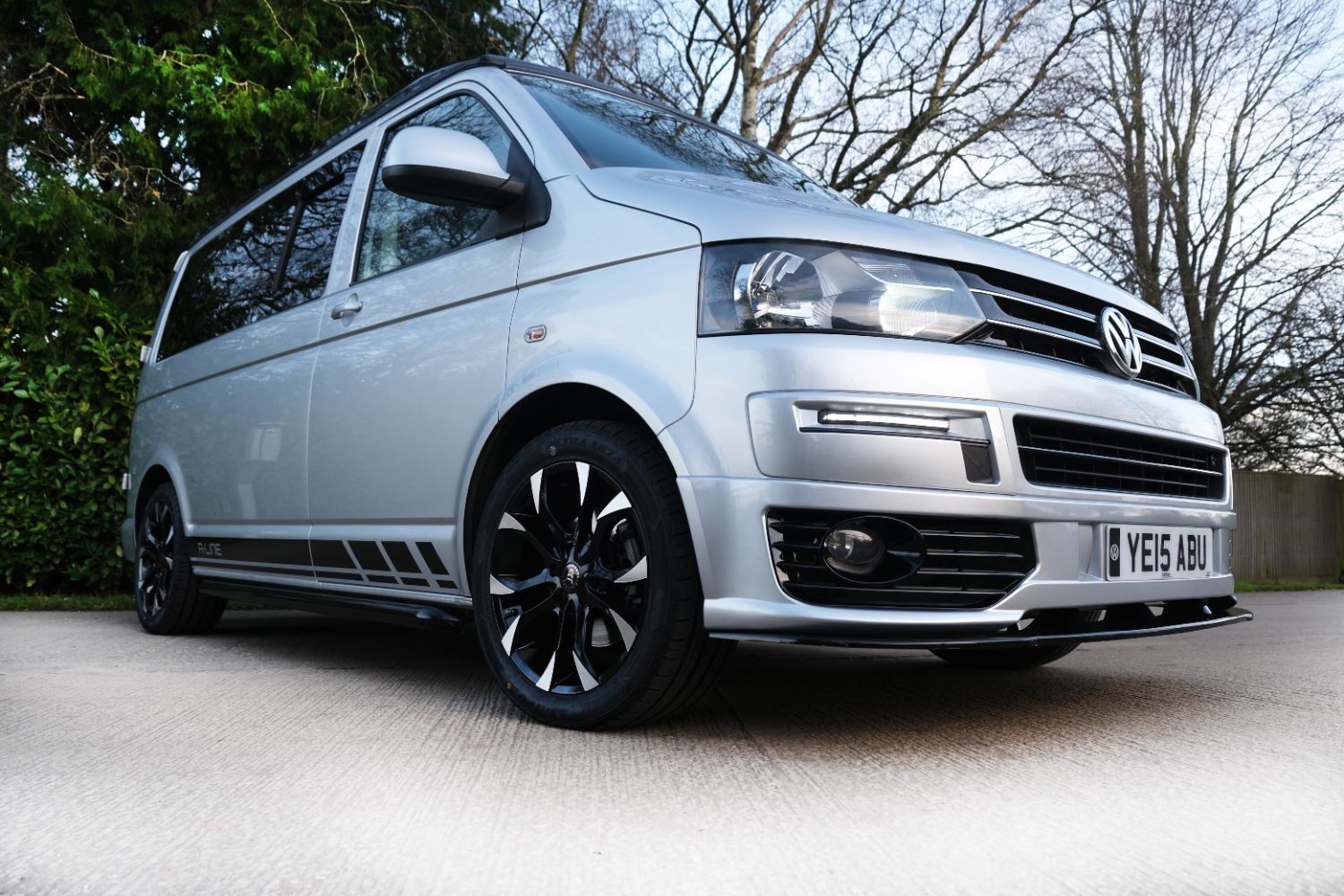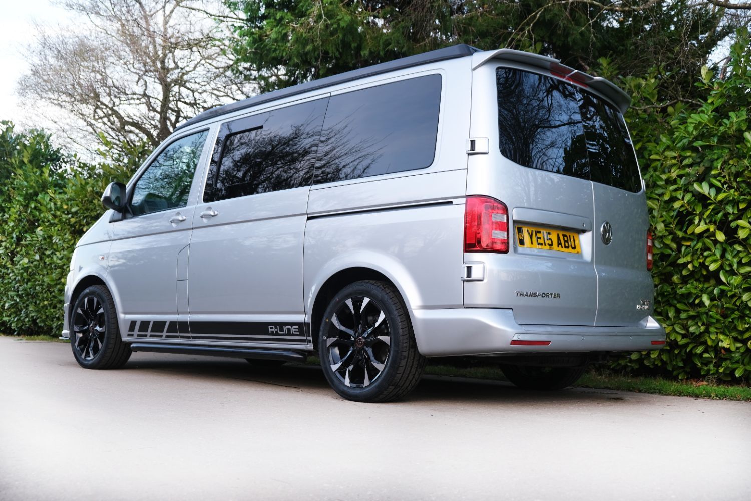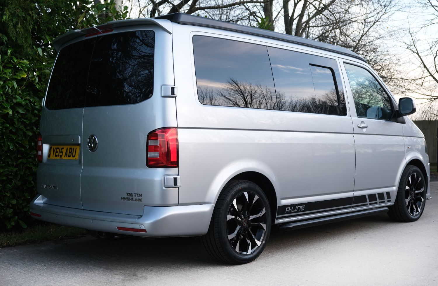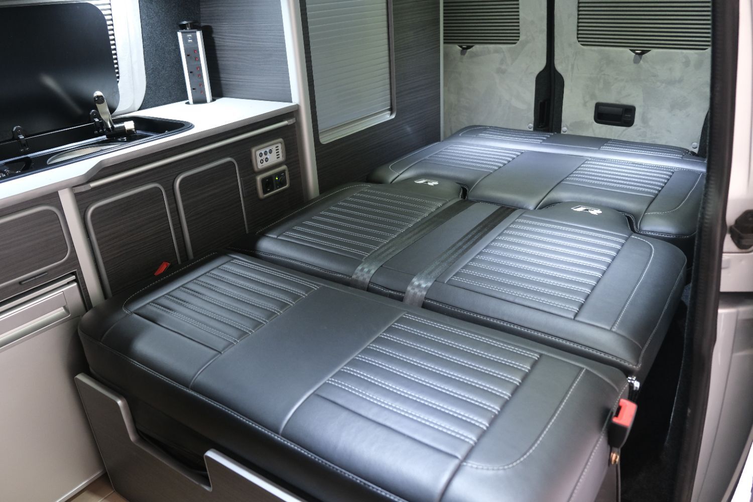 A SUPERB CONDITION VOLKSWAGEN HIGHLINE TRANSPORTER CAMPER VAN CONVERSION *** 2 OWNERS FROM NEW *** THIS IS A BRAND NEW CONVERSION CARRIED OUT BUY US WITH A MASSIVE SPEC WHICH INCLUDES - GENUINE SPORTLINE BUMPER + FRONT LIP & REAR SPOILER - BRAND NEW WOLFRACE ASSASSIN 18 INCH ALLOYS & TYRES - H&R SPRINGS 40MM DROP FRONT & REAR - MULTIMEDIA SYSTEM WITH APPLE CAR PLAY - ANDROID AUTO - GOOGLE MAPS & BLUETOOTH PHONE CONNECTION WITH MUSIC STREAMING - REAR PARKING SENSORS - REVERSE CAMERA - FACTORY AIR CON - CRUISE CONTROL - MULTI FUNCTION DASH - LEATHER STEERING WHEEL *** TOP QUALITY INTERIOR FINISH WITH LEATHER ROCK AND ROLL BED M1 TESTED - PASSENGER SEAT M1 TESTED SWIVEL BASE TO FACE REAR - VANSHADES BLACKOUT THERMAL BLIND SYSTEM THROUGHOUT- R LINE LEATHER RE-TRIMMED SEATS - 3 WAY FRIDGE / FREEZER - TOP QUALITY THETFORD TWIN HOB AND SINK - AUSTOPS TUV TESTED POP TOP ROOF BED WITH PANORAMIC CANVAS - DRIVER AND PASSENGER SIDE REAR OPENING GLASS *** THE VAN HAS ALSO BEEN FULLY INSULATED INCLUDING ALL DOORS - SIDE PANELS AND DEAD MAT ARCHES