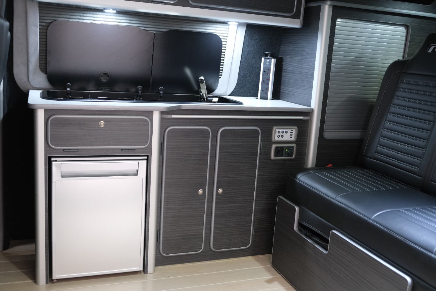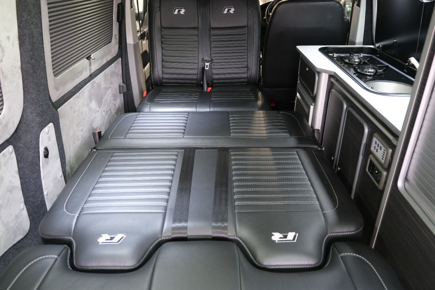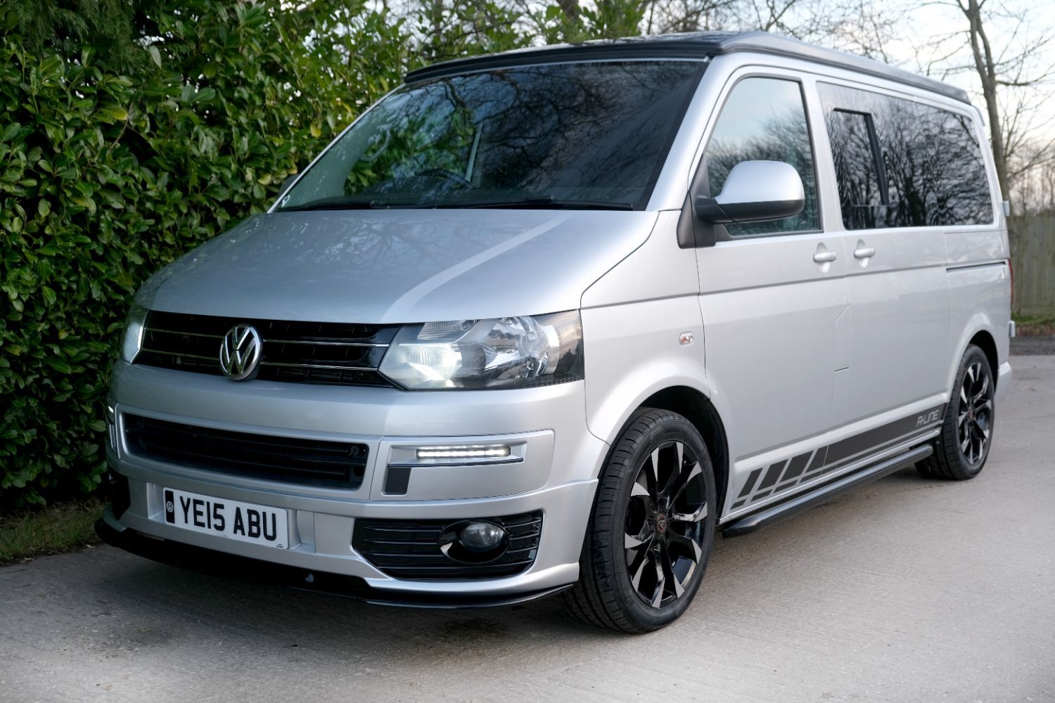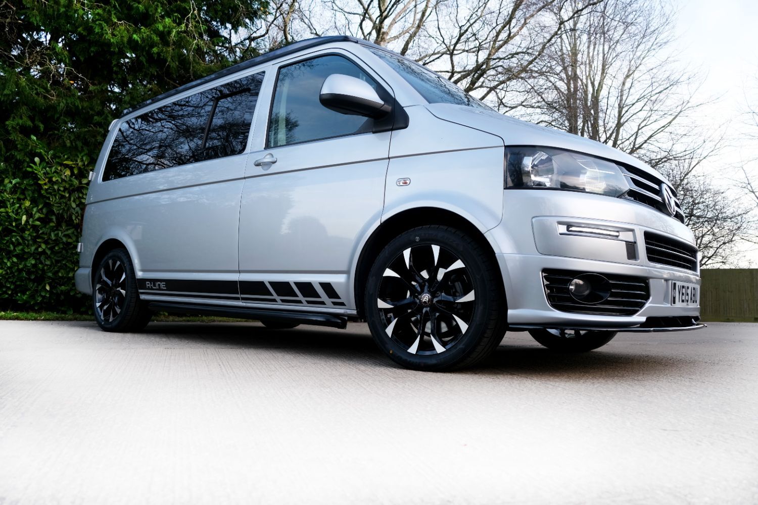 A SUPERB CONDITION VOLKSWAGEN HIGHLINE TRANSPORTER CAMPER VAN CONVERSION *** 2 OWNERS FROM NEW *** THIS IS A BRAND NEW CONVERSION CARRIED OUT BUY US WITH A MASSIVE SPEC WHICH INCLUDES - GENUINE SPORTLINE BUMPER + FRONT LIP & REAR SPOILER - BRAND NEW WOLFRACE ASSASSIN 18 INCH ALLOYS & TYRES - H&R SPRINGS 40MM DROP FRONT & REAR - MULTIMEDIA SYSTEM WITH APPLE CAR PLAY - ANDROID AUTO - GOOGLE MAPS & BLUETOOTH PHONE CONNECTION WITH MUSIC STREAMING - REAR PARKING SENSORS - REVERSE CAMERA - FACTORY AIR CON - CRUISE CONTROL - MULTI FUNCTION DASH - LEATHER STEERING WHEEL *** TOP QUALITY INTERIOR FINISH WITH LEATHER ROCK AND ROLL BED M1 TESTED - PASSENGER SEAT M1 TESTED SWIVEL BASE TO FACE REAR - VANSHADES BLACKOUT THERMAL BLIND SYSTEM THROUGHOUT- R LINE LEATHER RE-TRIMMED SEATS - 3 WAY FRIDGE / FREEZER - TOP QUALITY THETFORD TWIN HOB AND SINK - AUSTOPS TUV TESTED POP TOP ROOF BED WITH PANORAMIC CANVAS - DRIVER AND PASSENGER SIDE REAR OPENING GLASS *** THE VAN HAS ALSO BEEN FULLY INSULATED INCLUDING ALL DOORS - SIDE PANELS AND DEAD MAT ARCHES
