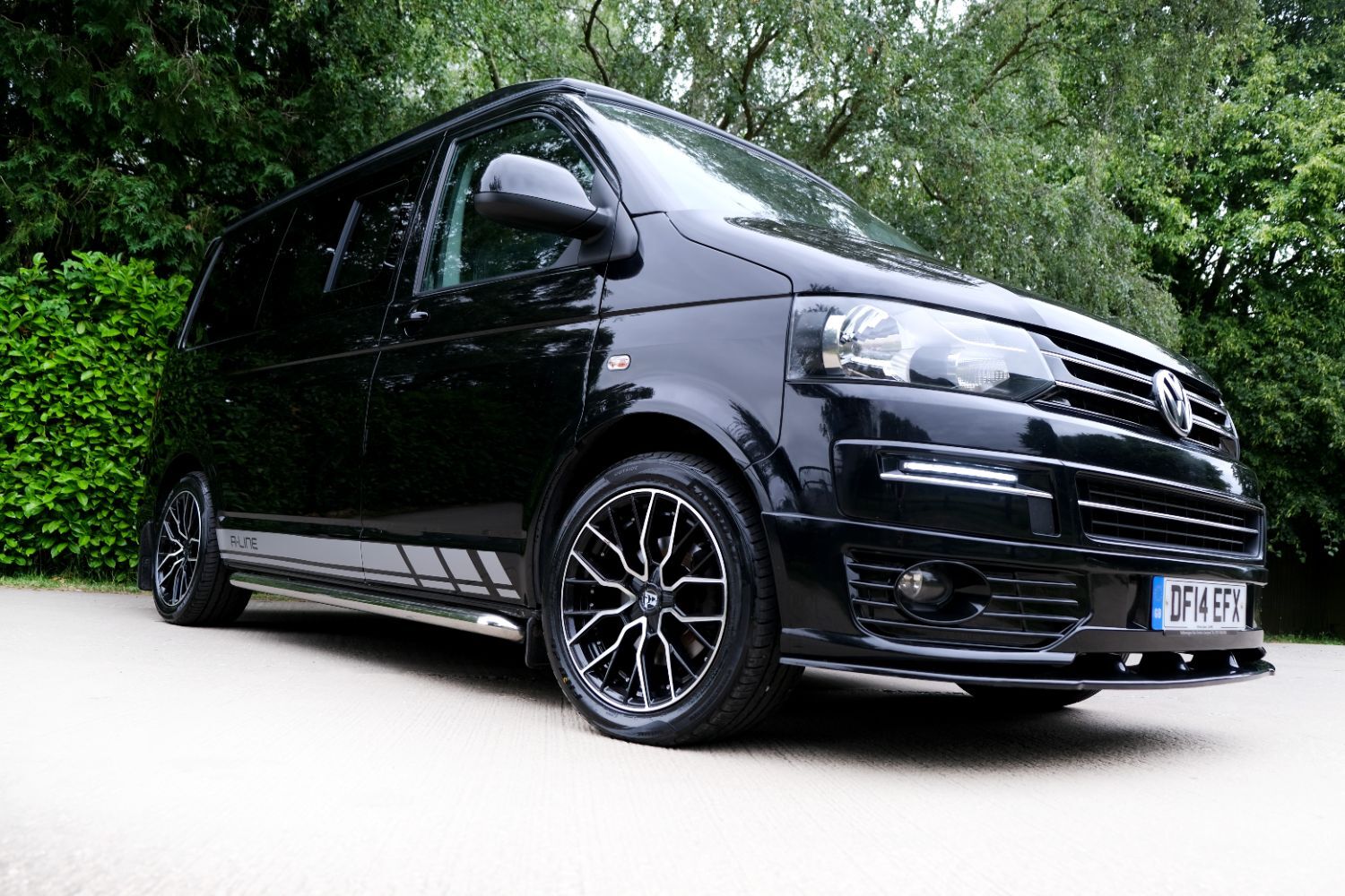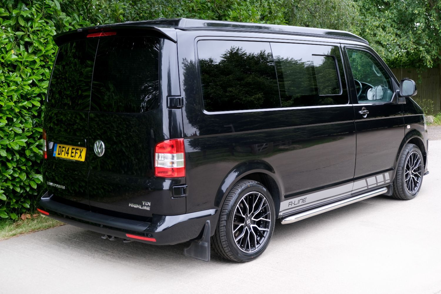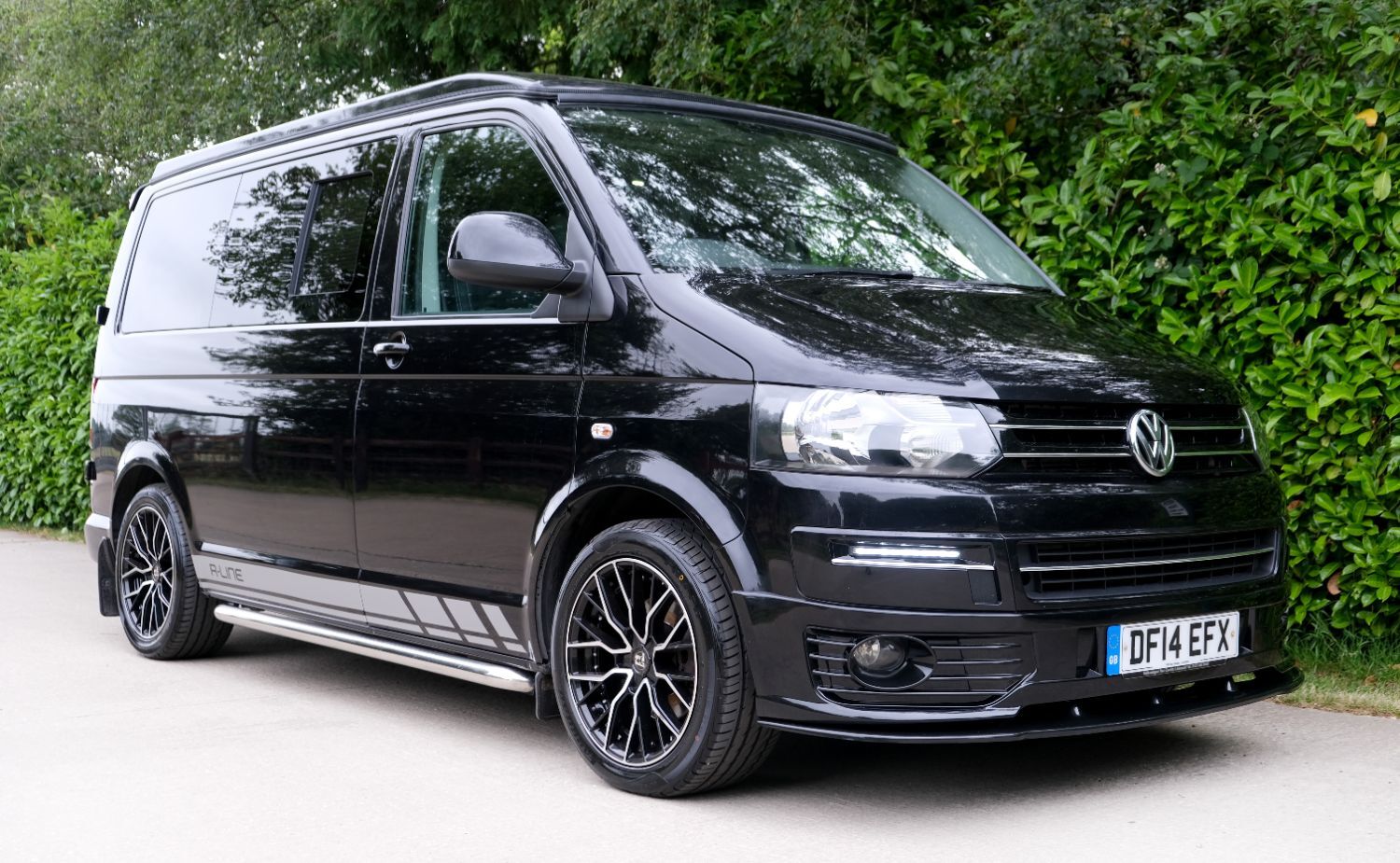 *** A SUPERB CONDITION VW TRANSPORTER  CAMPER VAN CONVERSION *** THIS IS A BRAND NEW CONVERSION CARRIED OUT BUY US ALL PARTS ARE NEW *** MASSIVE SPEC WHICH INCLUDES - GENUINE SPORTLINE BUMPER - LOWER  SPLITTER  &REAR SPOILER - WOLFRACE MATRIX  18 INCH ALLOYS  - H&R SPRINGS 40MM DROP FRONT & REAR -  RENOGY SOLAR PANEL PLUS DC TO DC CHARGER - BLUETOOTH PHONE CONNECTION - BLUETOOTH PHONE AND MUSIC STREAMING -  REAR PARKING SENSORS - FACTORY AIR CON - LED DAYTIME RUNNING LIGHTS - CRUISE CONTROL -  MULTI FUNCTION DASH - LEATHER STEERING WHEEL*** TOP QUALITY INTERIOR FINISH RE TRIMMED IN R LINE BLACK LEATHER - PASSENGER SEAT M1 TESTED SWIVEL BASE TO FACE REAR - VANSHADES BLACKOUT THERMAL BLIND SYSTEM THROUGHOUT- CG 50L FRIDGE / FREEZER - THETFORD Dual Gas HOB  SINK - AUSTOPS TUV TESTED POP TOP ROOF BED WITH PANORAMIC CANVAS - DRIVER AND PASSENGER SIDE REAR OPENING GLASS - RUSTY LEE M1 & TUV TESTED ROCK N ROLL BED *** THE VAN HAS ALSO BEEN FULLY INSULATED INCLUDING ALL DOORS - SIDE PANELS AND DEAD MAT ARCHES *** EXCELLENT SERVICE HISTORY