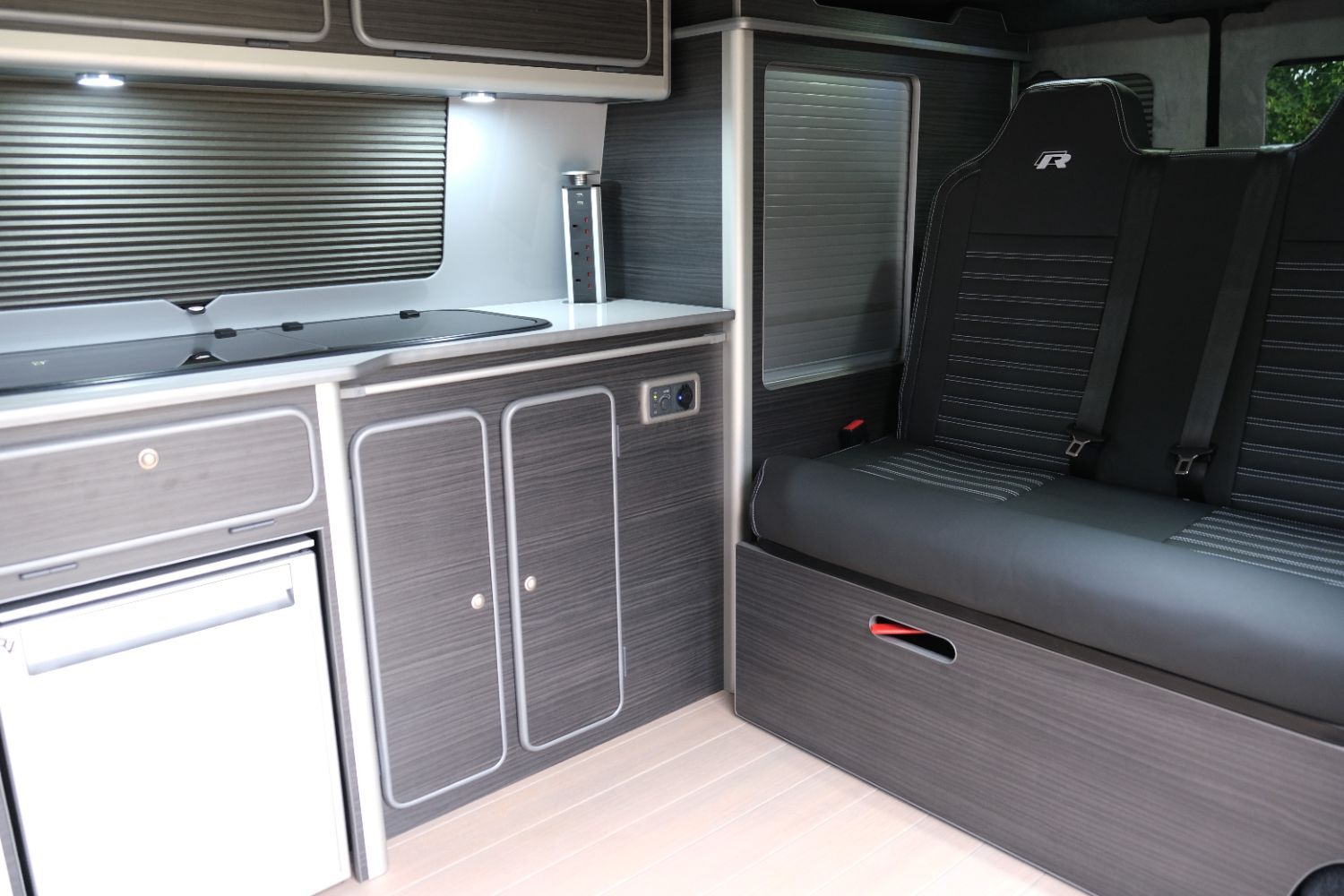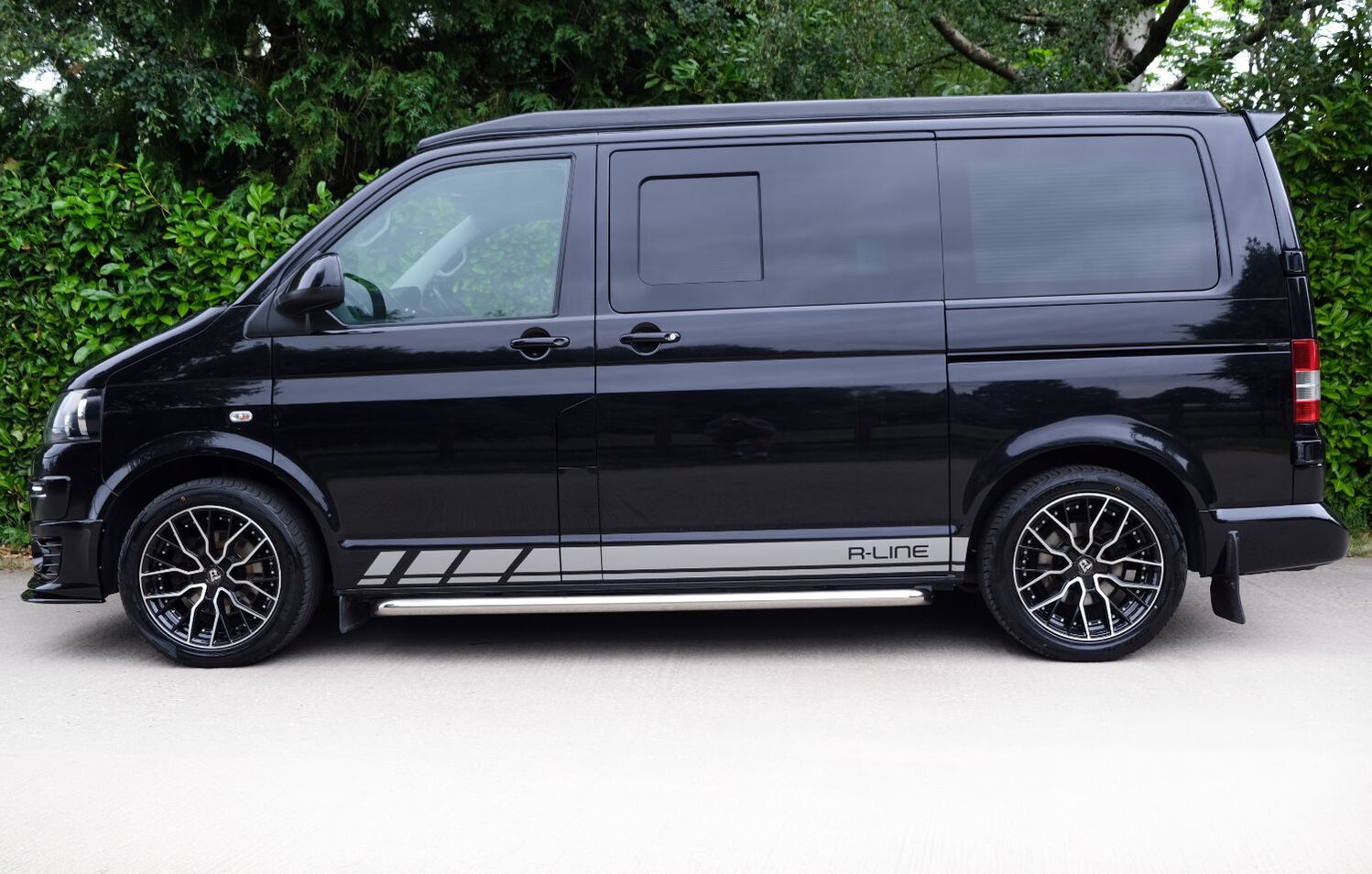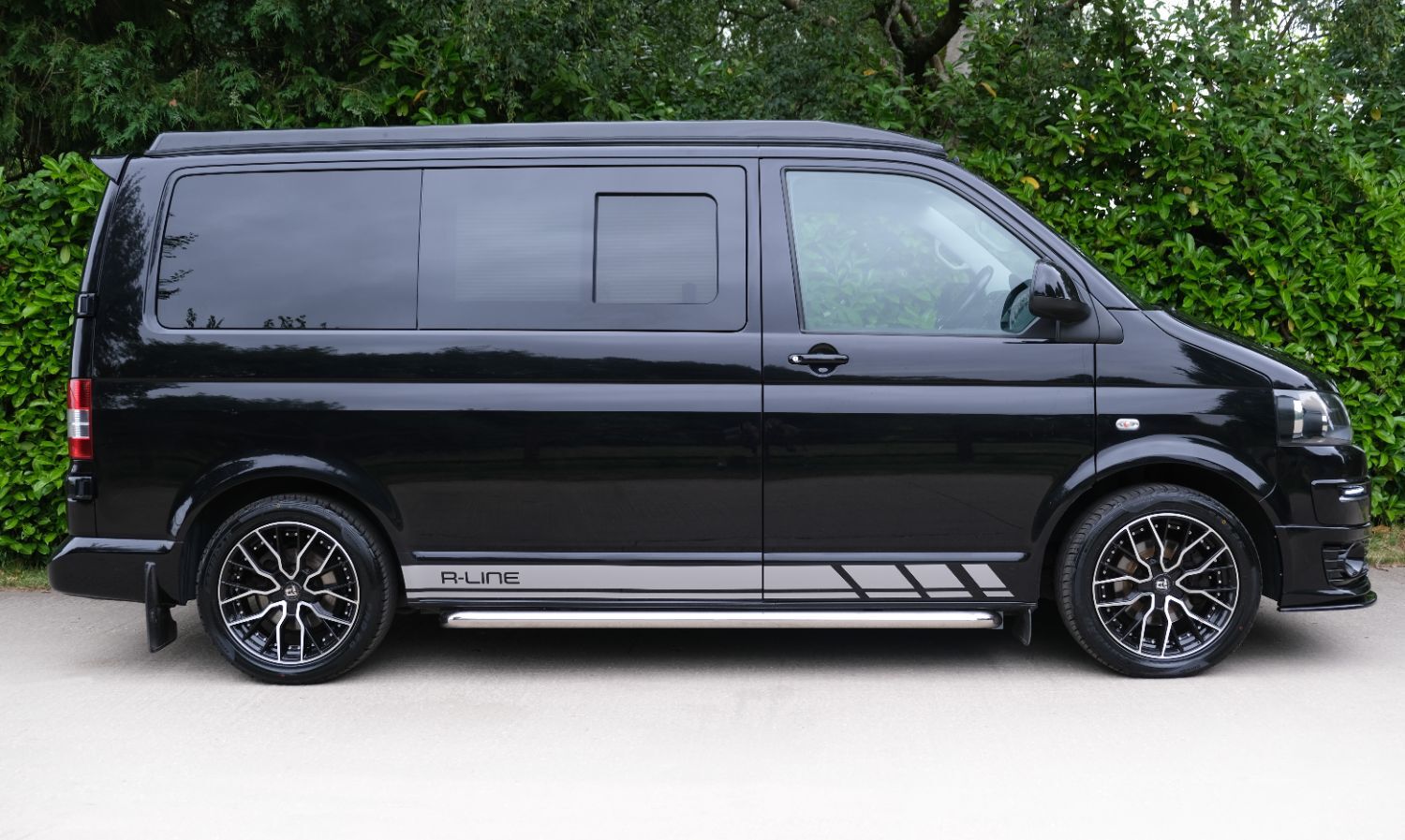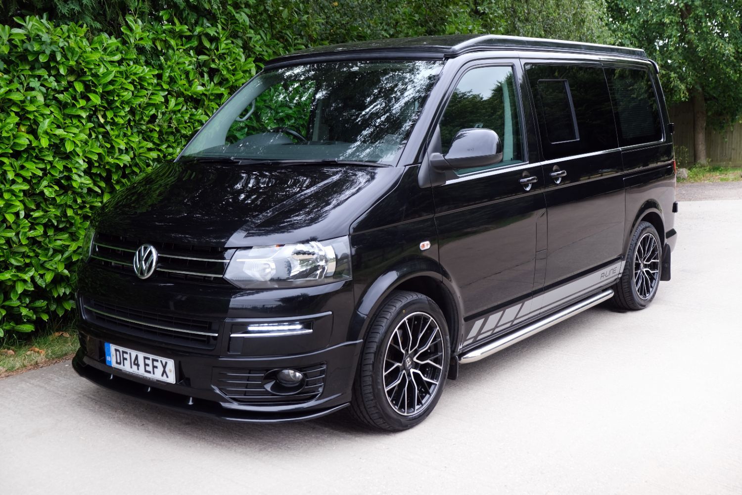 *** A SUPERB CONDITION VW TRANSPORTER  CAMPER VAN CONVERSION *** THIS IS A BRAND NEW CONVERSION CARRIED OUT BUY US ALL PARTS ARE NEW *** MASSIVE SPEC WHICH INCLUDES - GENUINE SPORTLINE BUMPER - LOWER  SPLITTER  &REAR SPOILER - WOLFRACE MATRIX  18 INCH ALLOYS  - H&R SPRINGS 40MM DROP FRONT & REAR -  RENOGY SOLAR PANEL PLUS DC TO DC CHARGER - BLUETOOTH PHONE CONNECTION - BLUETOOTH PHONE AND MUSIC STREAMING -  REAR PARKING SENSORS - FACTORY AIR CON - LED DAYTIME RUNNING LIGHTS - CRUISE CONTROL -  MULTI FUNCTION DASH - LEATHER STEERING WHEEL*** TOP QUALITY INTERIOR FINISH RE TRIMMED IN R LINE BLACK LEATHER - PASSENGER SEAT M1 TESTED SWIVEL BASE TO FACE REAR - VANSHADES BLACKOUT THERMAL BLIND SYSTEM THROUGHOUT- CG 50L FRIDGE / FREEZER - THETFORD Dual Gas HOB  SINK - AUSTOPS TUV TESTED POP TOP ROOF BED WITH PANORAMIC CANVAS - DRIVER AND PASSENGER SIDE REAR OPENING GLASS - RUSTY LEE M1 & TUV TESTED ROCK N ROLL BED *** THE VAN HAS ALSO BEEN FULLY INSULATED INCLUDING ALL DOORS - SIDE PANELS AND DEAD MAT ARCHES *** EXCELLENT SERVICE HISTORY