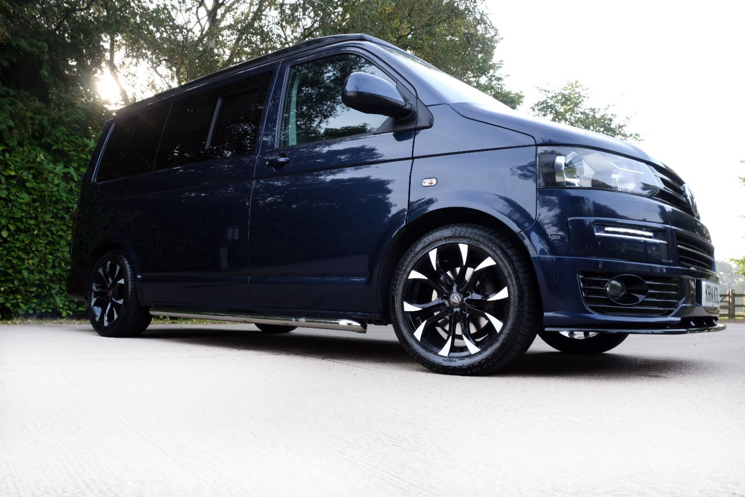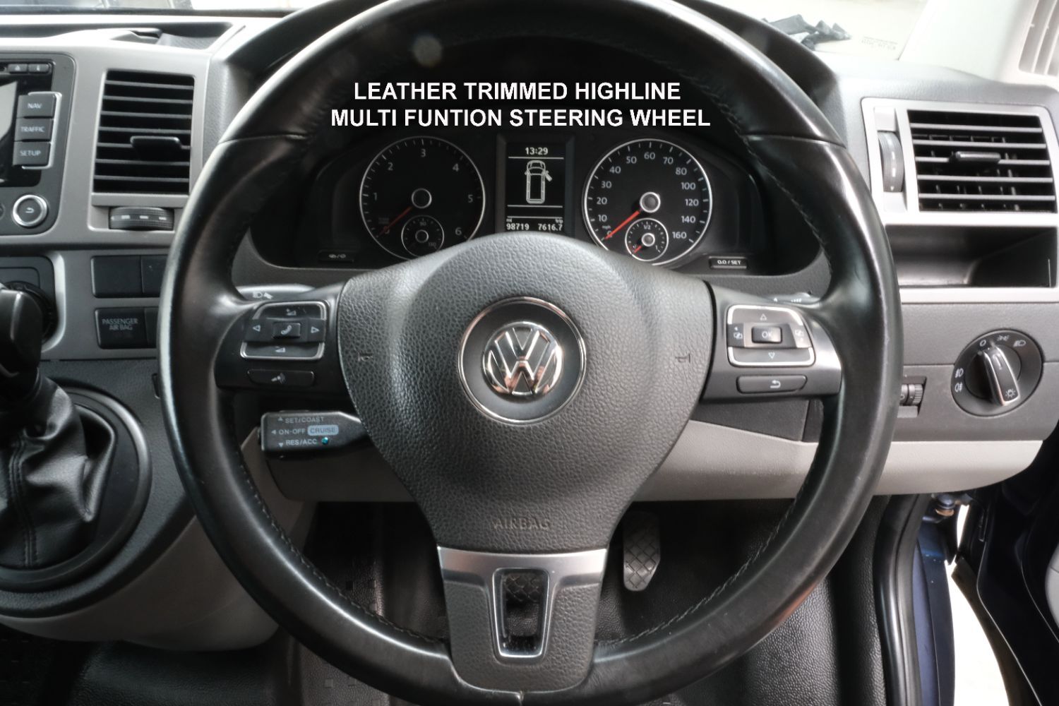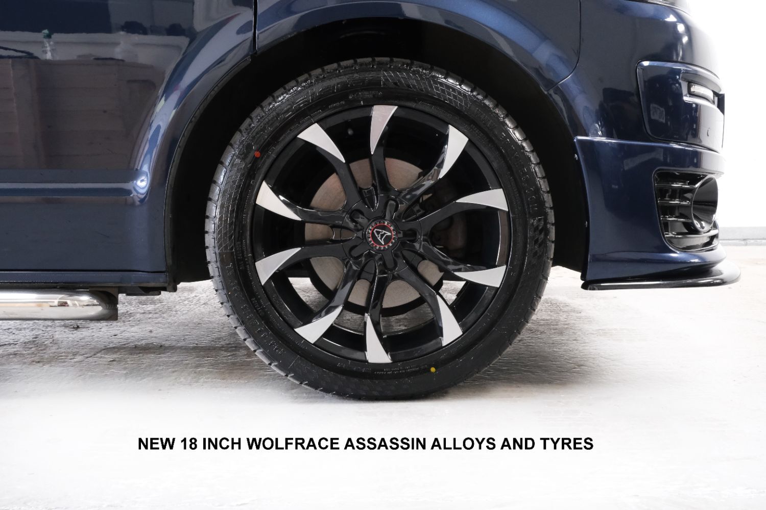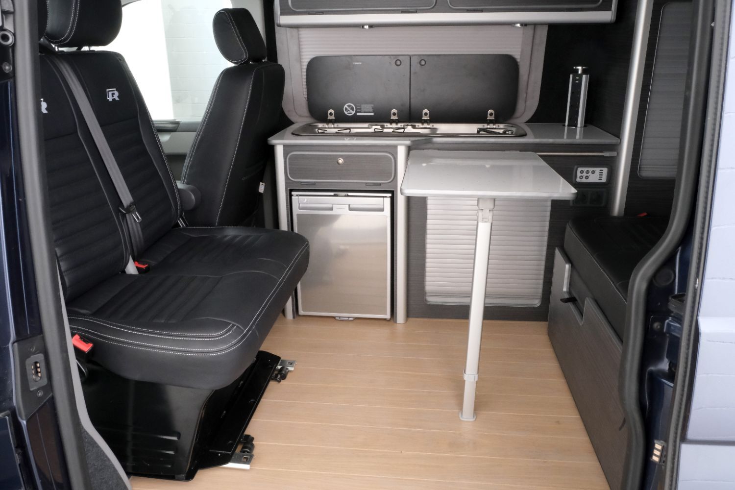 *** A SUPERB CONDITION VOLKSWAGEN TRANSPORTER HIGHLINE CAMPER VAN CONVERSION *** 2 OWNERS FROM NEW *** THIS IS A BRAND NEW CONVERSION CARRIED OUT BUY US WITH A MASSIVE SPEC WHICH INCLUDES - GENUINE SPORTLINE BUMPER + FRONT LIP & REAR SPOILER -HIGH PERFORMANCE LED HEADLIGHTS - LED DAY RUNNING LIGHTS- - BRAND NEW WOLFRACE 18 INCH ALLOYS & TYRES - H&R SPRINGS 40MM DROP FRONT & REAR - MULTIMEDIA SYSTEM INCLUDING BLUETOOTH PHONE CONNECTION - BLUE TOOTH PHONE AND MUSIC STREAMING - SATELLITE NAVIGATION - FRONT AND REAR PARKING SENSORS - FACTORY AIR CON - CRUISE CONTROL - MULTI FUNCTION DASH - LEATHER STEERING WHEEL *** TOP QUALITY INTERIOR FINISH WITH NAPPA LEATHER ROCK AND ROLL BED M1 TESTED - PASSENGER SEAT M1 TESTED SWIVEL BASE TO FACE REAR - VANSHADES BLACKOUT THERMAL BLIND SYSTEM THROUGHOUT- R LINE LEATHER RE-TRIMMED SEATS - DOMESTIC Waeco CRX550 FRIDGE / FREEZER - DOMESTIC Smev 9222 SINK HOB - AUSTOPS TUV TESTED POP TOP ROOF WITH BED & DRIVER AND PASSENGER SIDE REAR OPENING GLASS *** THE VAN HAS ALSO BEEN FULLY INSULATED INCLUDING ALL DOORS - SIDE PANELS AND DEAD MAT ARCHES *** EXCELLENT SERVICE HISTORY JUST BEEN SERVICED INCLUDING FRONT SUSPENSION PLUS BRAKES CAMBELT AND WATER PUMP CHANGE - 12v Power, ABS, Air Con, Air Conditioning, Alloy Wheels, Battery Charger, Blinds, Bluetooth, Central Locking, Cruise Control, Electric Mirrors, End Bedroom, Fresh/Waste Water Tank, Fridge/Freezer, Gas Hob, Leather Upholstery, Leisure Battery, Mains electric, Multi-Function Trip Computer, Power Steering, Reversing Sensors, Sat Nav, Satellite Navigation, Spare wheel, Swivel Passenger Seat