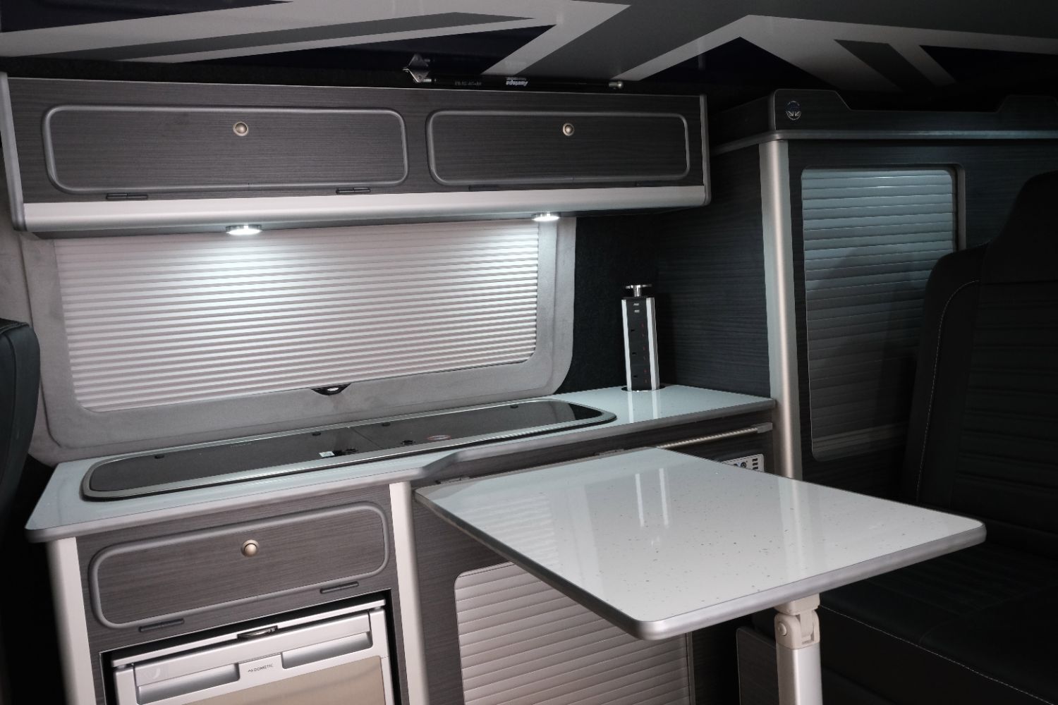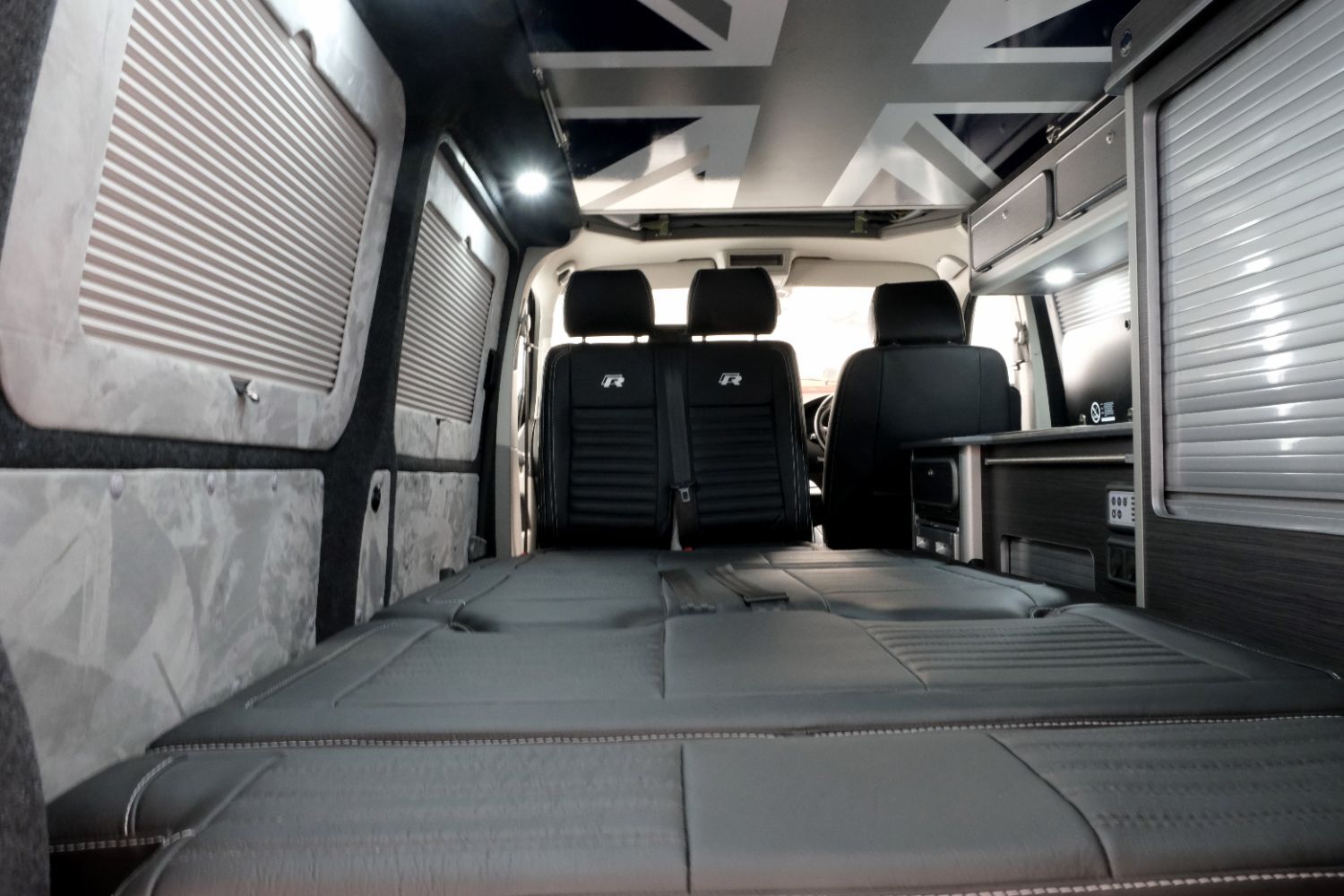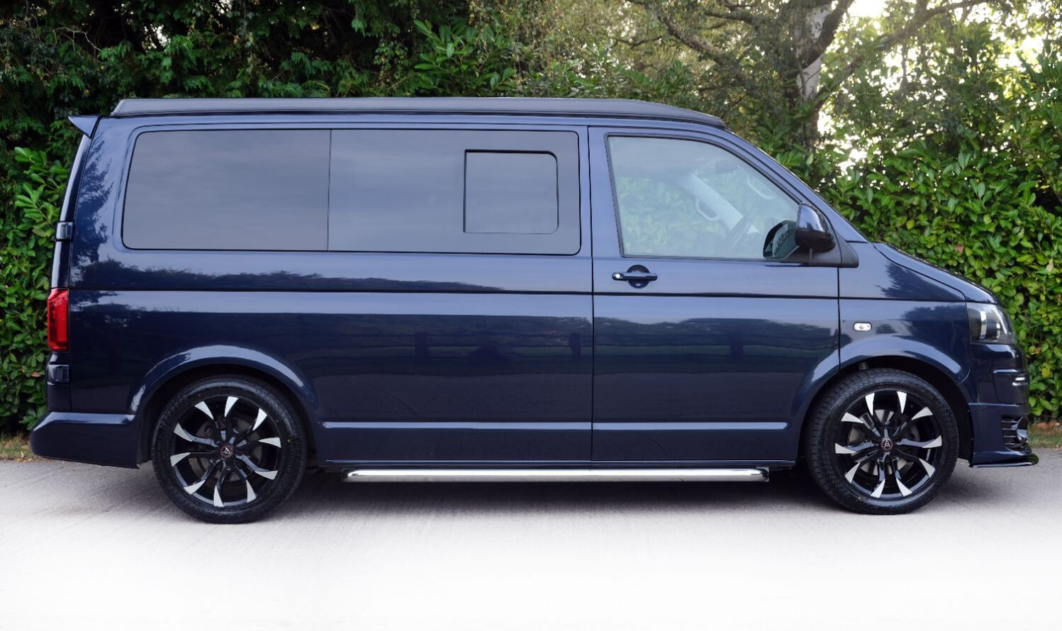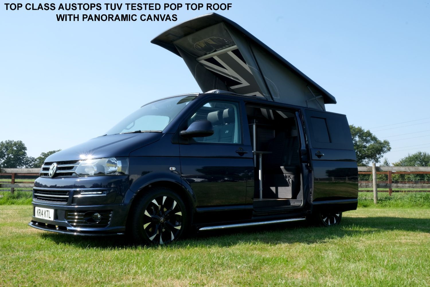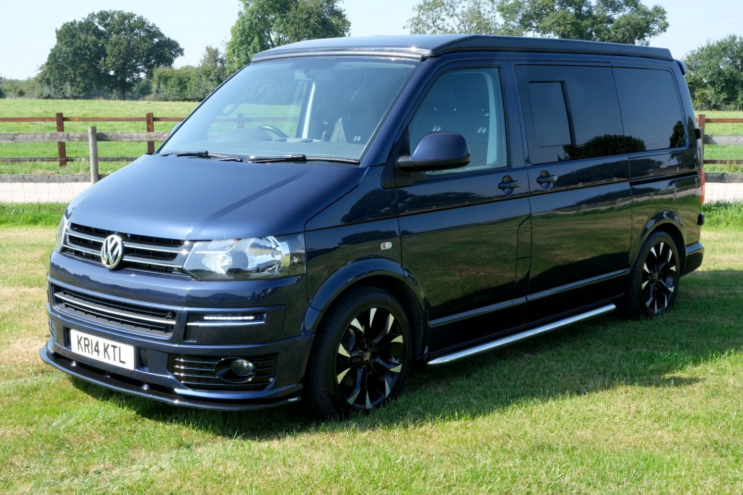 *** A SUPERB CONDITION VOLKSWAGEN TRANSPORTER HIGHLINE CAMPER VAN CONVERSION *** 2 OWNERS FROM NEW *** THIS IS A BRAND NEW CONVERSION CARRIED OUT BUY US WITH A MASSIVE SPEC WHICH INCLUDES - GENUINE SPORTLINE BUMPER + FRONT LIP & REAR SPOILER -HIGH PERFORMANCE LED HEADLIGHTS - LED DAY RUNNING LIGHTS- - BRAND NEW WOLFRACE 18 INCH ALLOYS & TYRES - H&R SPRINGS 40MM DROP FRONT & REAR - MULTIMEDIA SYSTEM INCLUDING BLUETOOTH PHONE CONNECTION - BLUE TOOTH PHONE AND MUSIC STREAMING - SATELLITE NAVIGATION - FRONT AND REAR PARKING SENSORS - FACTORY AIR CON - CRUISE CONTROL - MULTI FUNCTION DASH - LEATHER STEERING WHEEL *** TOP QUALITY INTERIOR FINISH WITH NAPPA LEATHER ROCK AND ROLL BED M1 TESTED - PASSENGER SEAT M1 TESTED SWIVEL BASE TO FACE REAR - VANSHADES BLACKOUT THERMAL BLIND SYSTEM THROUGHOUT- R LINE LEATHER RE-TRIMMED SEATS - DOMESTIC Waeco CRX550 FRIDGE / FREEZER - DOMESTIC Smev 9222 SINK HOB - AUSTOPS TUV TESTED POP TOP ROOF WITH BED & DRIVER AND PASSENGER SIDE REAR OPENING GLASS *** THE VAN HAS ALSO BEEN FULLY INSULATED INCLUDING ALL DOORS - SIDE PANELS AND DEAD MAT ARCHES *** EXCELLENT SERVICE HISTORY JUST BEEN SERVICED INCLUDING FRONT SUSPENSION PLUS BRAKES CAMBELT AND WATER PUMP CHANGE - 12v Power, ABS, Air Con, Air Conditioning, Alloy Wheels, Battery Charger, Blinds, Bluetooth, Central Locking, Cruise Control, Electric Mirrors, End Bedroom, Fresh/Waste Water Tank, Fridge/Freezer, Gas Hob, Leather Upholstery, Leisure Battery, Mains electric, Multi-Function Trip Computer, Power Steering, Reversing Sensors, Sat Nav, Satellite Navigation, Spare wheel, Swivel Passenger Seat