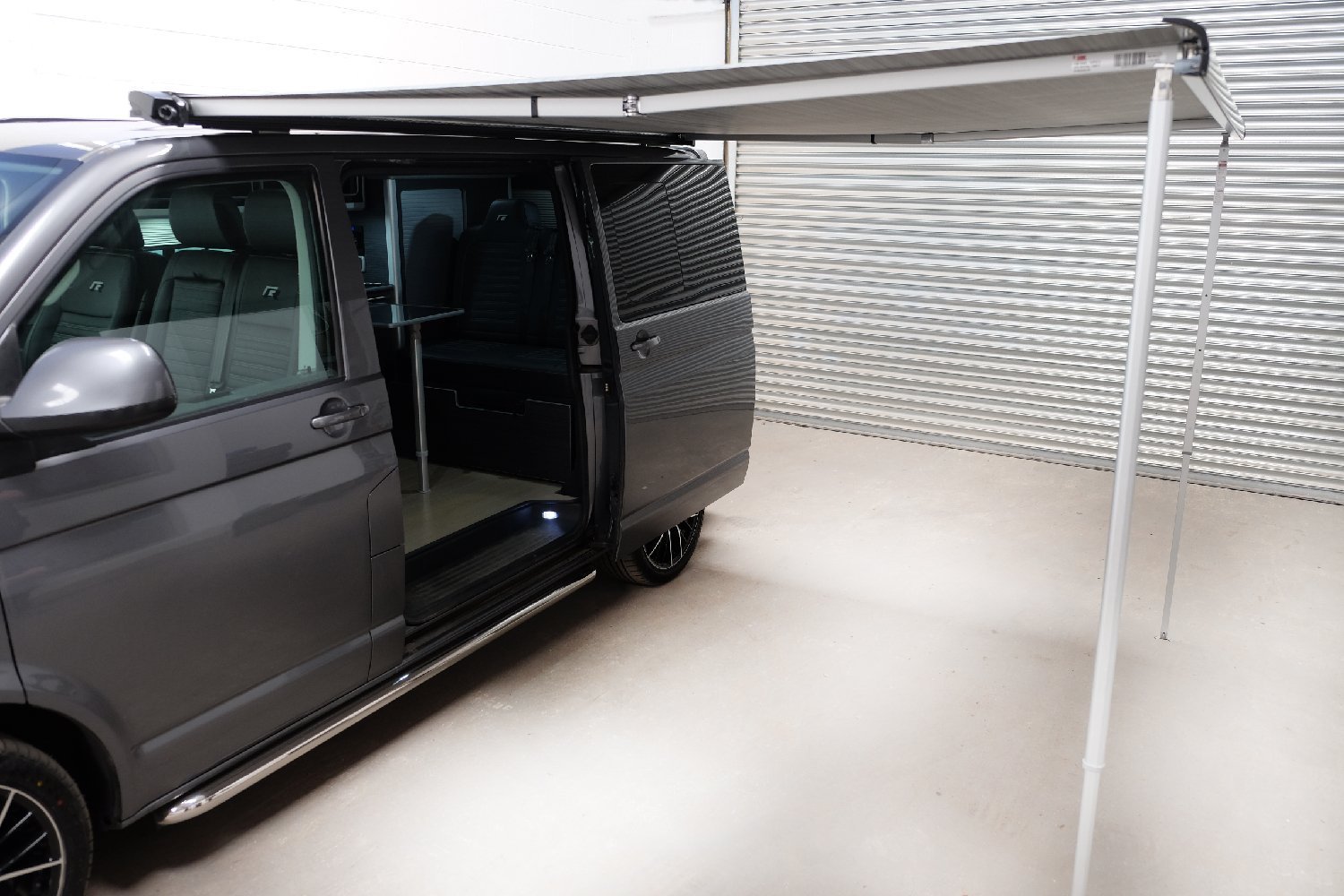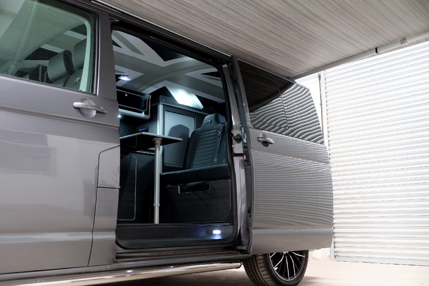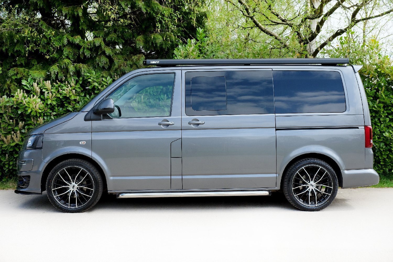 *** A SUPERB CONDITION VOLKSWAGON TRANSPORTER 140 BHP 6 SPEED CAMPER VAN CONVERSION *** DEMO + 1 OWNER FROM NEW FULL VW SERVICE HISTORY INCLUDING CAMBELT CHANGE *** THIS IS A BRAND NEW CONVERSION WITH A MASSIVE SPEC WHICH INCLUDES - GENUINE SPORTLINE BUMPER + FRONT LIP & REAR SPOILER - LED & XENON HEADLIGHTS - BRAND NEW 19 INCH ALLOYS & TYRES - H&R SPRINGS 40MM DROP FRONT & REAR - SAT NAV AND MULTIMEDIA SYSTEM INCLUDING DAB RADIO BLUETOOTH PHONE CONNECTION & USB INTERFACE - REVERSE CAMERA - REAR PARKING SENSORS - FACTORY AIR CON - CRUISE CONTROL - MULTI FUNCTION DASH - LEATHER STEERING WHEEL *** TOP QUALITY INTERIOR FINISH WITH ROCK AND ROLL BED M1 TESTED - PASSENGER SEAT M1 TESTED SWIVEL BASE TO FACE REAR - ORIGINAL FACTORY TINTED WINDOWS ALL ROUND WITH VANSHADES BLACKOUT THERMAL BLIND SYSTEM THROUGHOUT- R LINE LEATHER RE-TRIMMED SEATS - DOMESTIC Waeco CRX550 FRIDGE - DOMESTIC Smev 9222 SINK HOB - DIGITAL EC160 MAINS AND 12 V CONTROL UNIT - OAK VENEER FLOOR - FIRE EXTINGUISHER - FLAMMA ROLL OUT AWNING WITH TIE DOWN KIT *** THE VAN HAS ALSO BEEN FULLY INSULATED INCLUDING ALL DOORS - ROOF - TAILGATE & SIDE PANELS *** All our vans a have a meticulous Pre Delivery Inspection prior to handover, Plus a MINIMUM 3 MONTHS WARRANTY SUPPLIED BY WARRANTYWISE the UK 'S BEST USED CAR WARRANTY COMPANY *** LOW RATE FINANCE OPTIONS AVAILABLE *** THE CAR HAS 2 KEYS , TAILGATE , BOOK PACK, & WILL COME WITH 1 YEARS MOT **, 3 months warranty, Next MOT due 13/10/2020, Full franchise service history, Excellent bodywork, Interior - Excellent Condition, 4x2, 5 seats, Grey, 1 owner, Upgrades - 12v Power, ABS, Air Conditioning, Alarm, Alloy Wheels, Awning, Battery Charger, Blinds, Bluetooth, CD / Radio, Central Locking, Colour Coded Bumpers, Cruise Control, Double Beds, Dual Fuel Hob and Grill, Electric Mirrors, Electric Windows, External 240v, Fire Extinguisher, Fixed Bed, Free Standing Table, Freezer, Fresh Water Tank, Fridge/Freezer, Gas Hob, Heated Mirrors, Leather Upholstery, Leisure Battery, Mains electric, Multi-Function Trip Computer, On board water tank, Power Steering, Pull Out Bed, Rear Seat belts, Reverse Camera, Reversing Sensors, Satellite Navigation, Side Running Lights, Sink and Drainer, Spare wheel, Swivel Passenger Seat, Tow bar and electrics, Warranty, Wind Out Awning